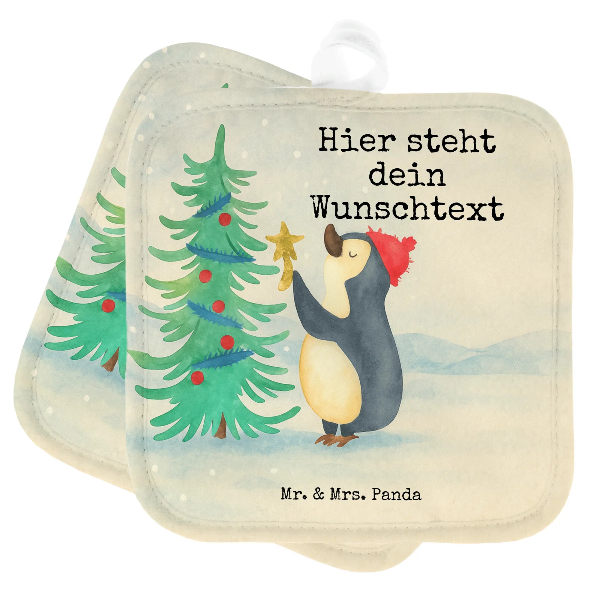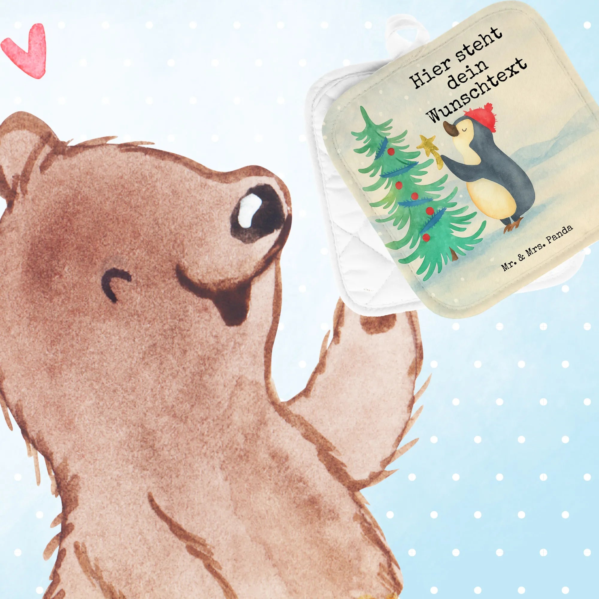 Personalisierte Topflappen Pinguin Weihnachtsbaum Design