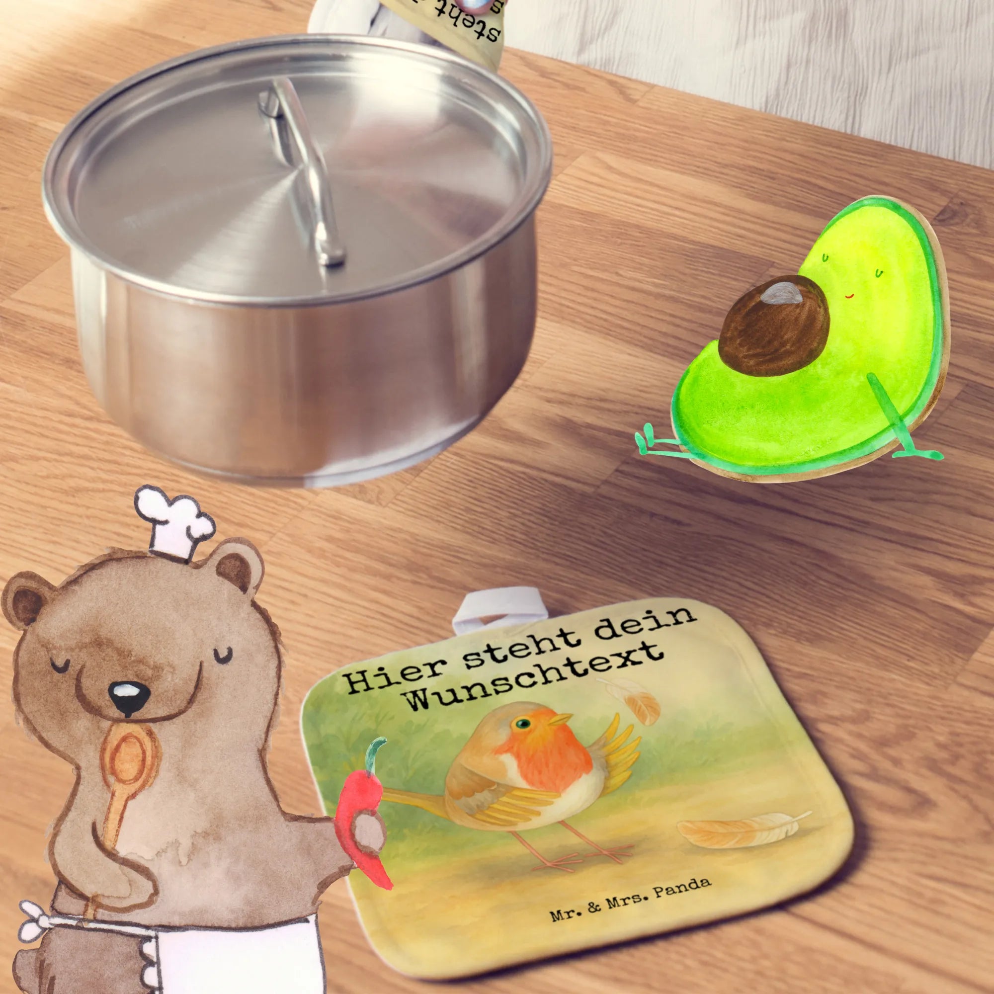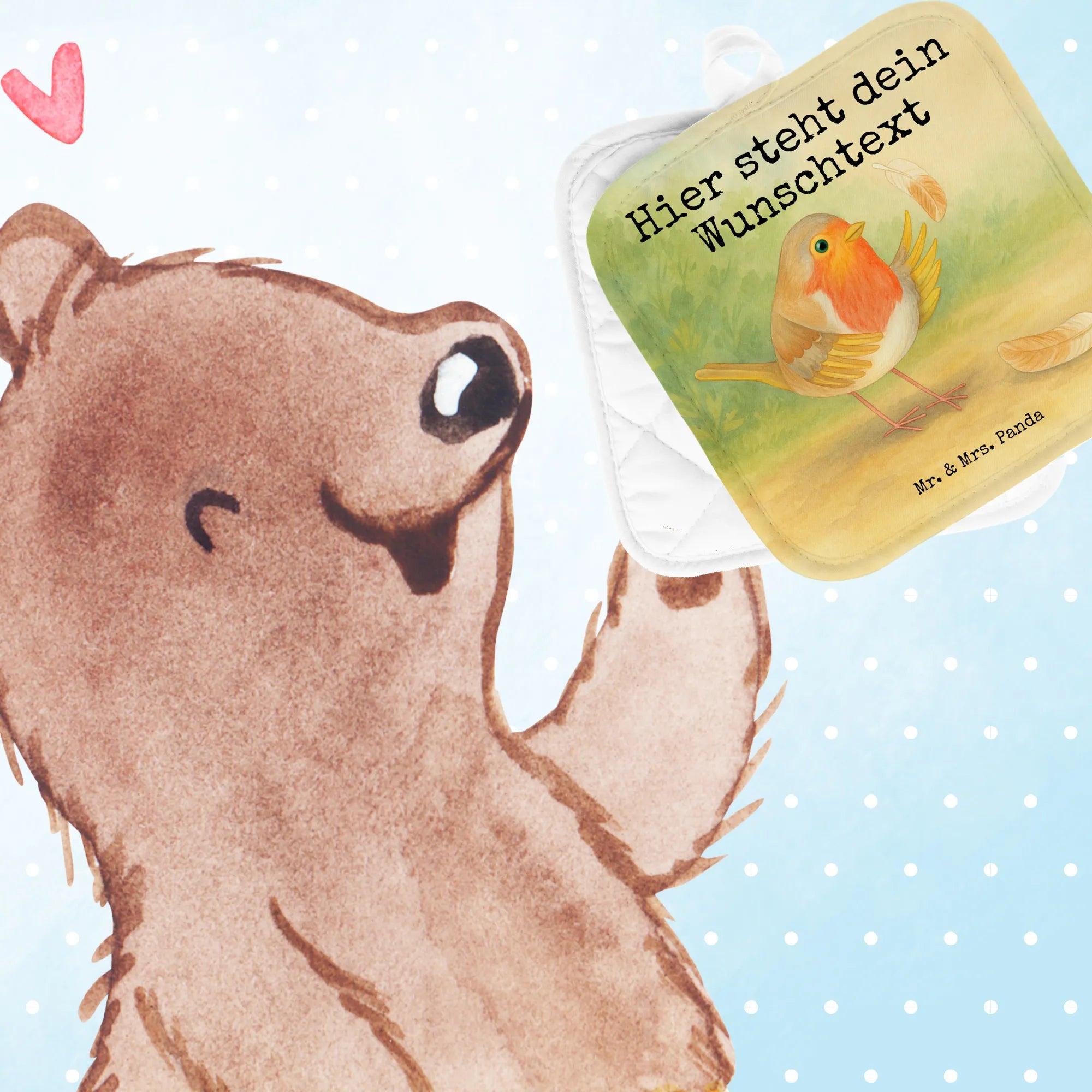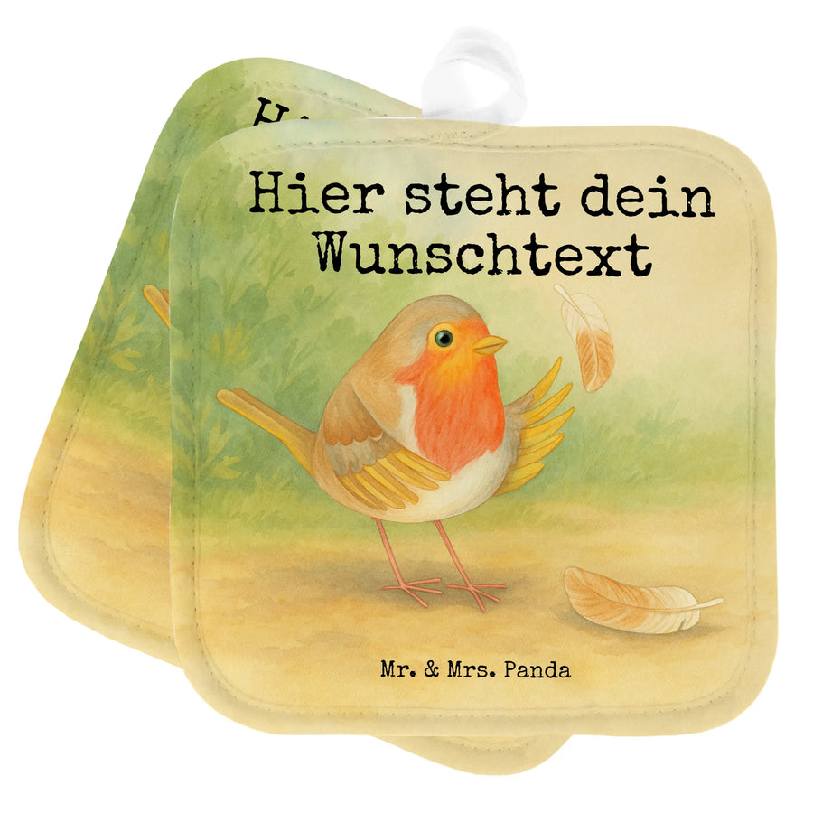 Personalisierte Topflappen Rotkehlchen Federn Design