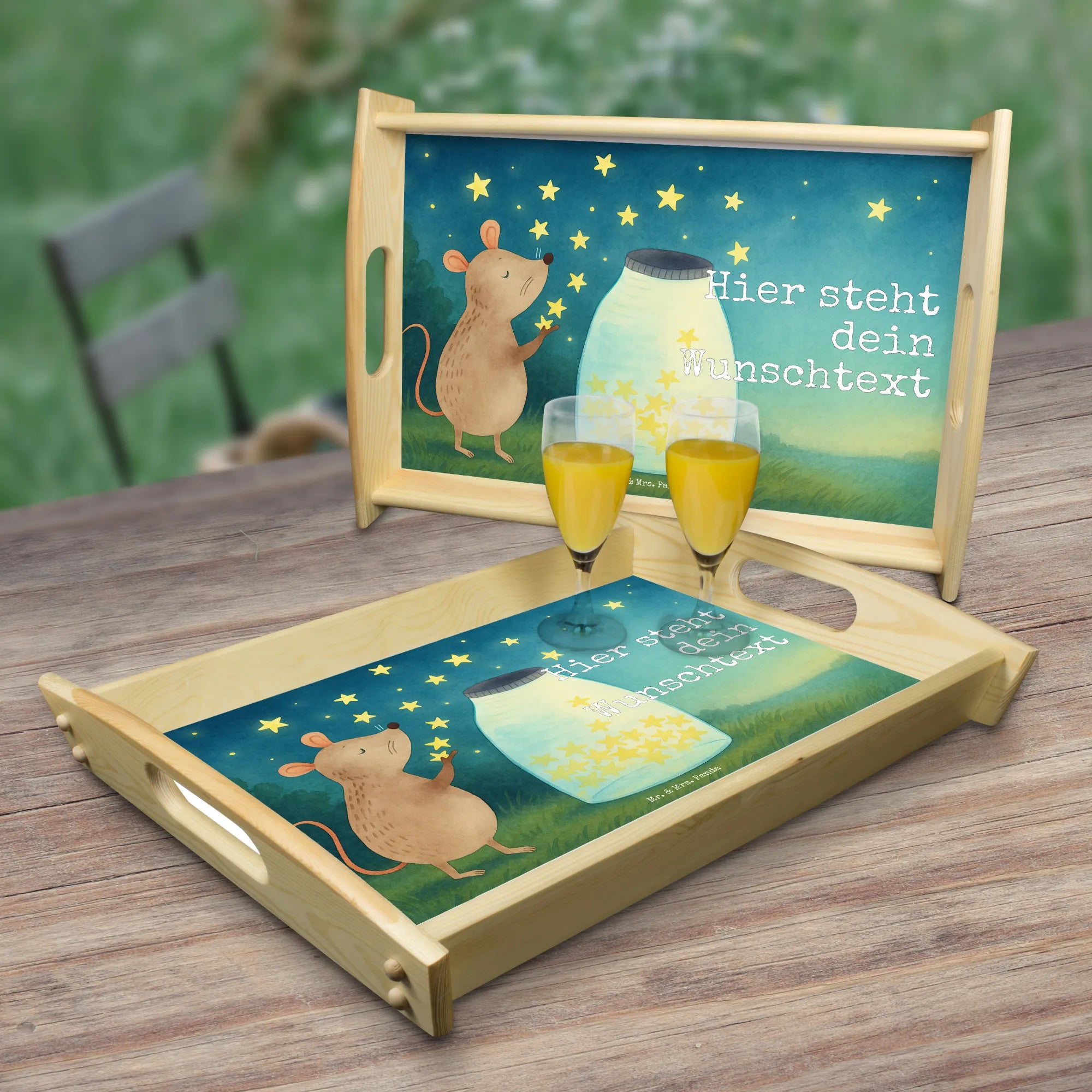 Discover the charm of our personalized serving tray by Mr. & Mrs. Panda! Crafted from beautiful, glazed real wood, this tray measures 480 mm x 365 mm x 65 mm, making it ideal for serving meals or snacks. It's adorned with lovely illustrations and quotes that you can personalize with your favorite names or messages. The clever design includes side grips for easy handling and anti-slip pads to prevent sliding. The resilient and scratch-proof surface maintains its vibrant look, and you can clean it easily with a damp cloth and mild soap—just avoid soaking! Take note that custom creations might take a bit more time to be ready. Treat yourself or your loved ones to a delightful dining experience with this exquisite tray!