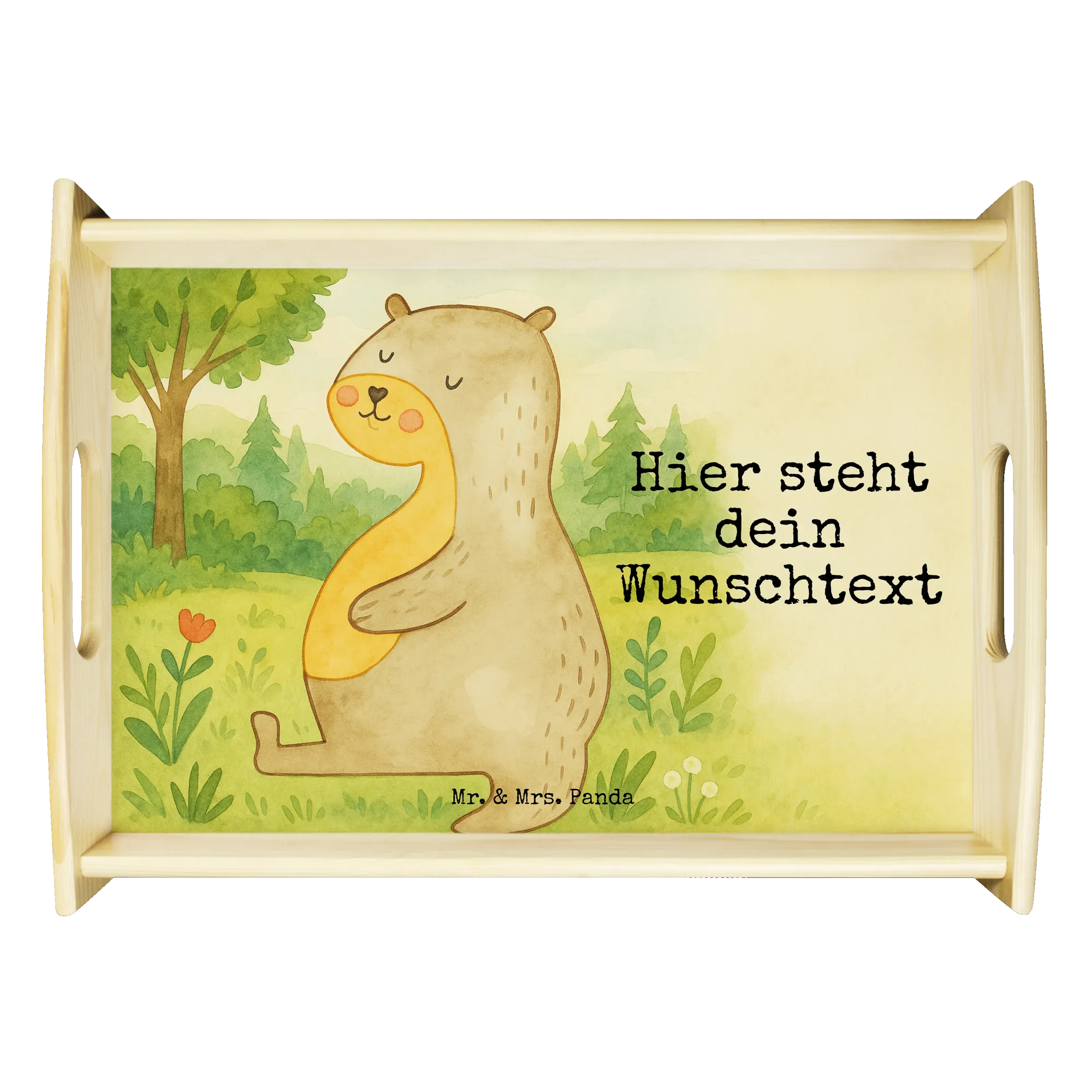 Introducing our stunning and unique personalized serving tray from Mr. & Mrs. Panda! This exquisite tray measures 480 mm x 365 mm x 65 mm, making it the perfect size for serving breakfast in bed or enjoying snacks on the sofa. Made from glazed real wood, it features beautiful designs and quotes that add a touch of charm to your home. Personalize it with your special text or name, creating a truly one-of-a-kind piece. The tray is not just pretty, but also practical, with side handles for easy carrying and anti-slip pads on the bottom to keep it sturdy. The scratch-resistant and durable surface ensures it stays looking great for years to come. Easy to clean with a damp cloth and a bit of dish soap—just avoid soaking it! Due to the careful crafting process, please allow extra time for production. Make every moment special with this lovely tray, which also makes a thoughtful gift for friends or family!