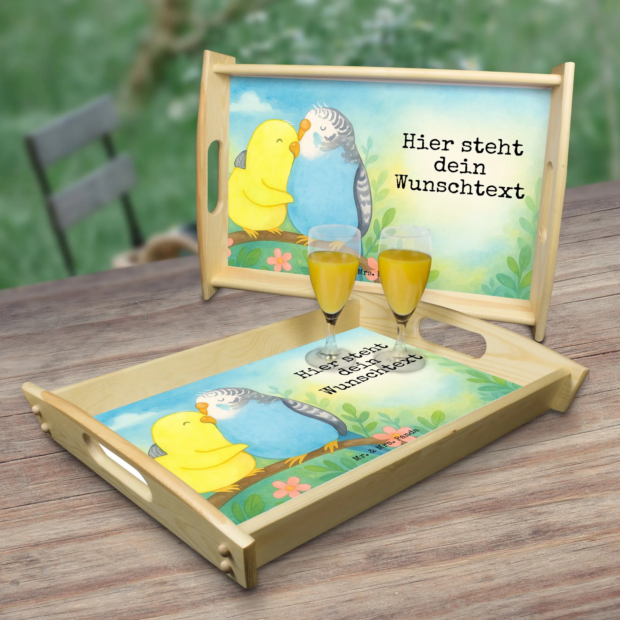 Personalised serving tray Parakeets in love Design