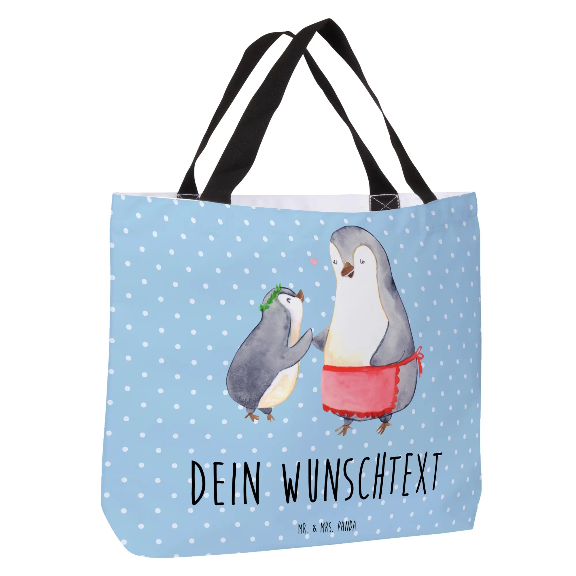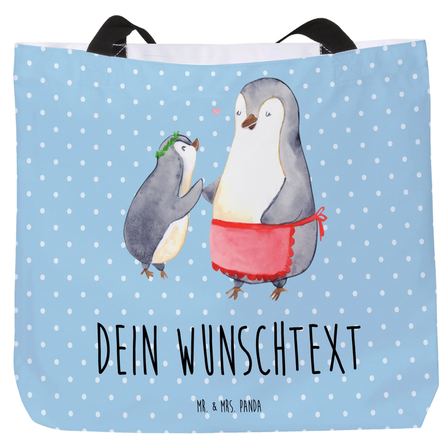 Personalised shopper Penguin with child - Blue Pastel