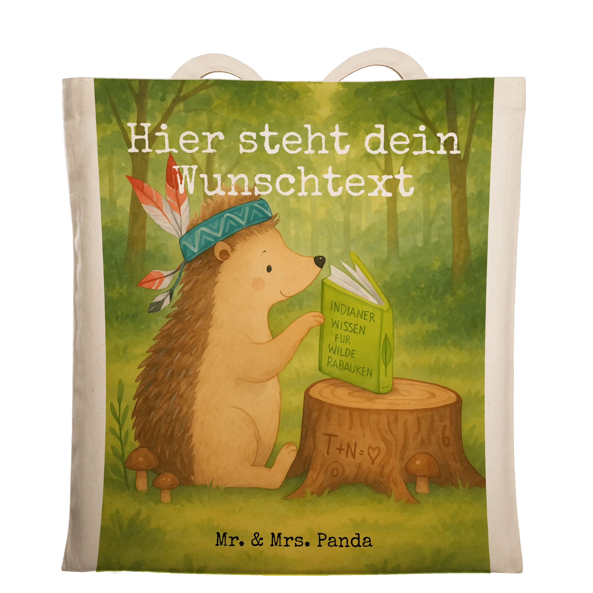 Personalisierte Tragetasche Igel Federschmuck Design – Mr. & Mrs. Panda