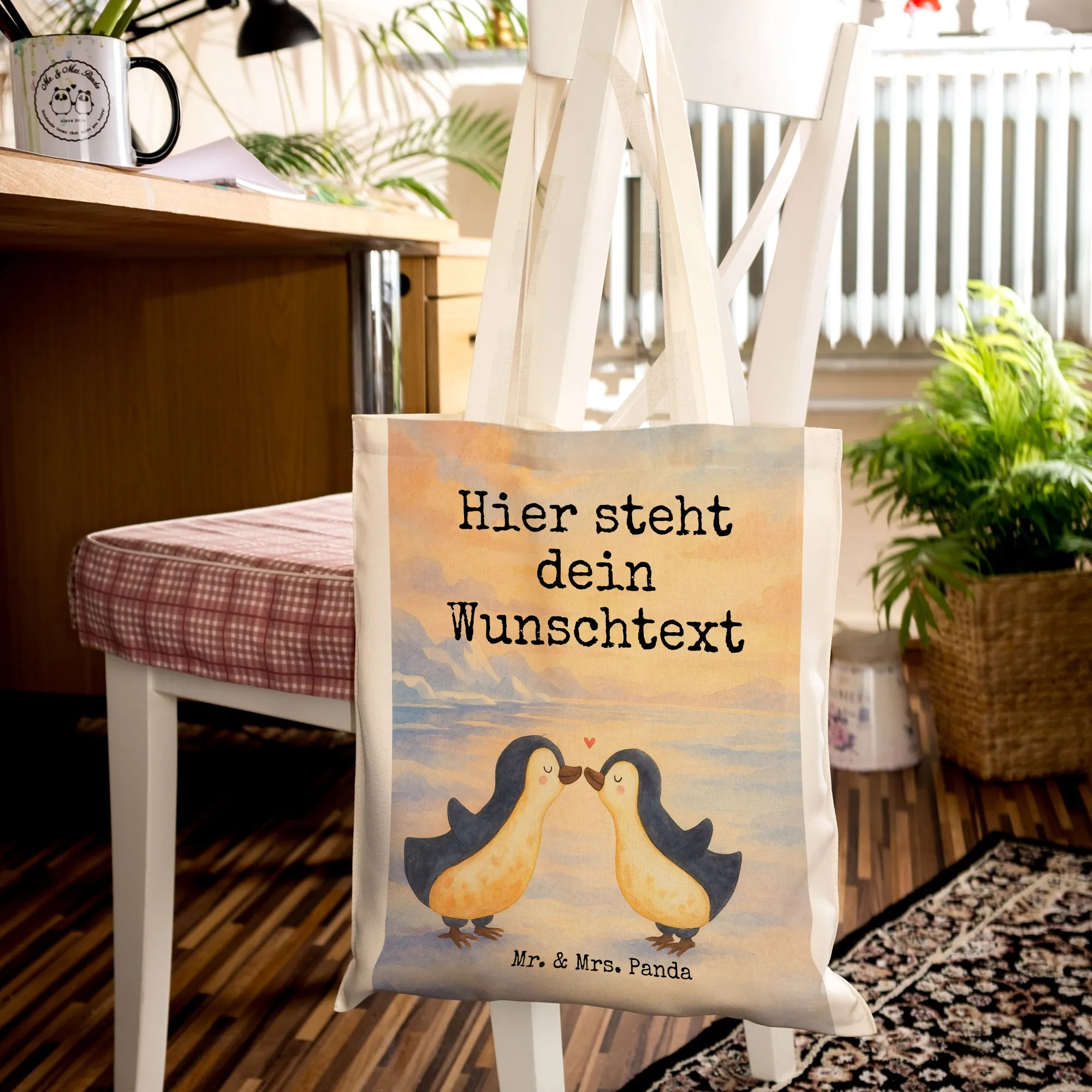 Personalisierte Tragetasche Pinguin Liebe Design – Mr. & Mrs. Panda