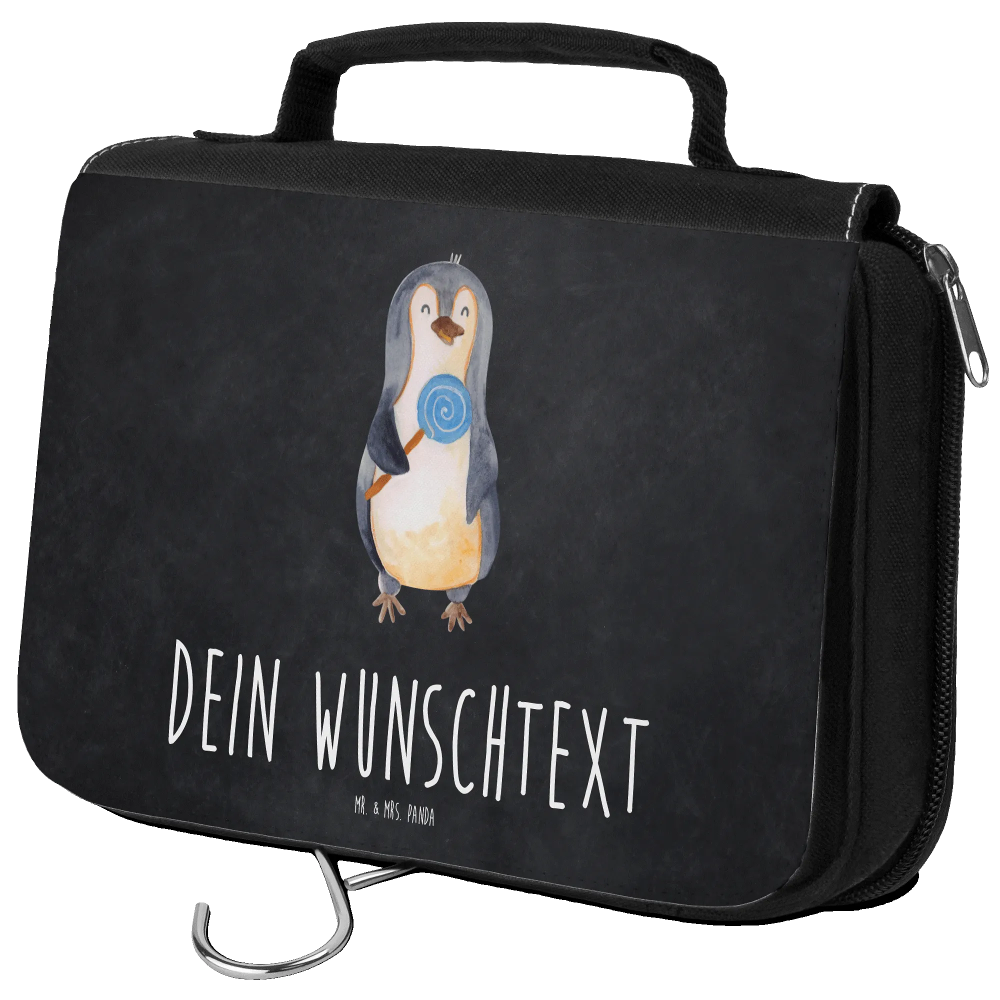 Personalised wash bag Penguin lollipop - Chalkboard