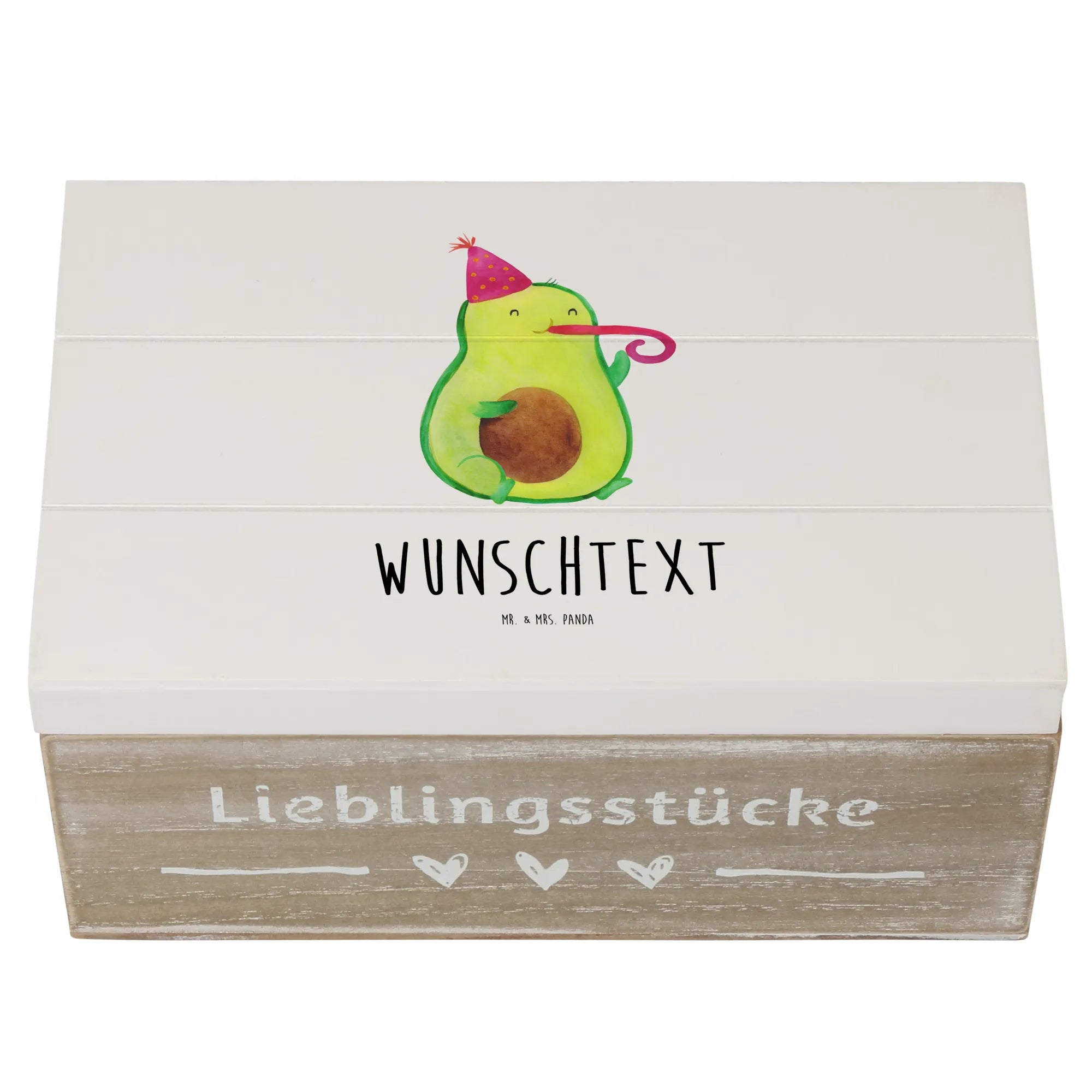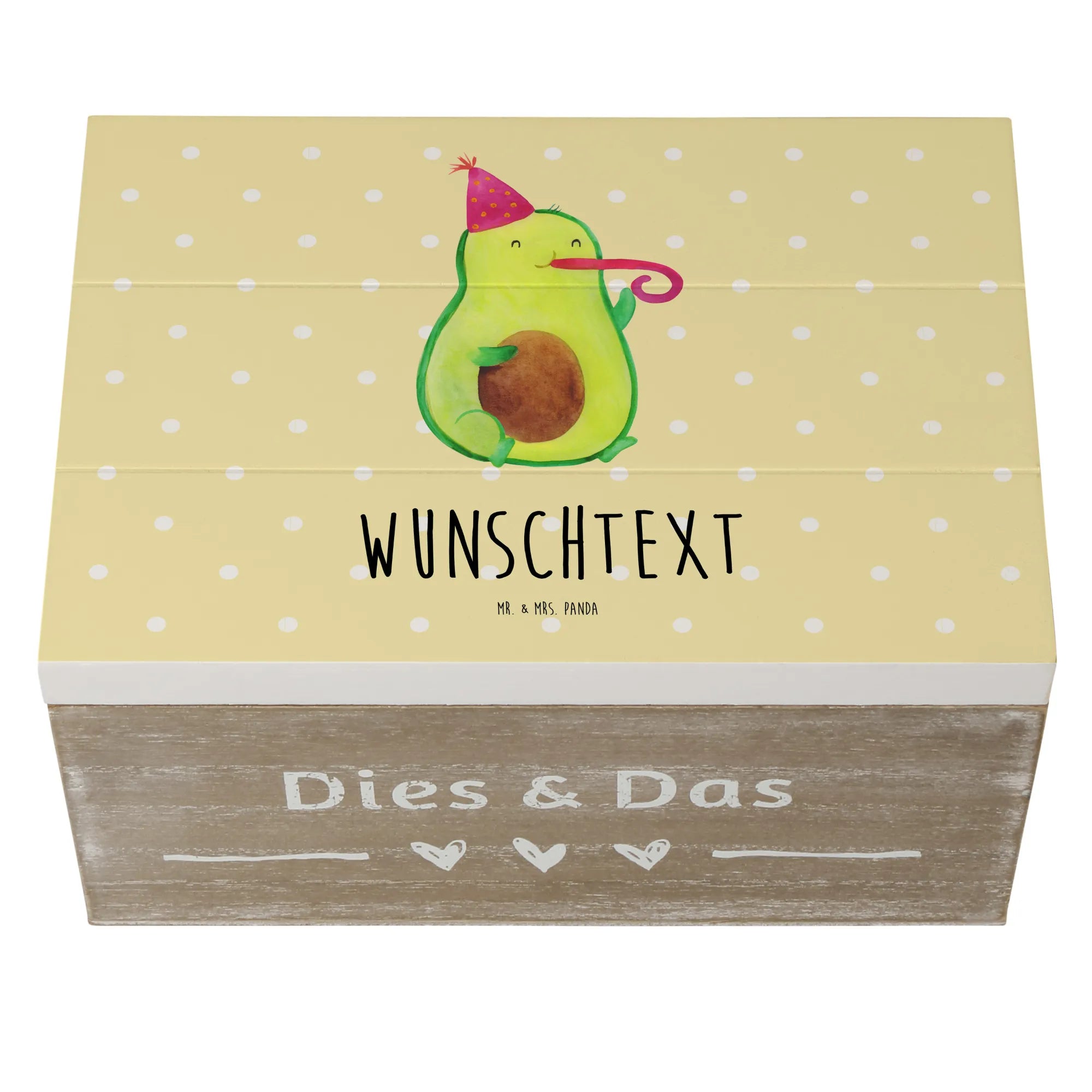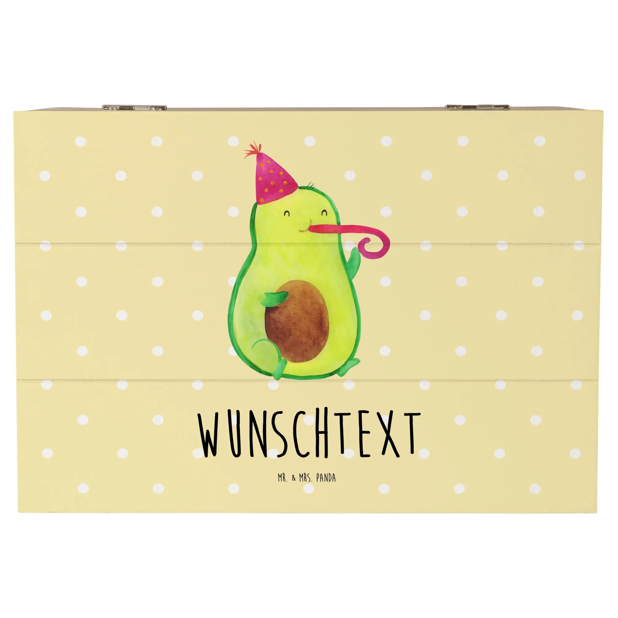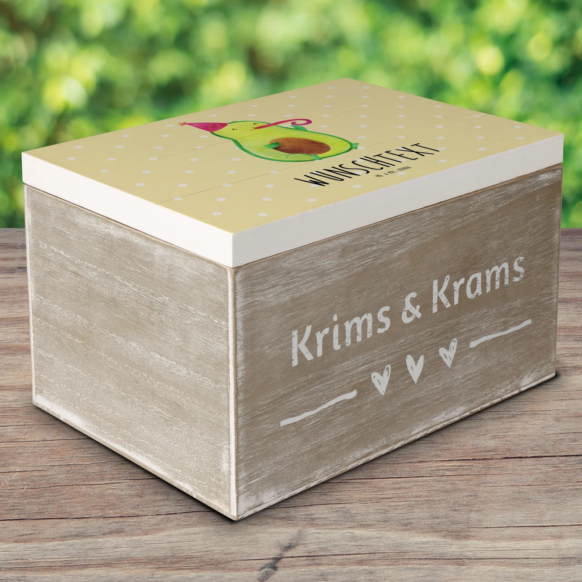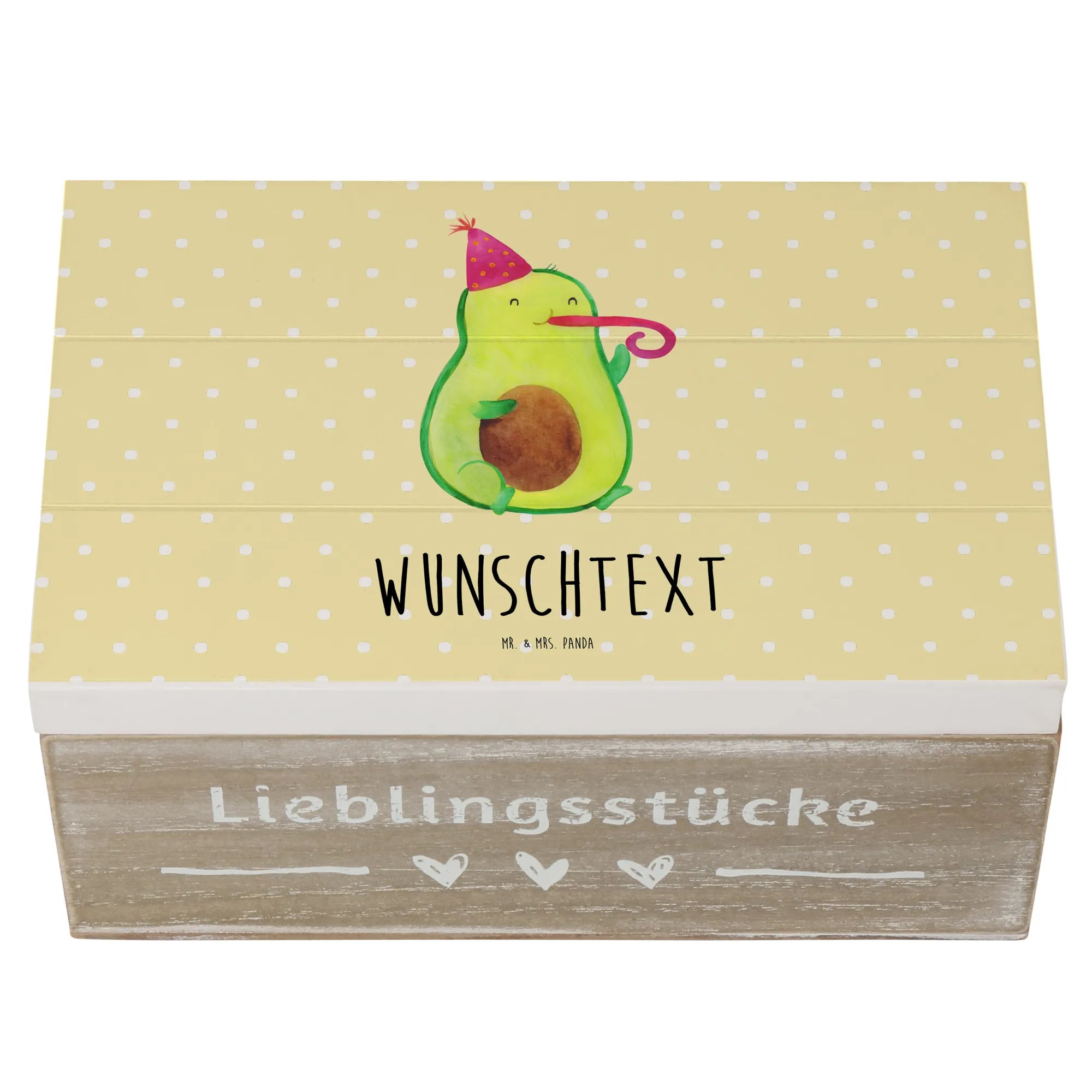 Personalised wooden chest avocado Celebration - 22 x 15 cm - Yellow Pastel