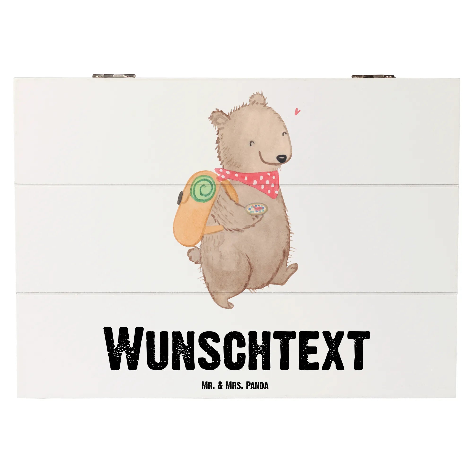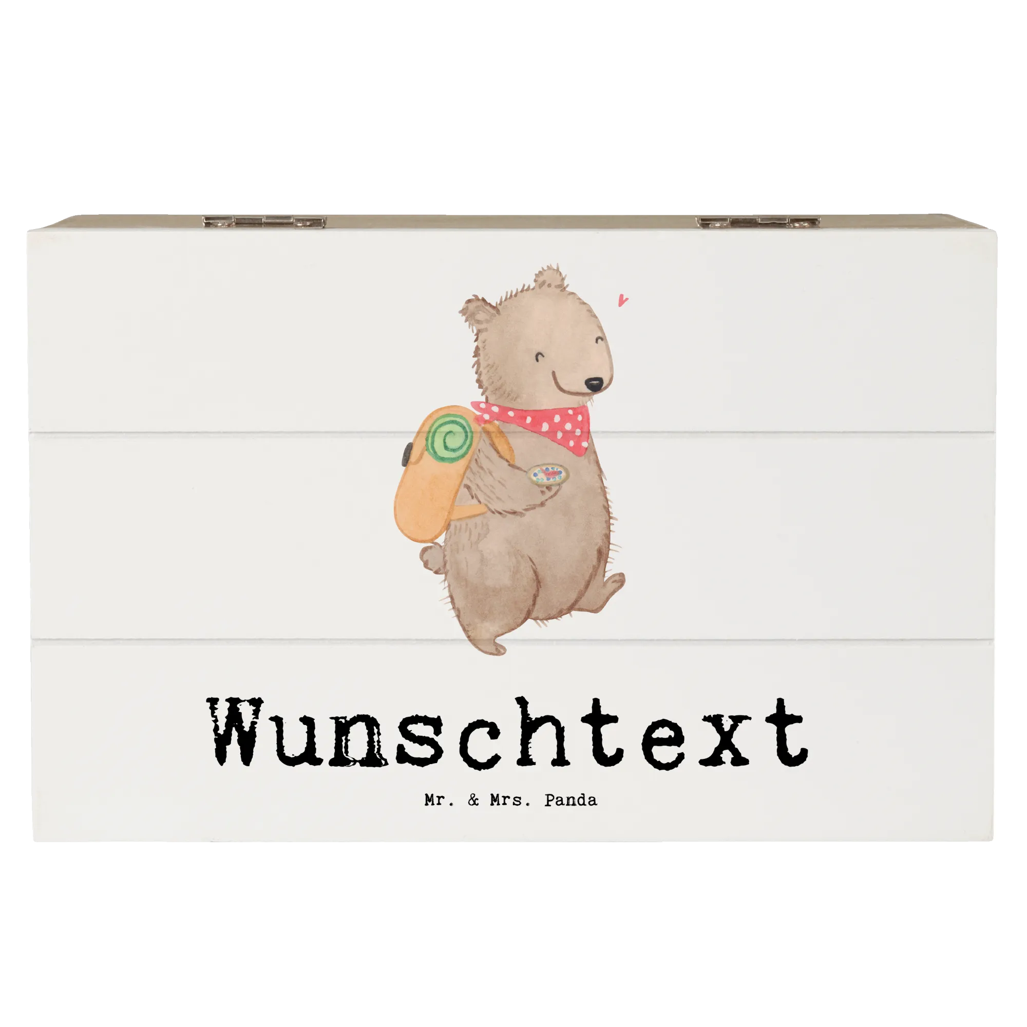 Personalised wooden chest bear Hike - 22 x 15 cm - White