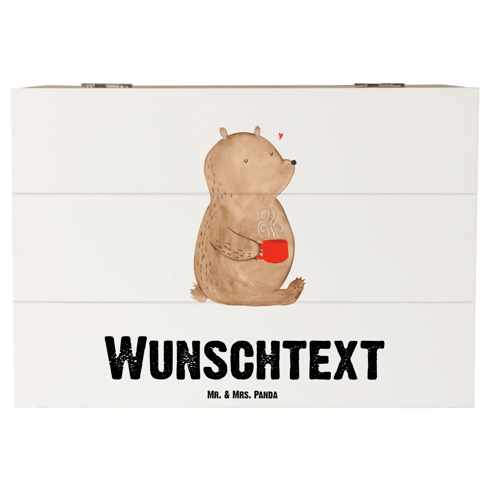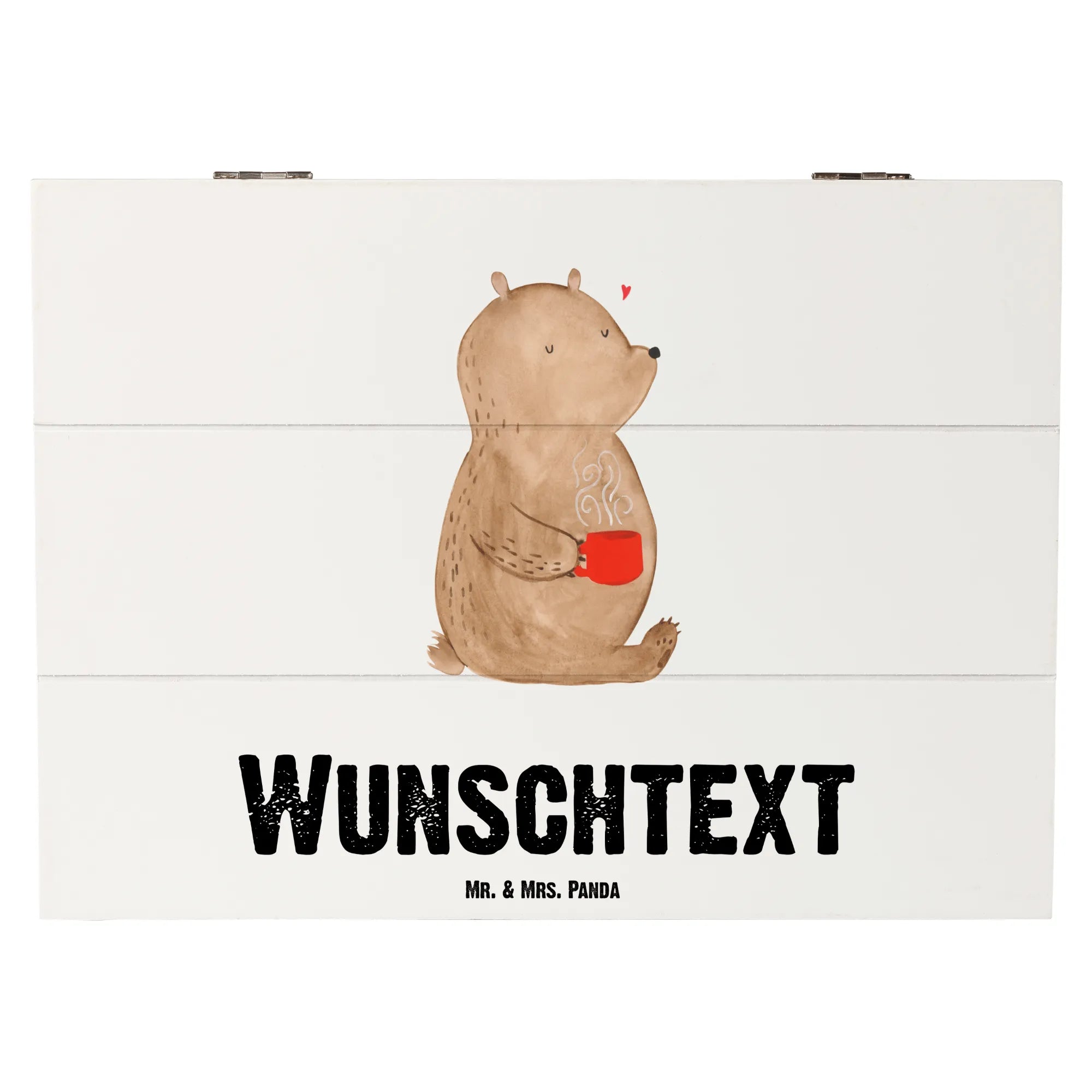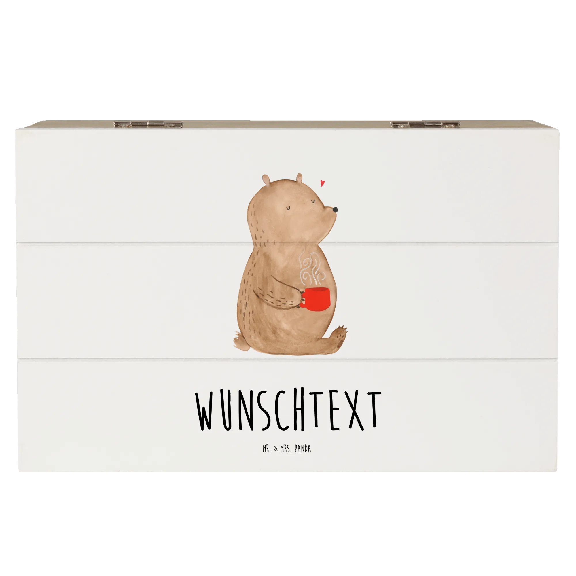 Personalised wooden chest bear morning coffee - 22 x 15 cm - White