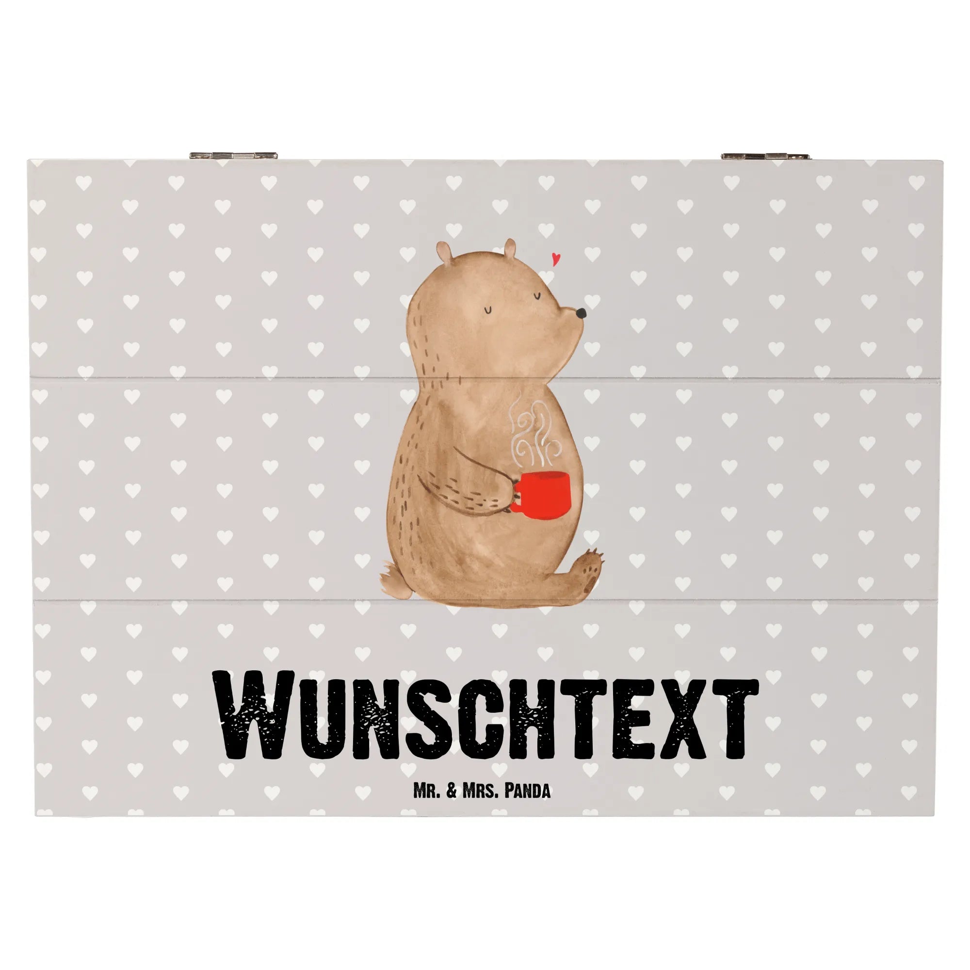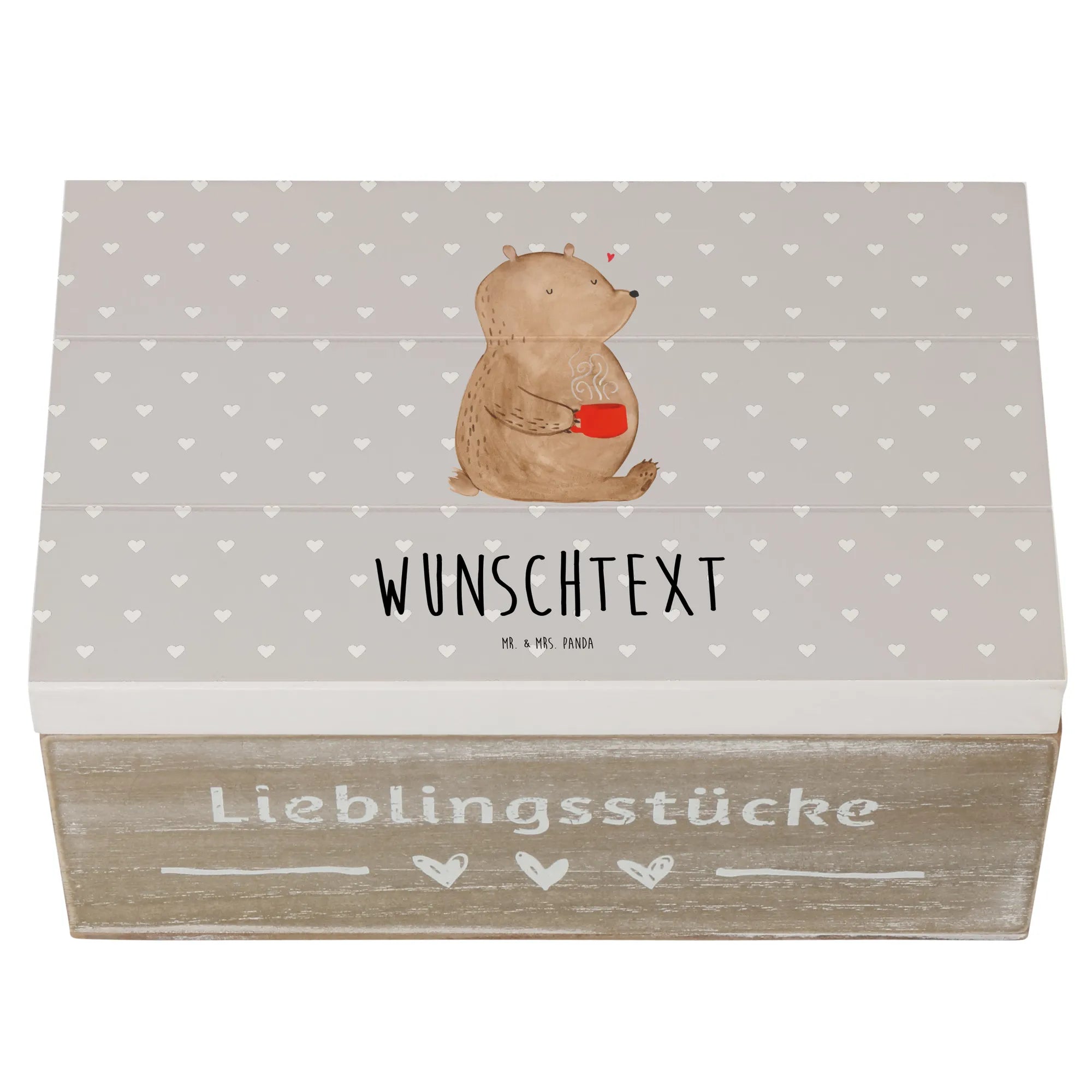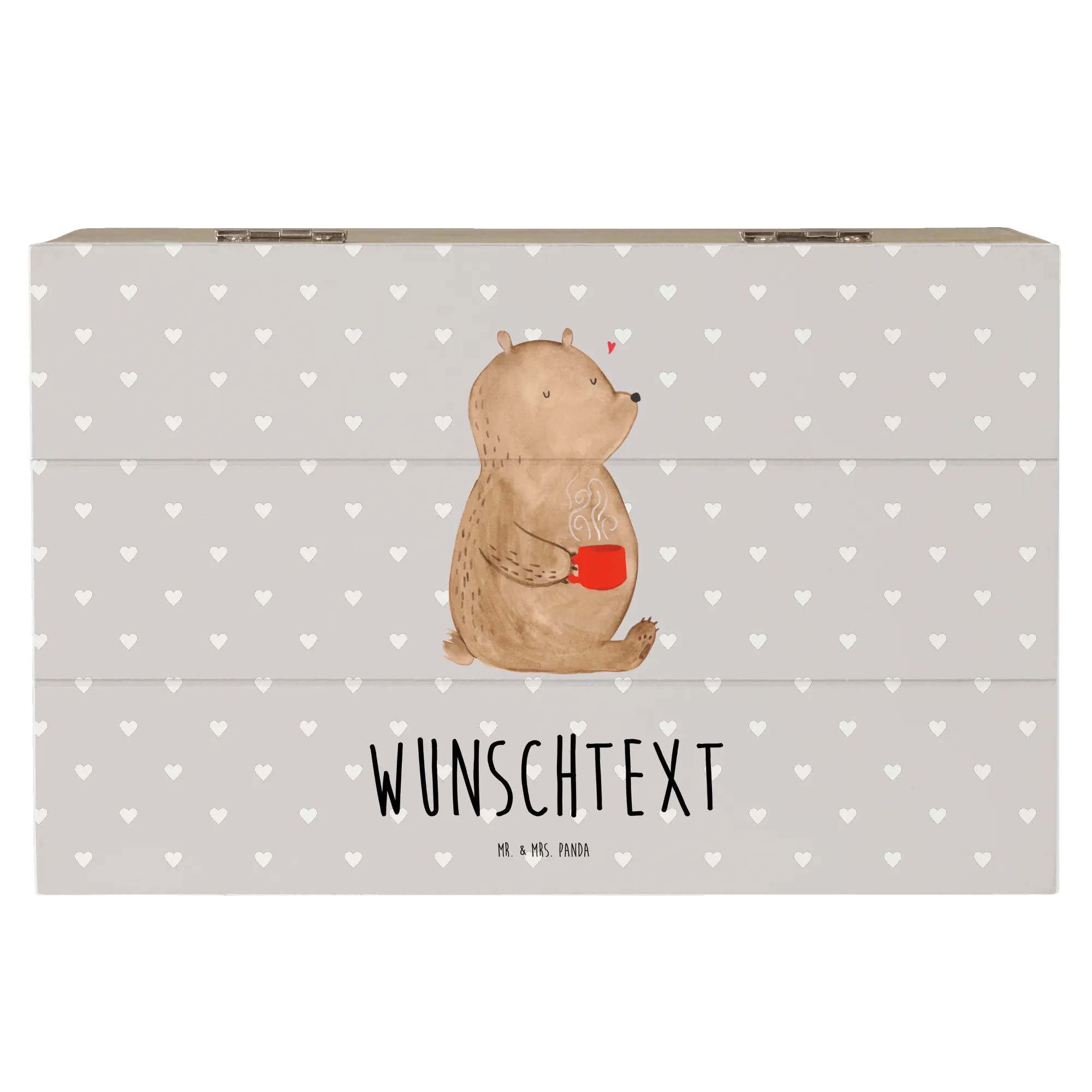 Personalised wooden chest bear morning coffee - 22 x 15 cm - White