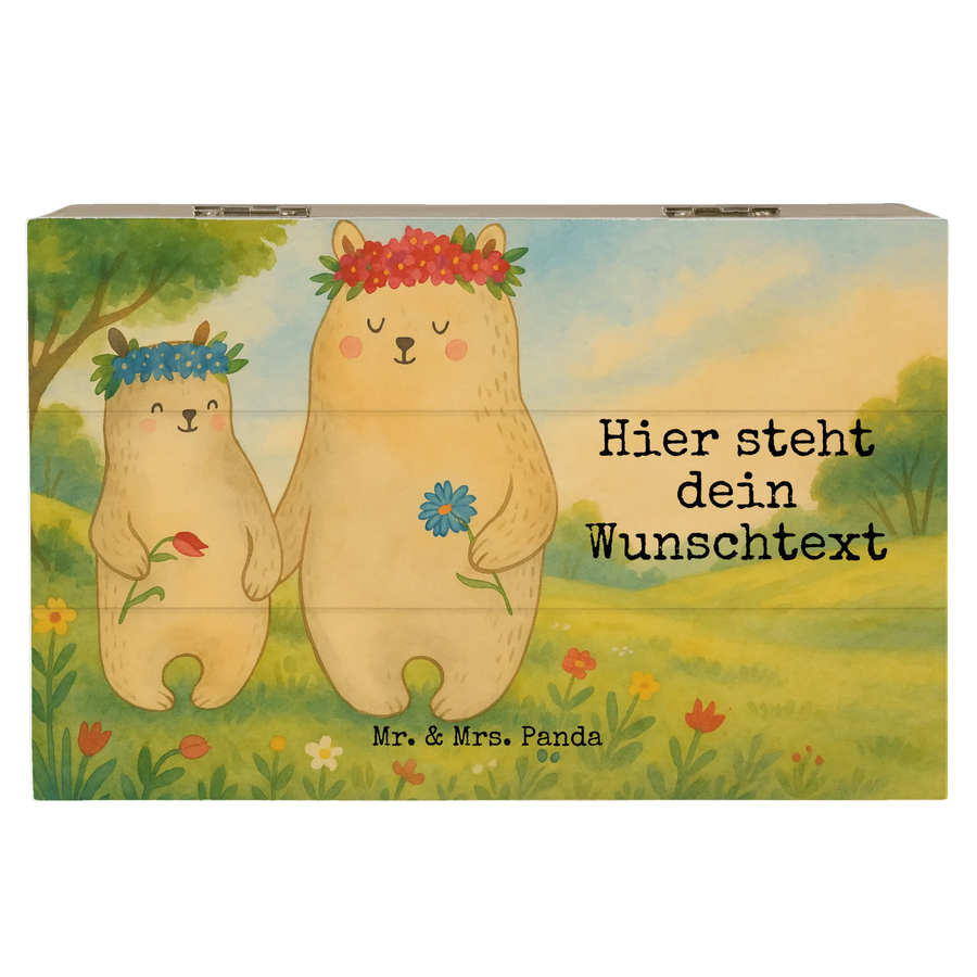 Personalised wooden chest Bears with flower crown Design - 19 x 12 cm