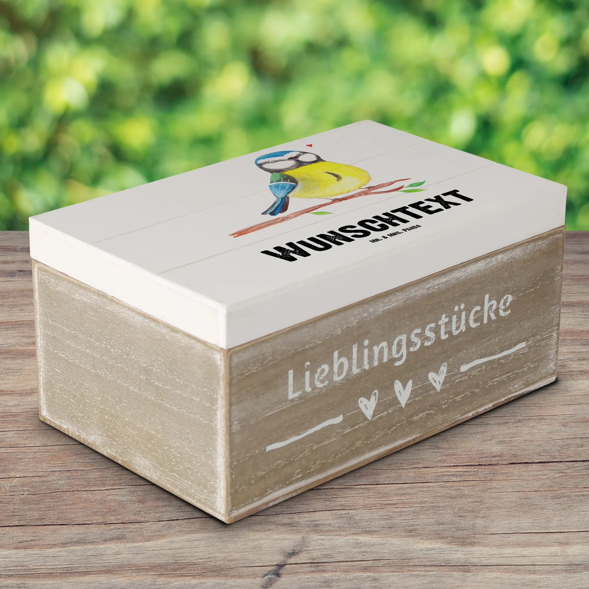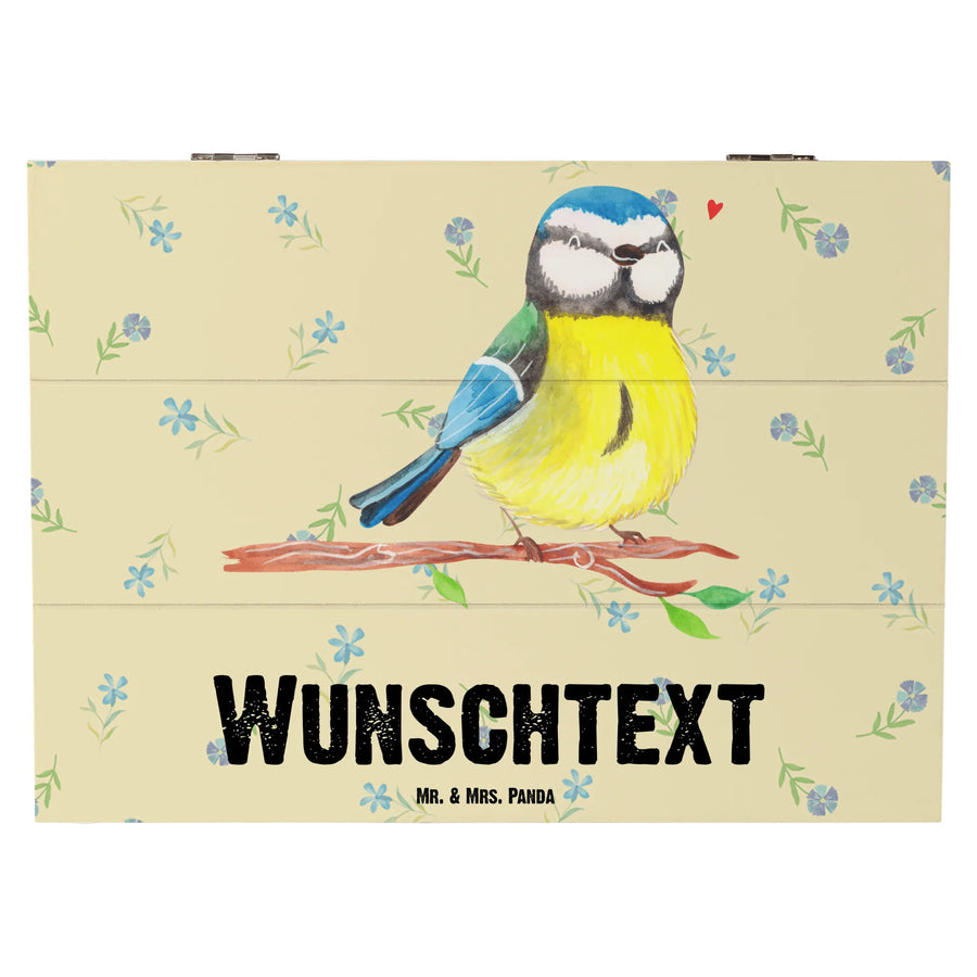 Personalised wooden chest Bird blue tit - 25 x 18 cm - Blumig