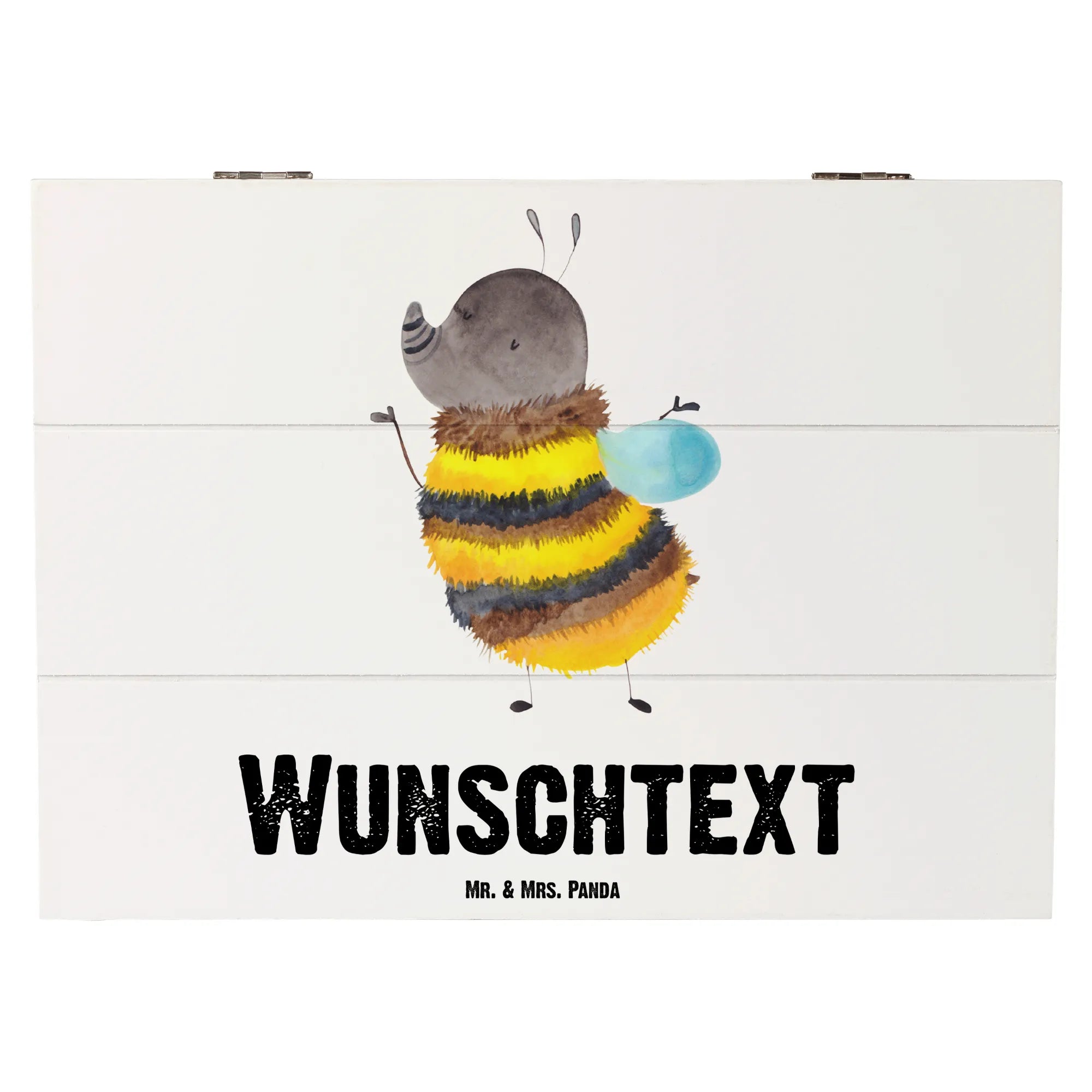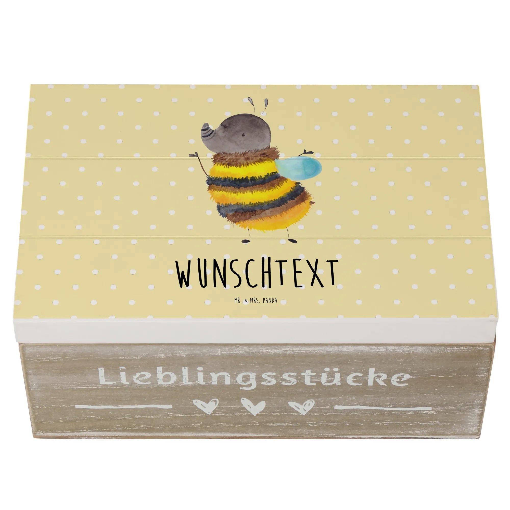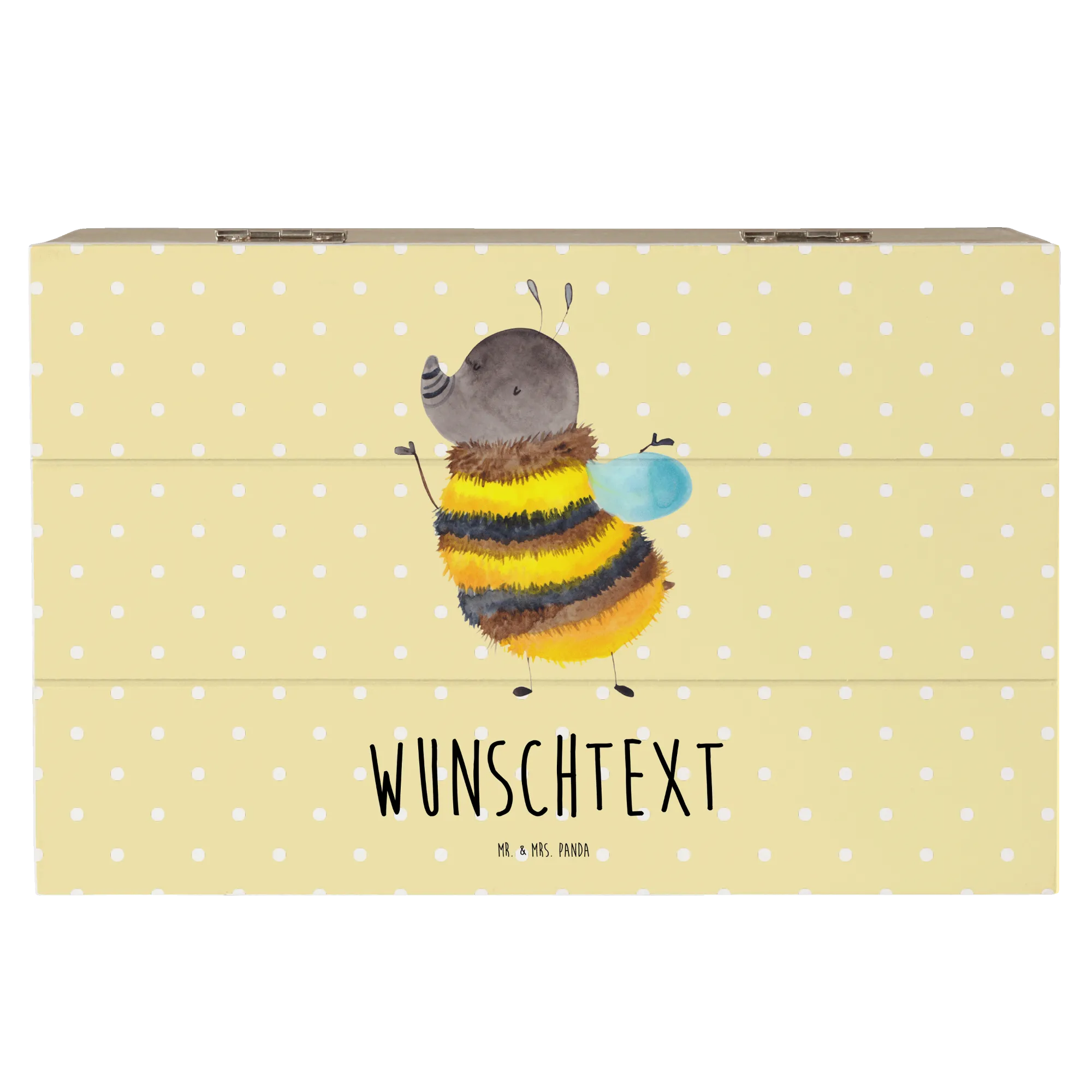 Personalised wooden chest bumblebee fluffy - 22 x 15 cm - Pastel Yellow