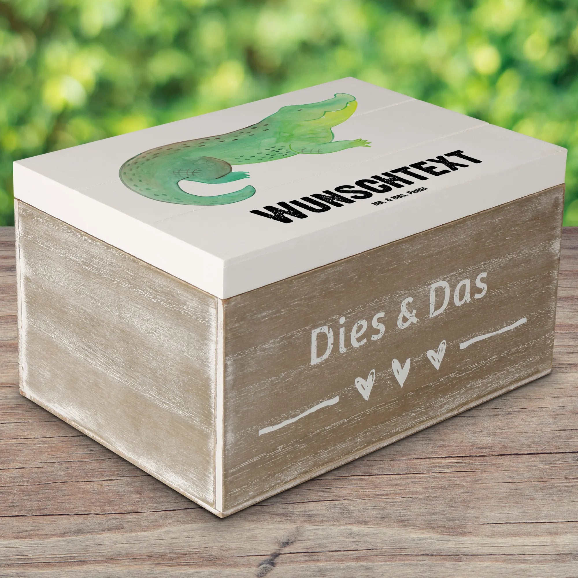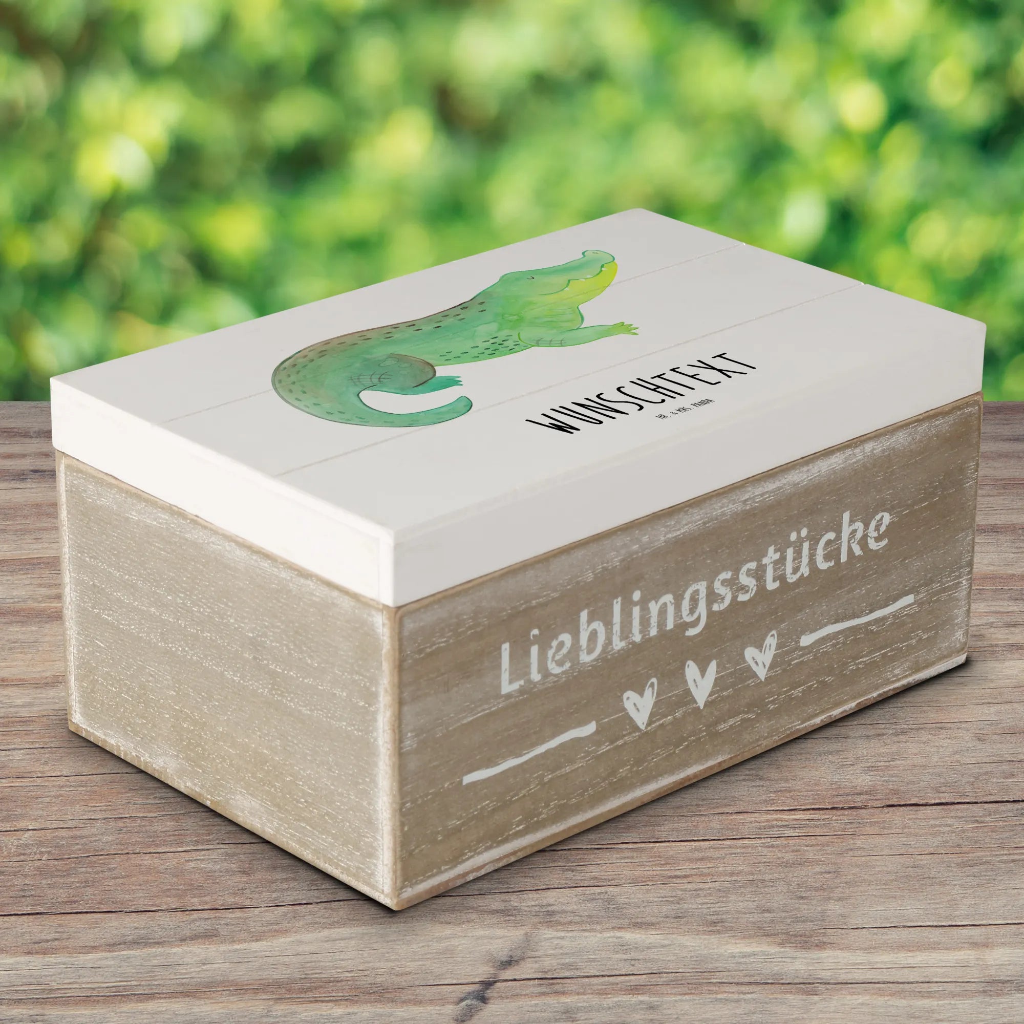 Personalised wooden chest Crocodile - 22 x 15 cm - White