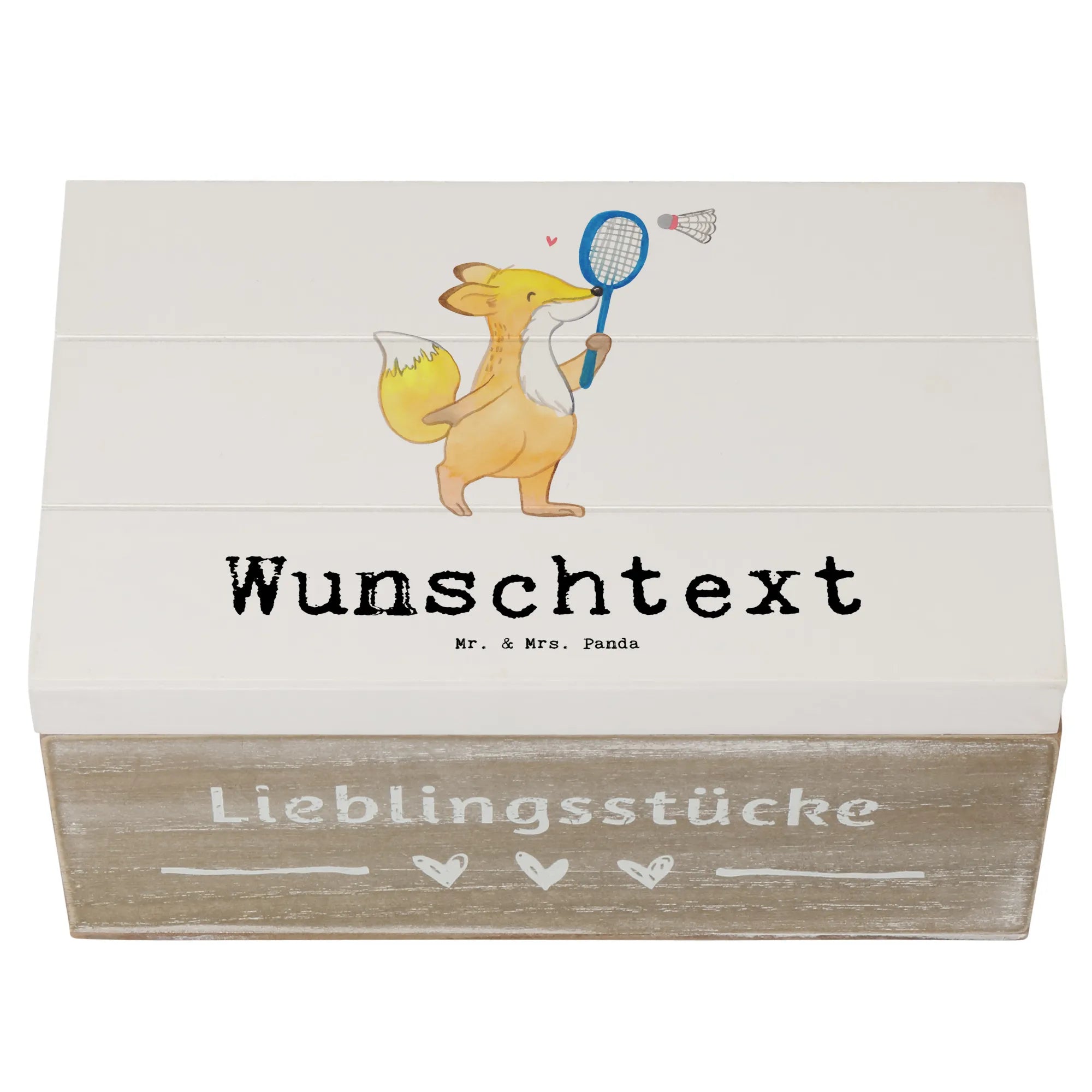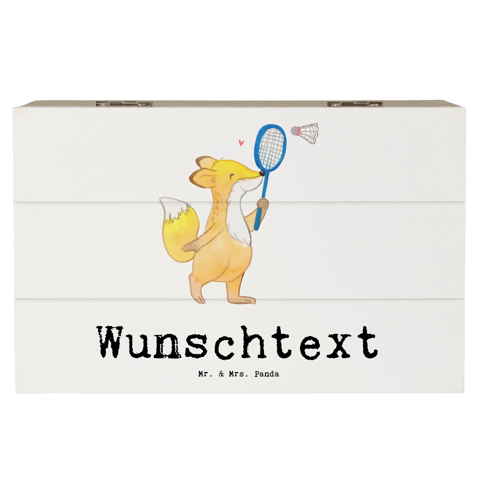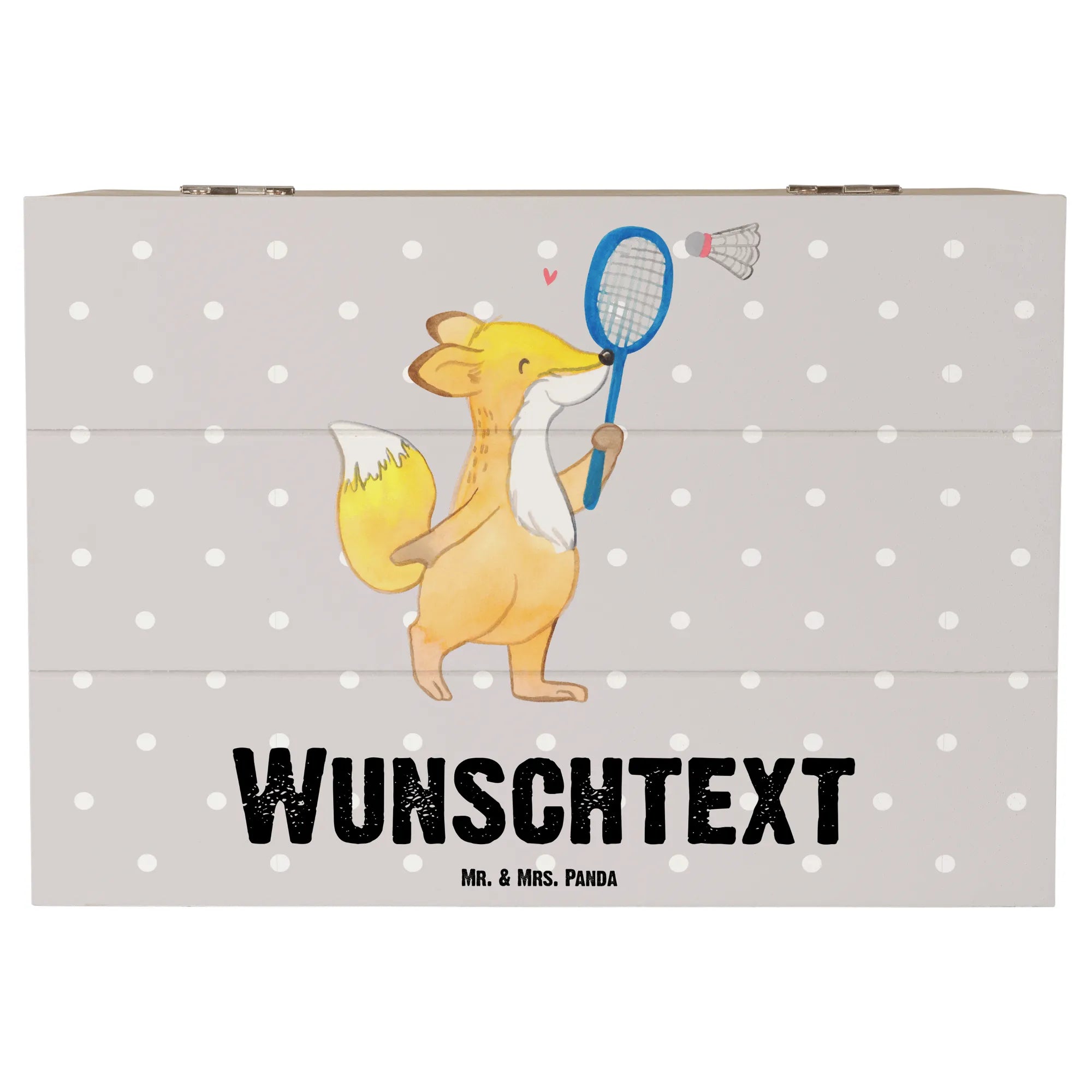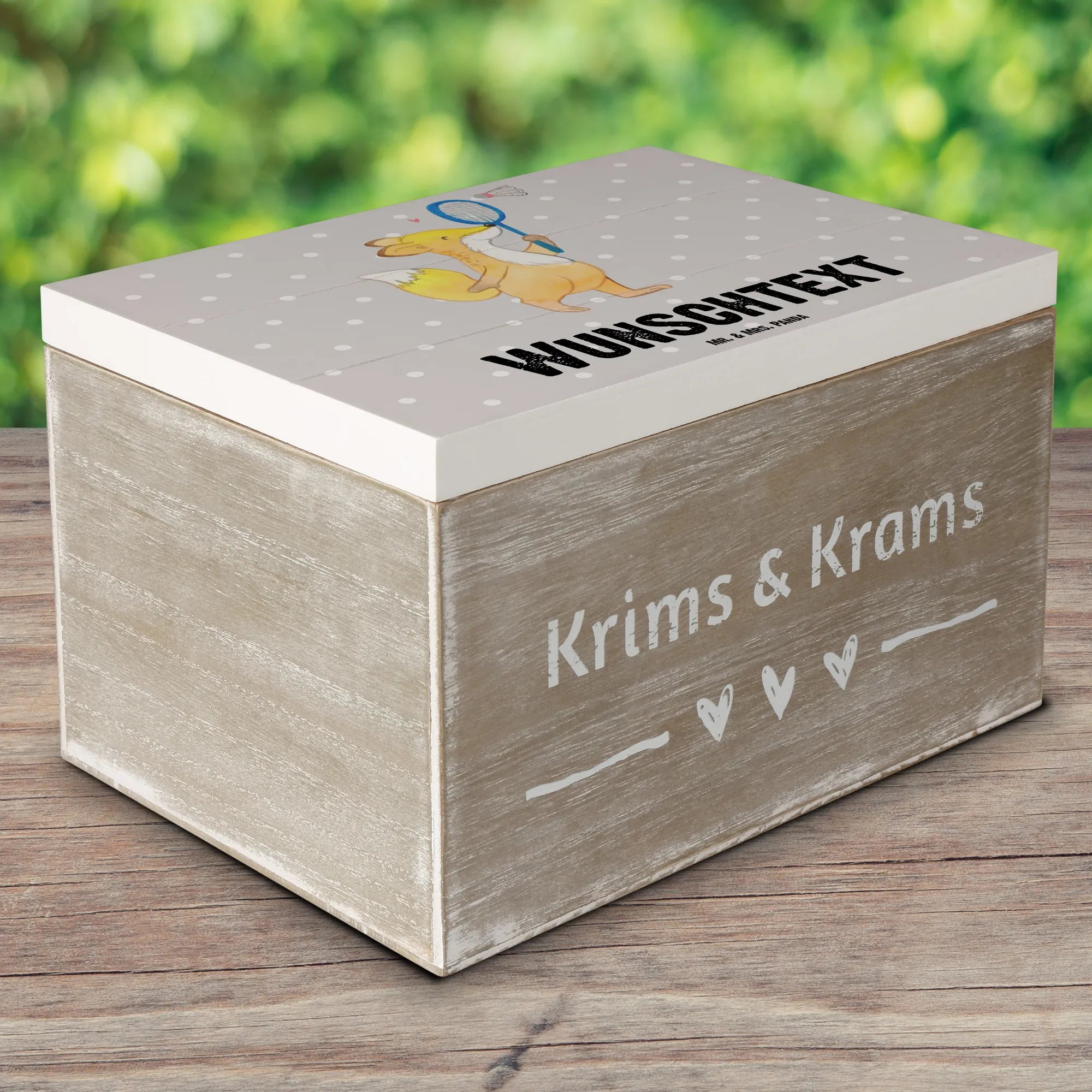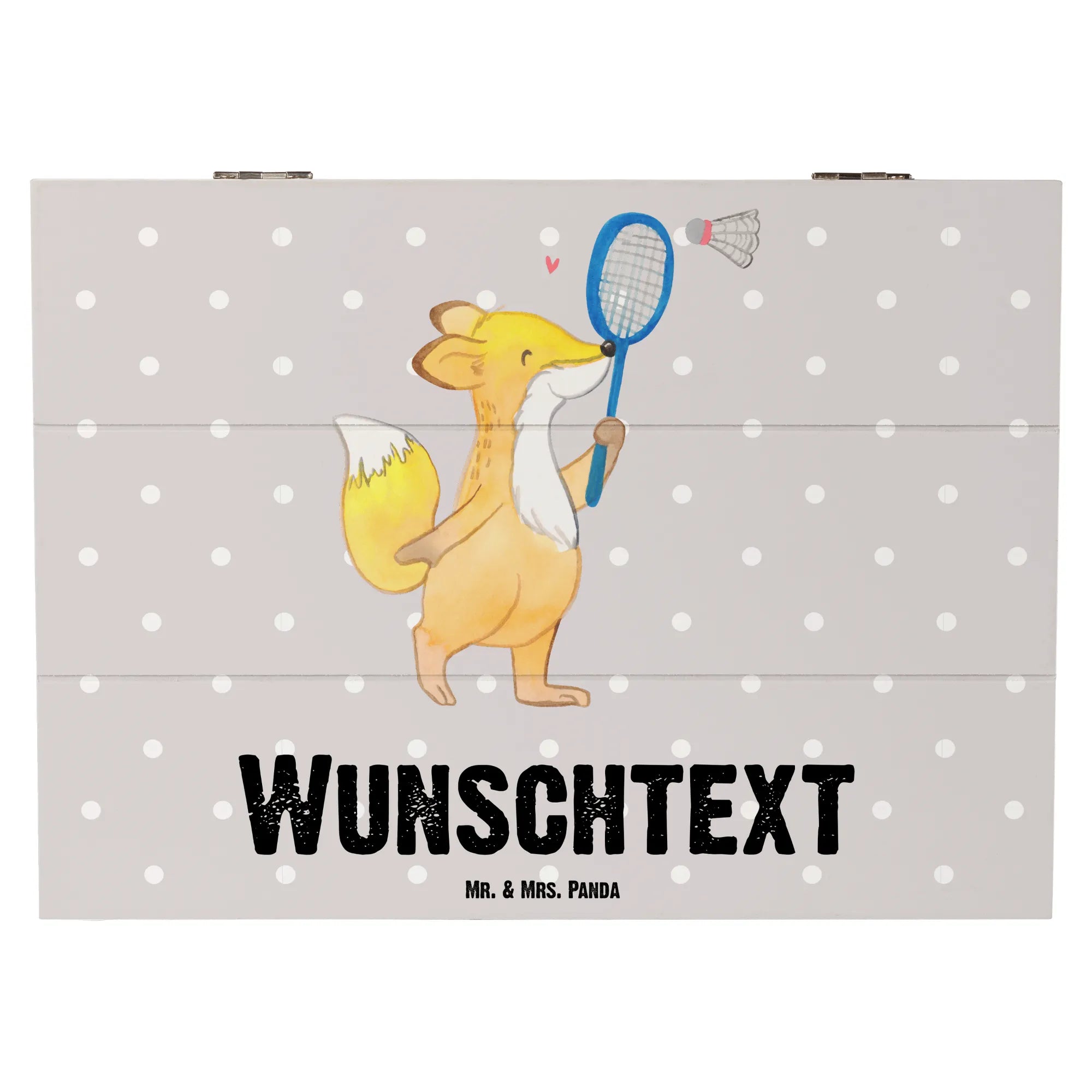 Personalised wooden chest Fox play badminton - 22 x 15 cm - Grey Pastel