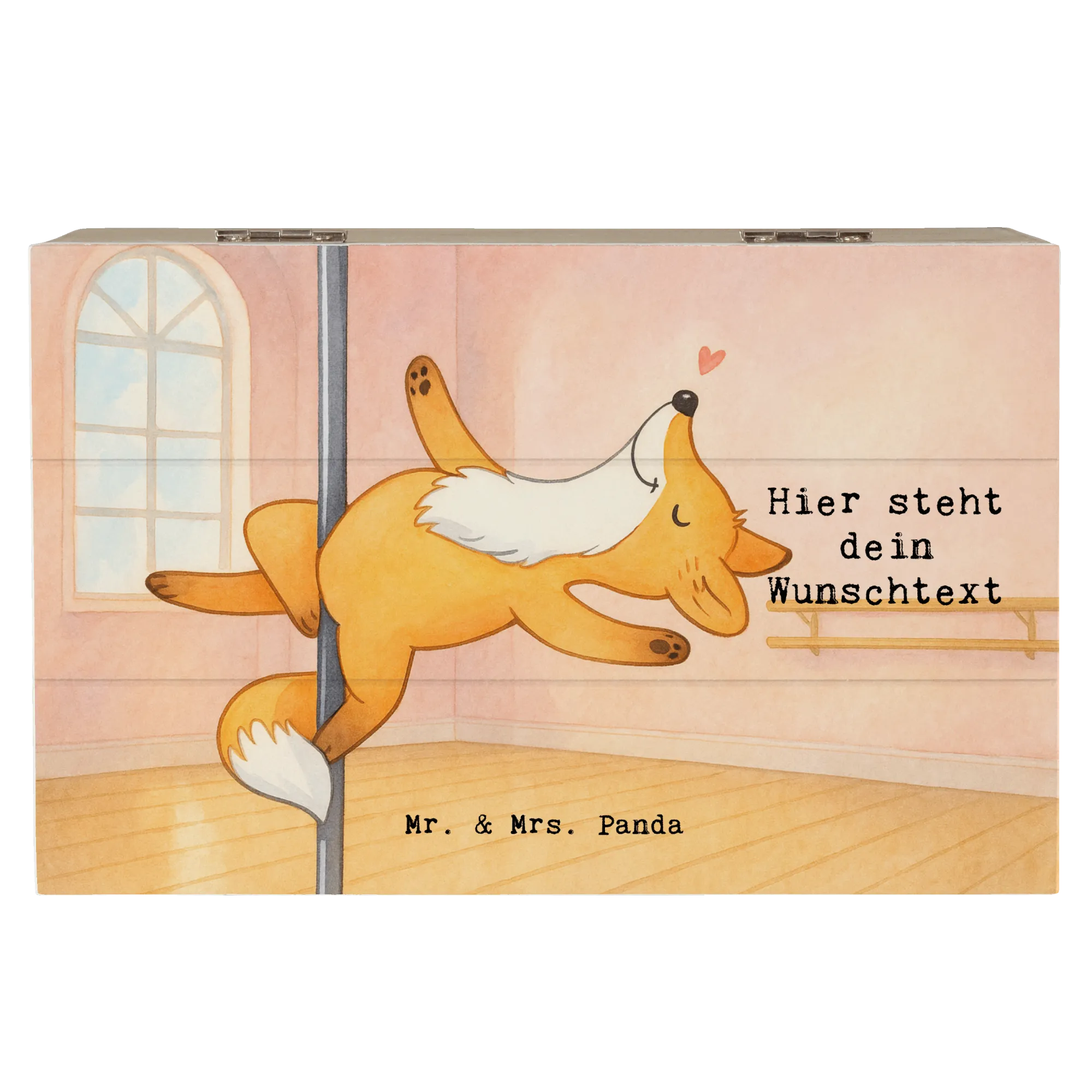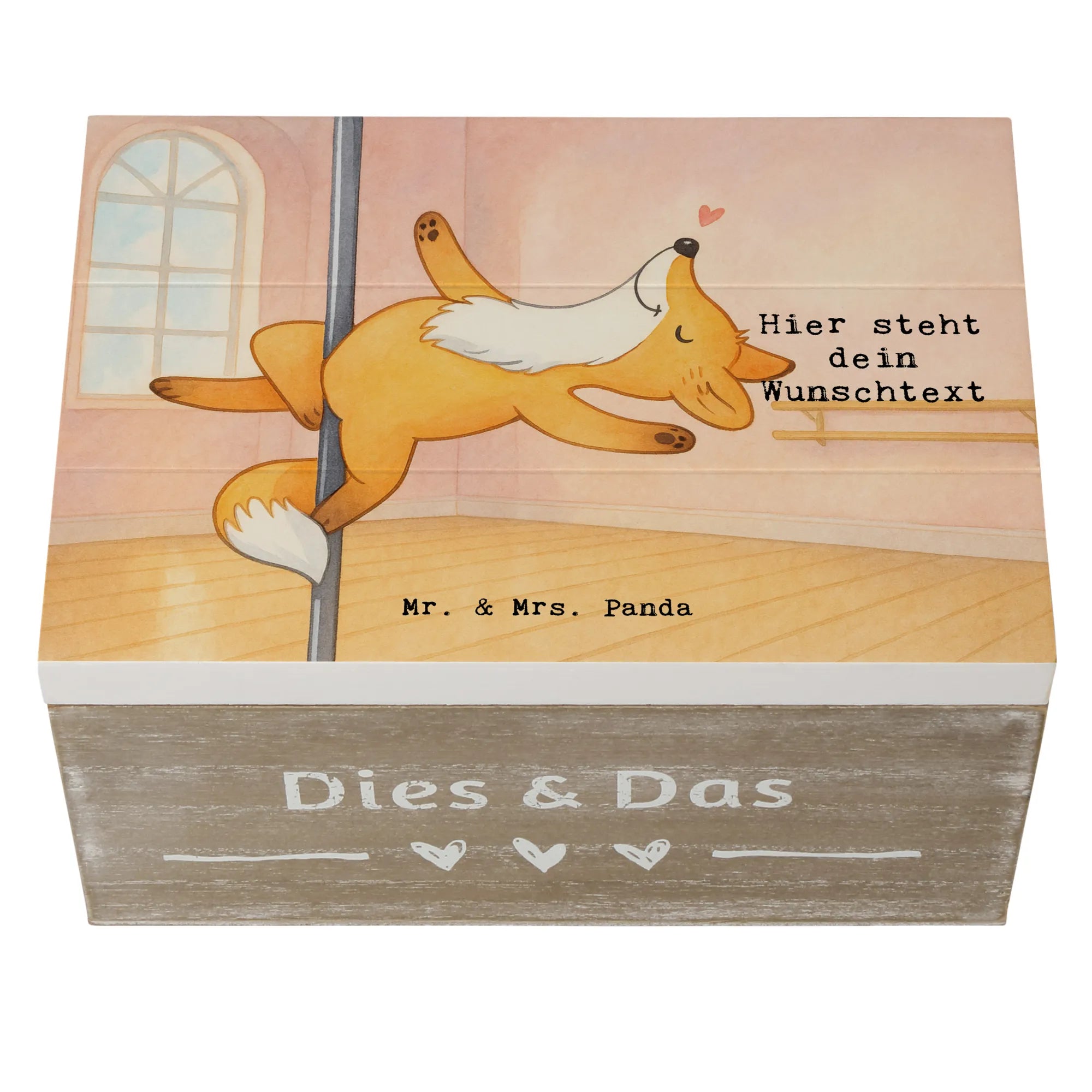 Personalised wooden chest Fox Pole Dance Design - 19 x 12 cm