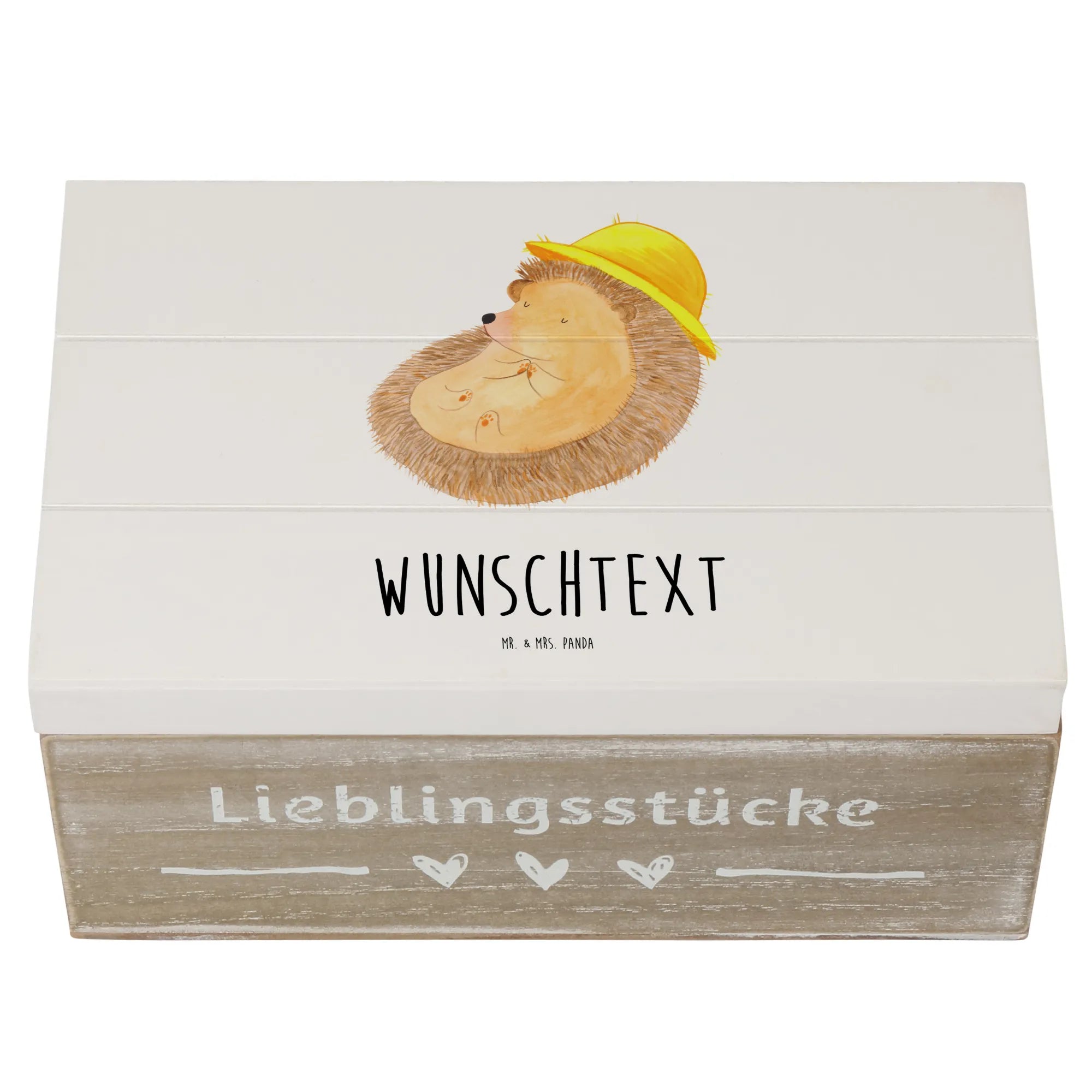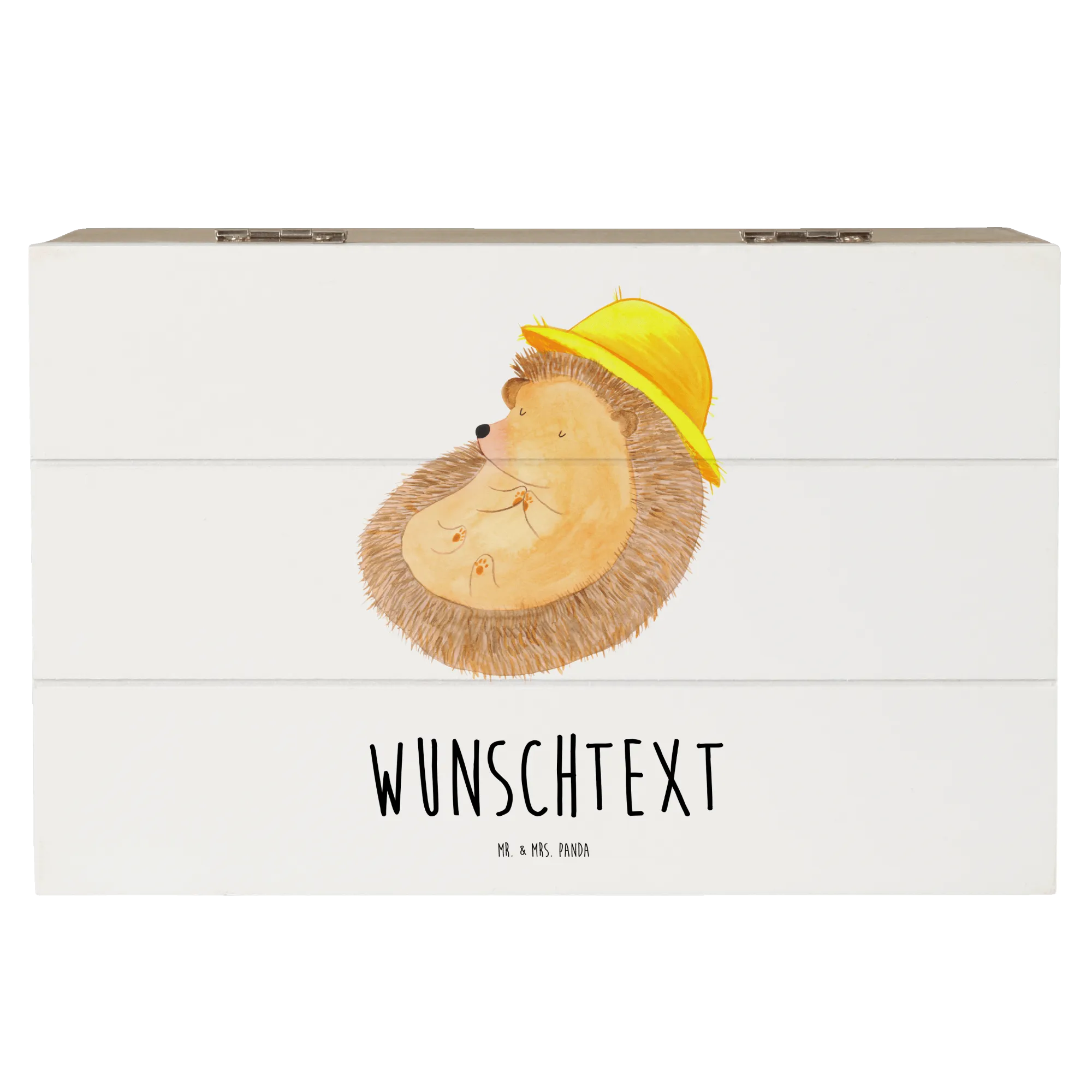 Personalised wooden chest Hedgehog Pray - 22 x 15 cm - White