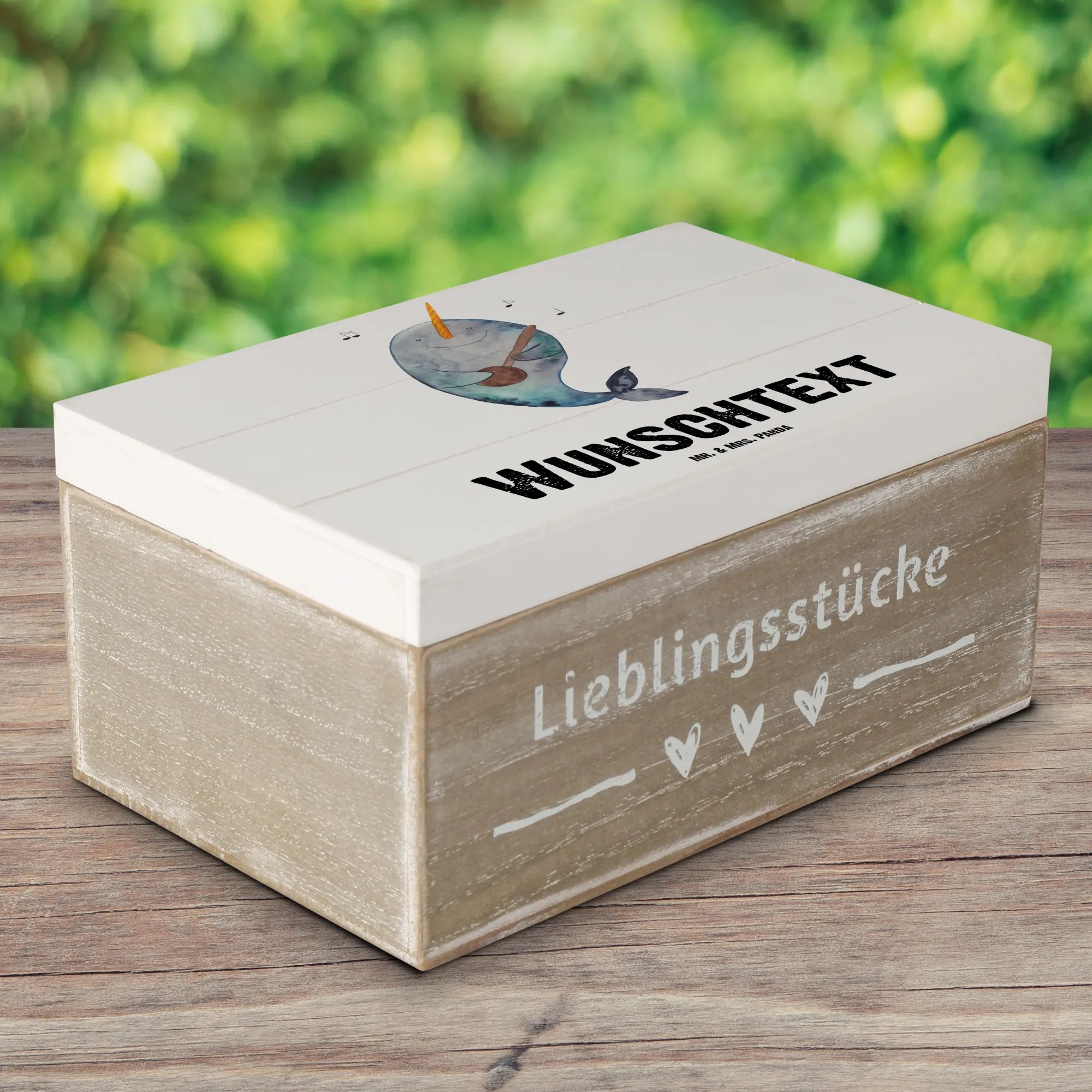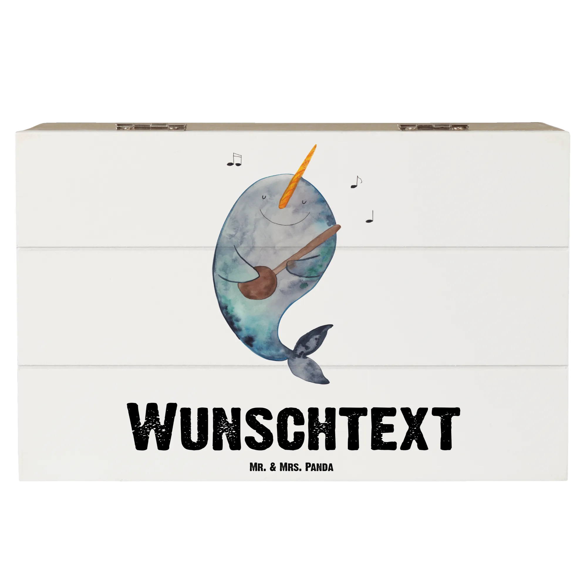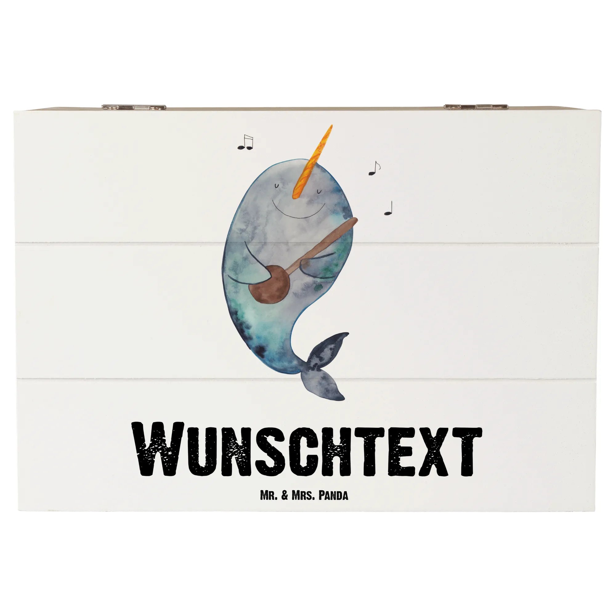 Personalised wooden chest narwhal guitar - 22 x 15 cm - White
