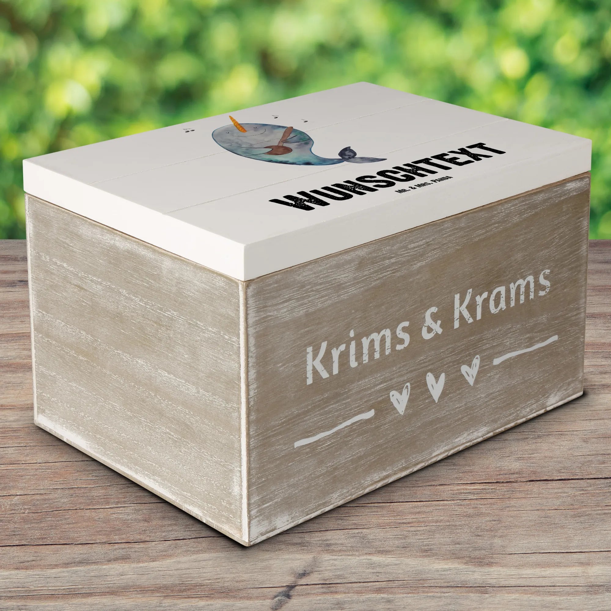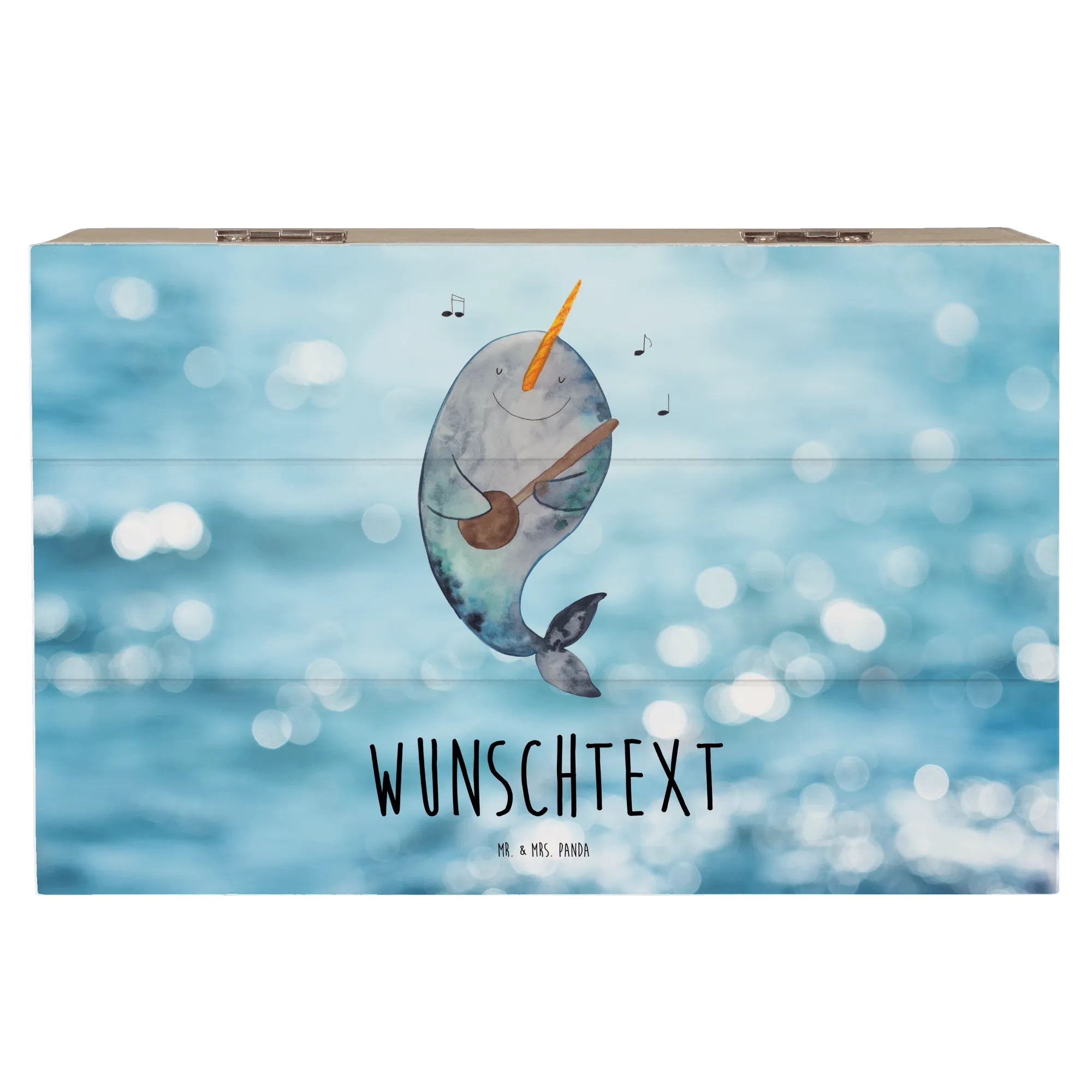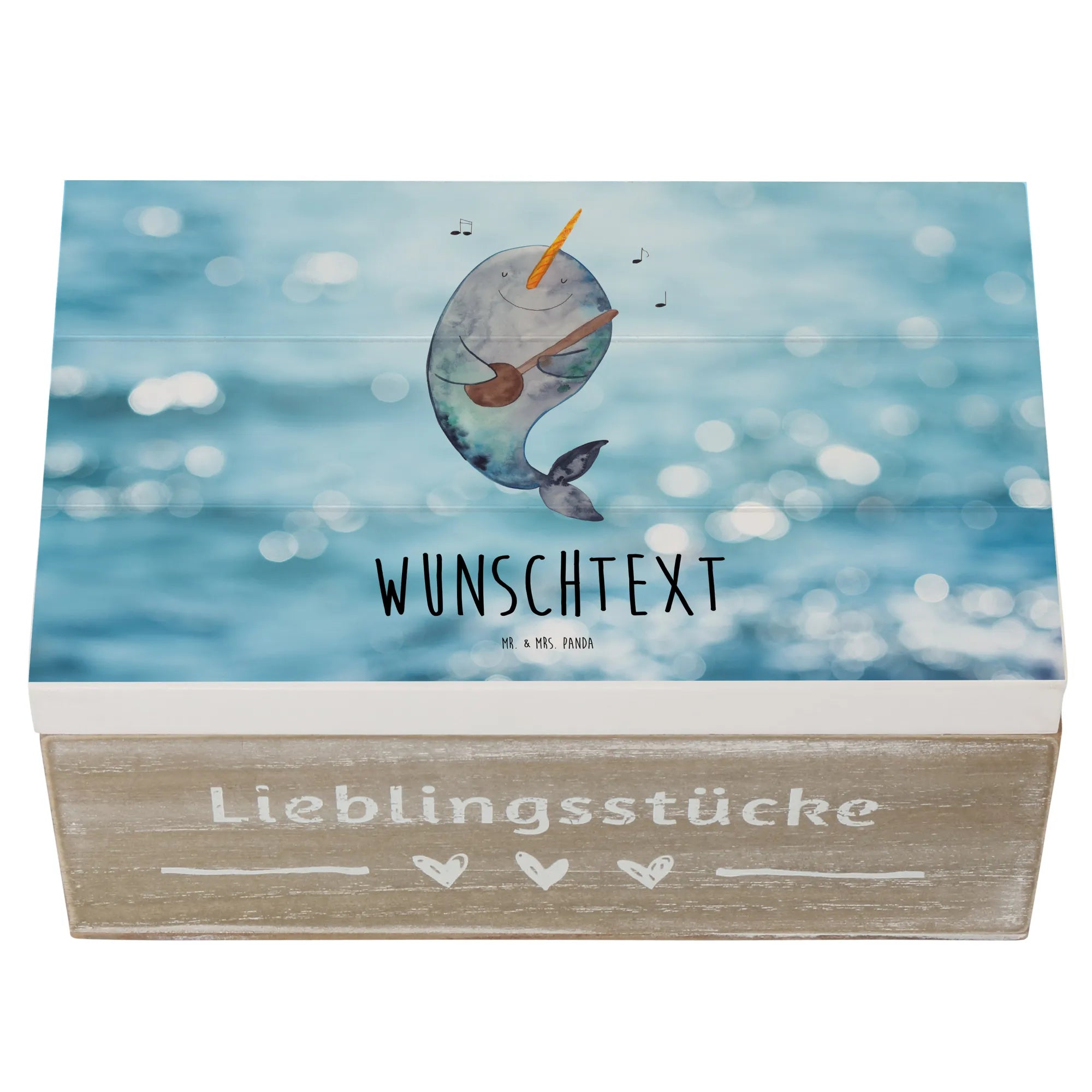 Personalised wooden chest narwhal guitar - 22 x 15 cm - White