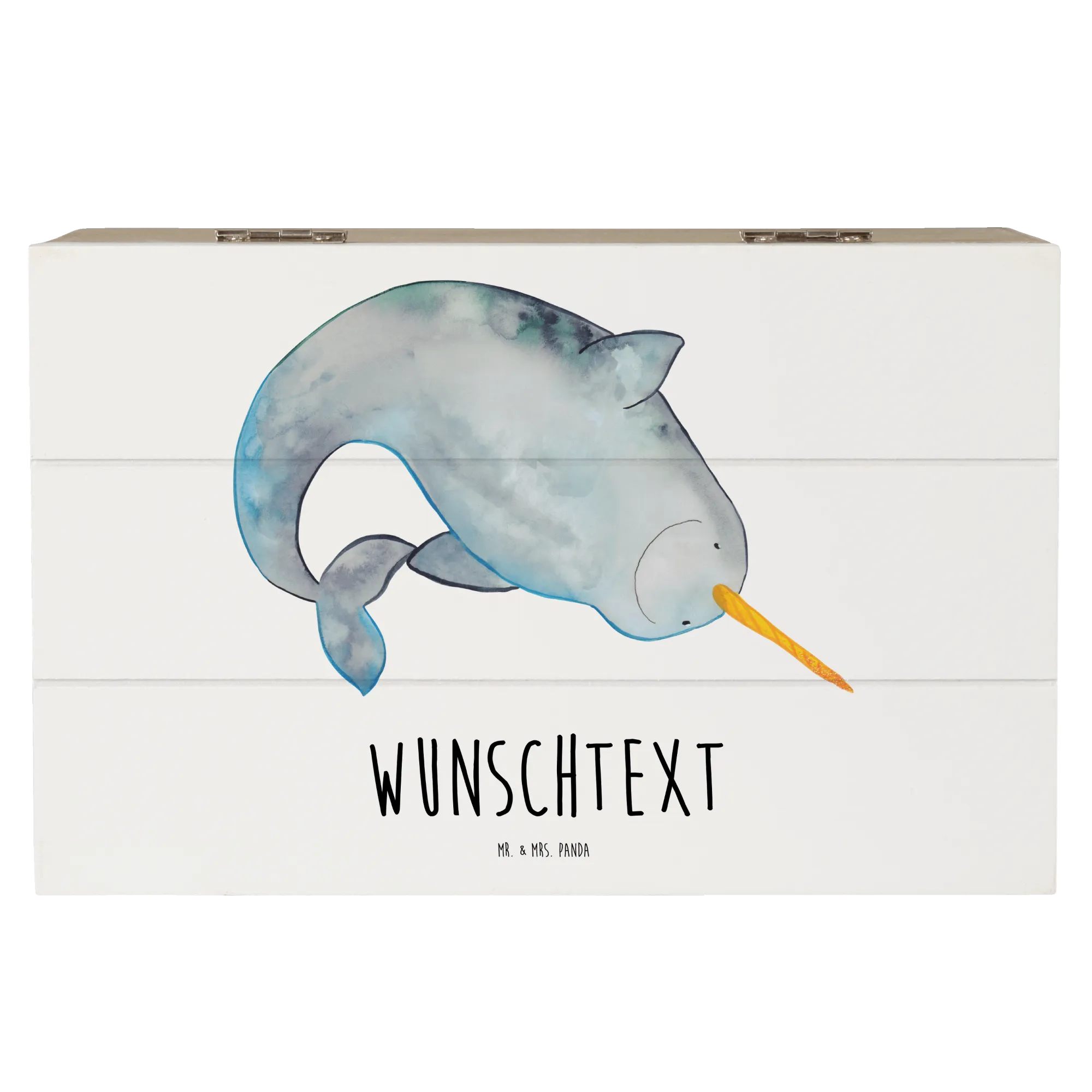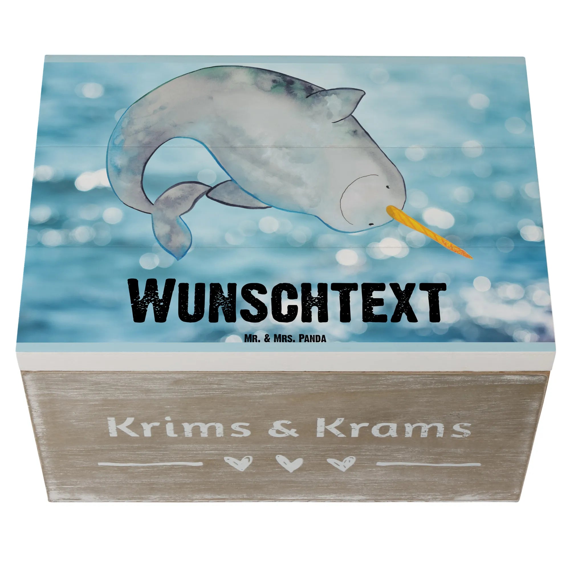 Personalised wooden chest Narwhal - 25 x 18 cm - Oceanblue