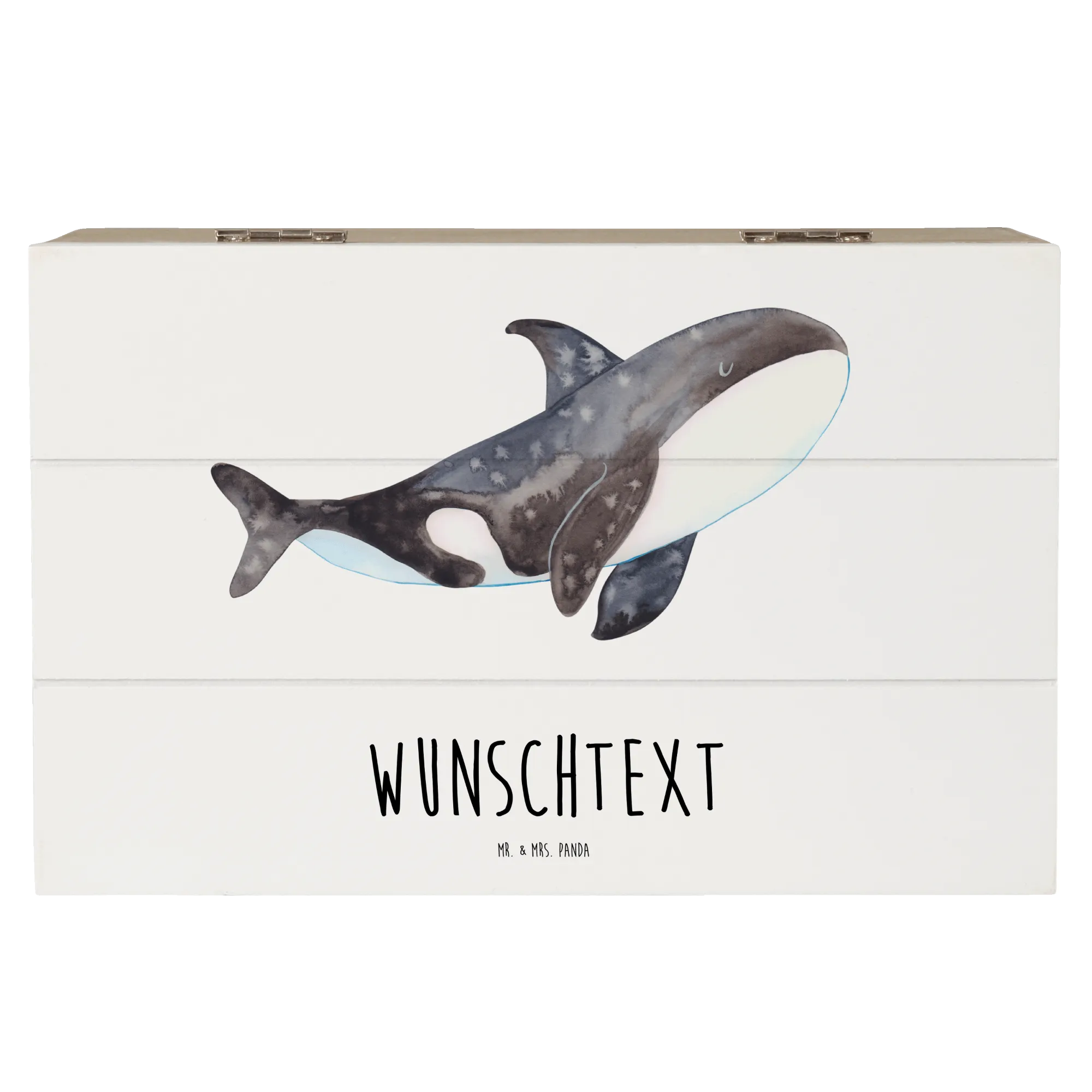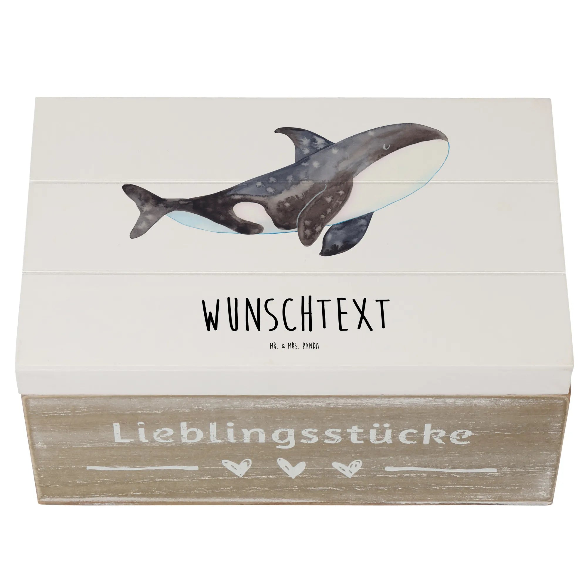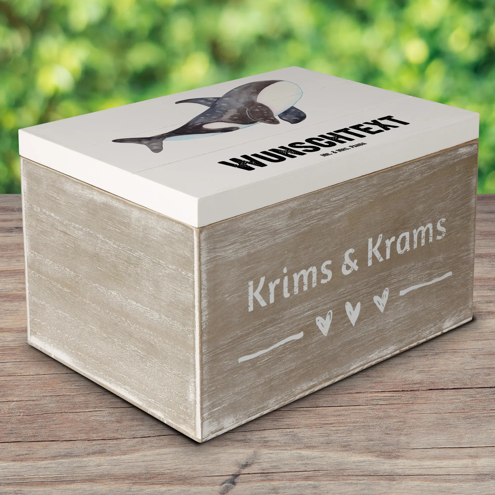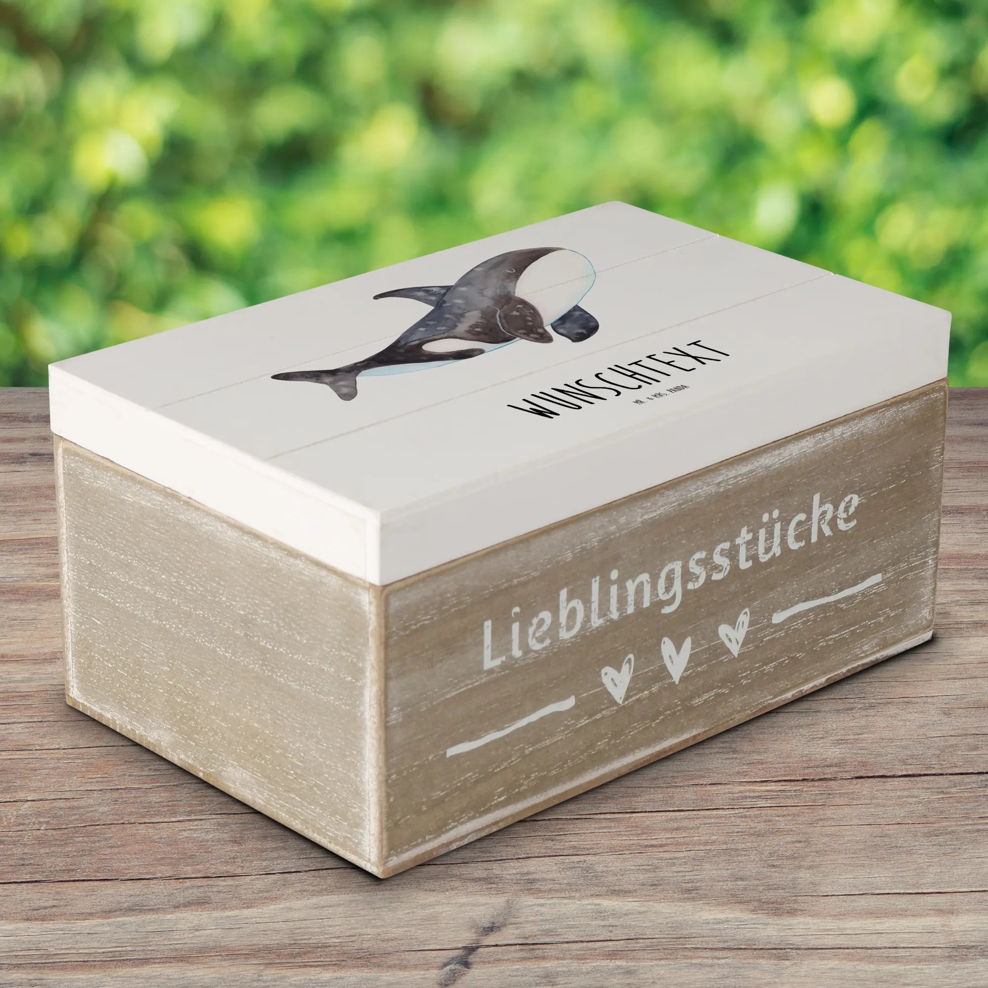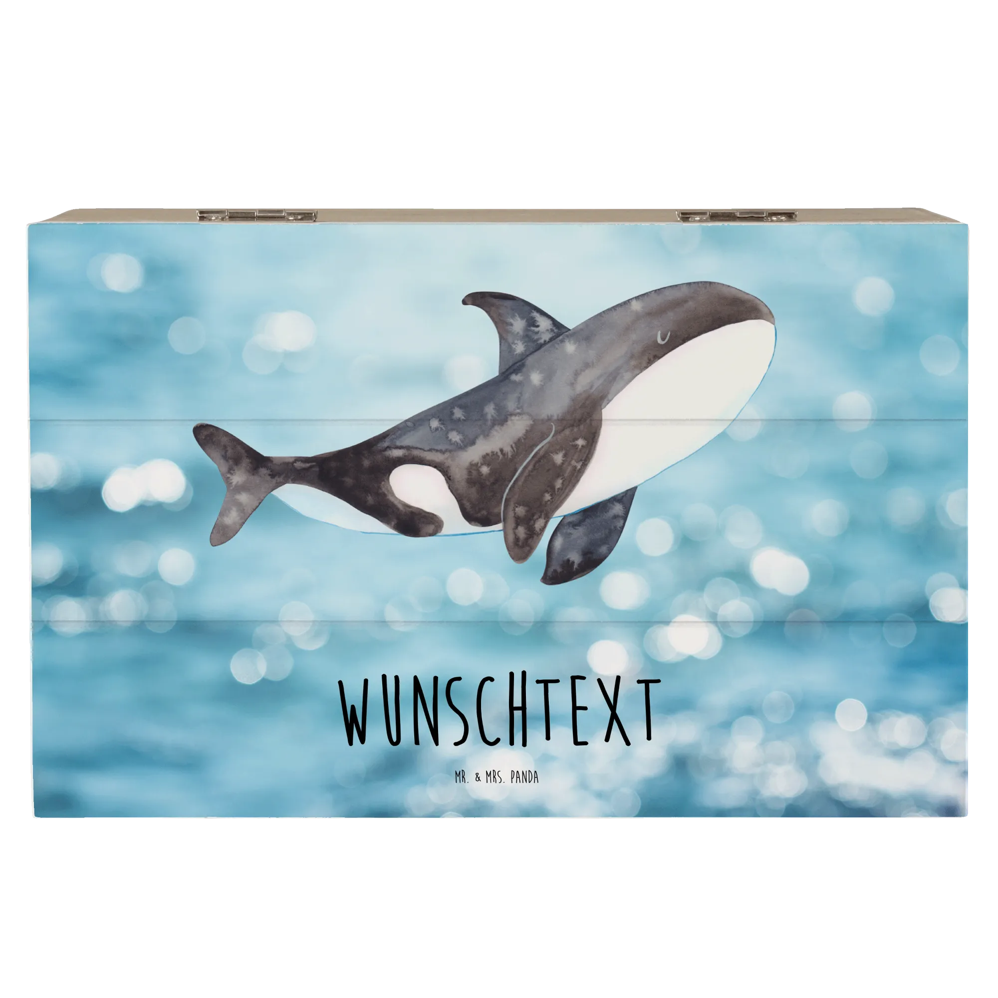 Personalised wooden chest Orca - 25 x 18 cm - Oceanblue
