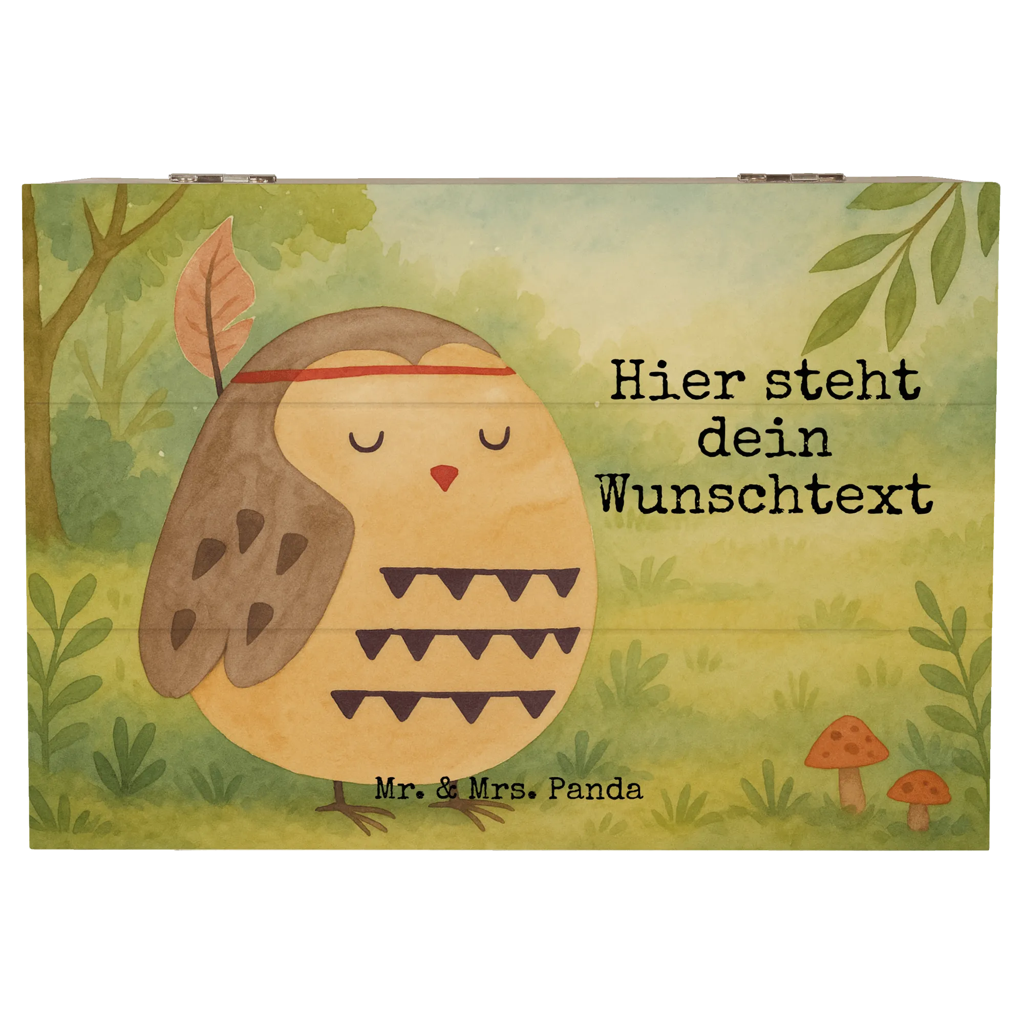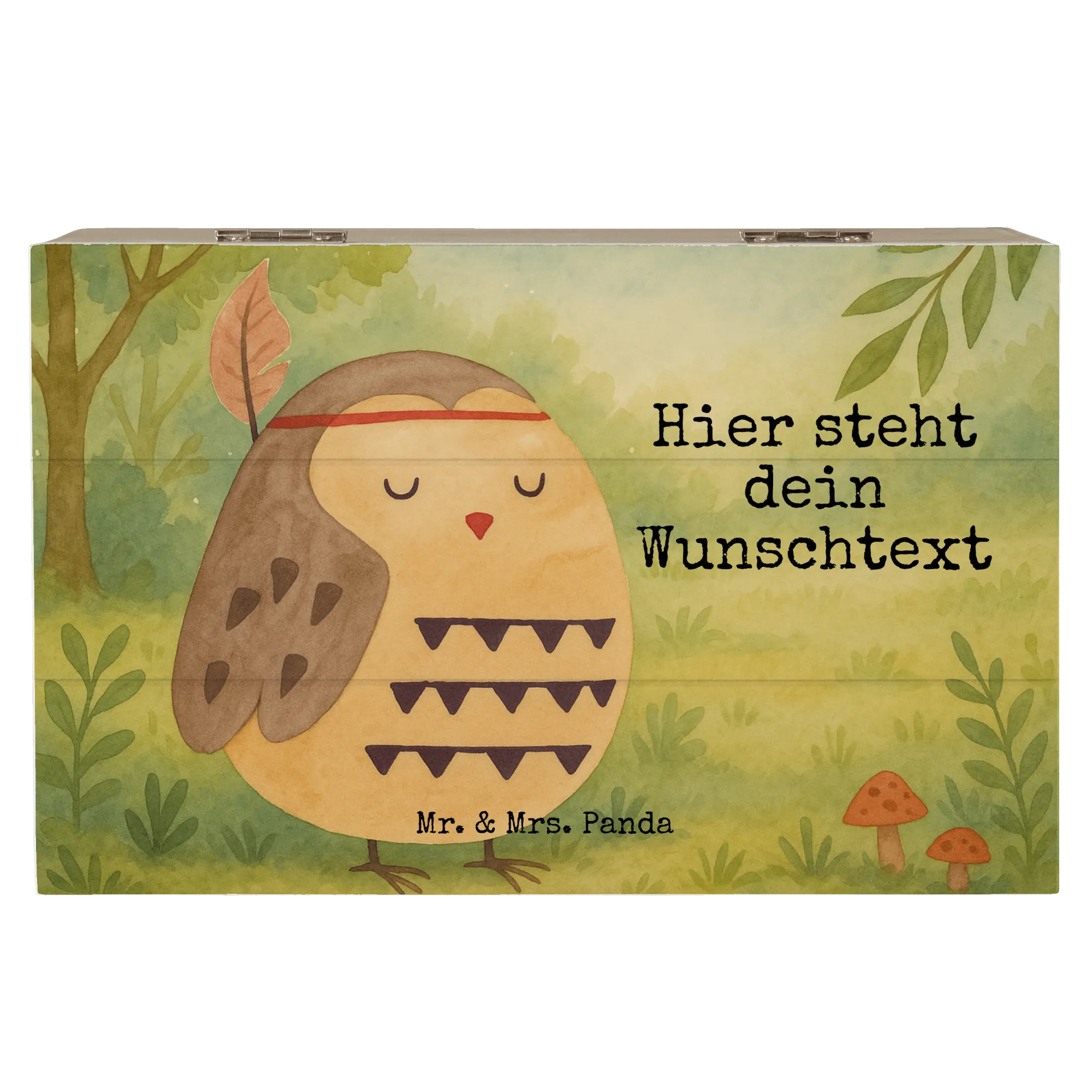 Personalised wooden chest Owl feather headdress Design - 19 x 12 cm