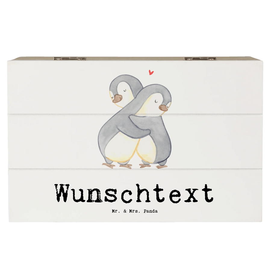 Personalised wooden chest penguin best cousin in the world - 19 x 12 cm - White