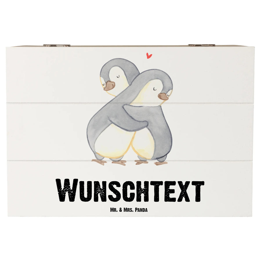 Personalised wooden chest penguin best cousin in the world - 22 x 15 cm - White