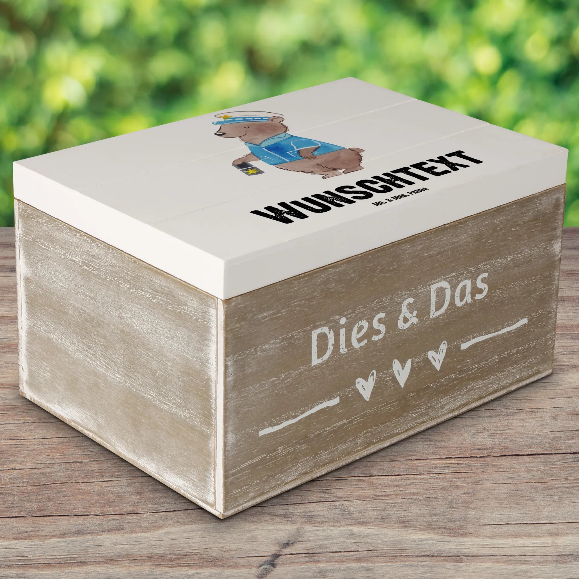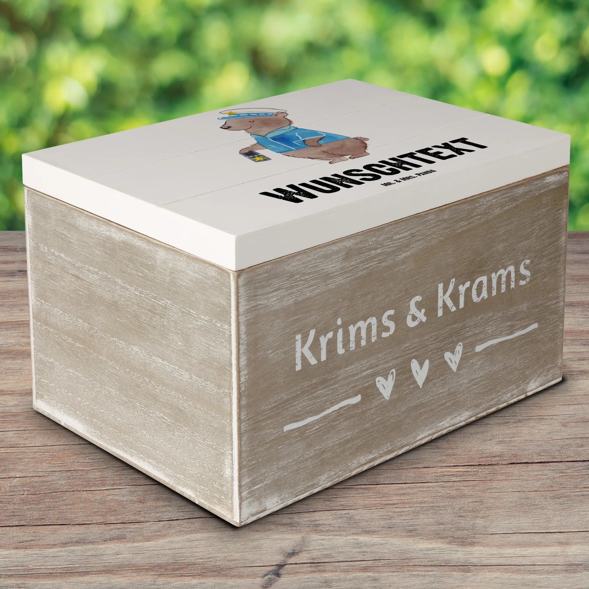 Personalised wooden chest Police officer Heart - 22 x 15 cm - White