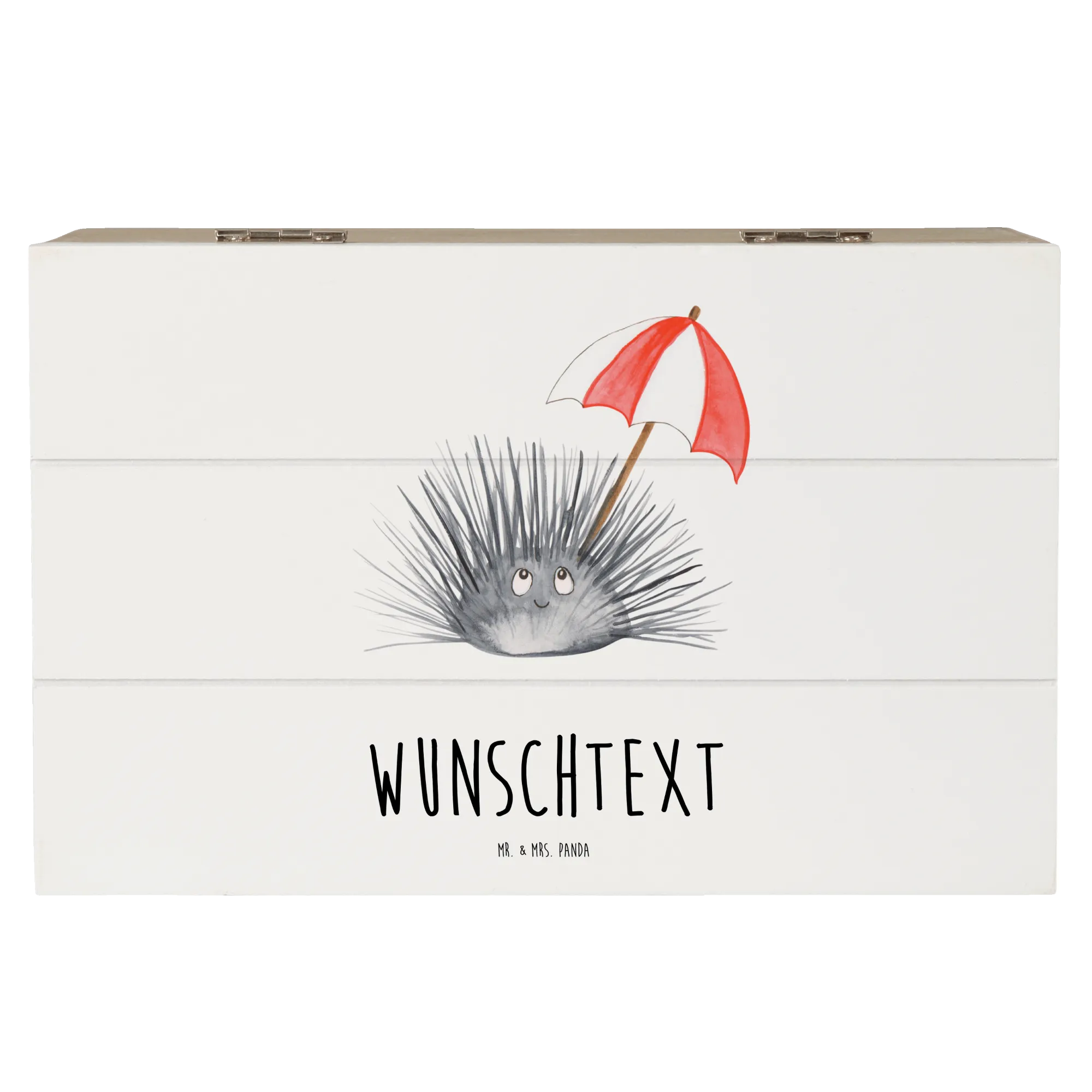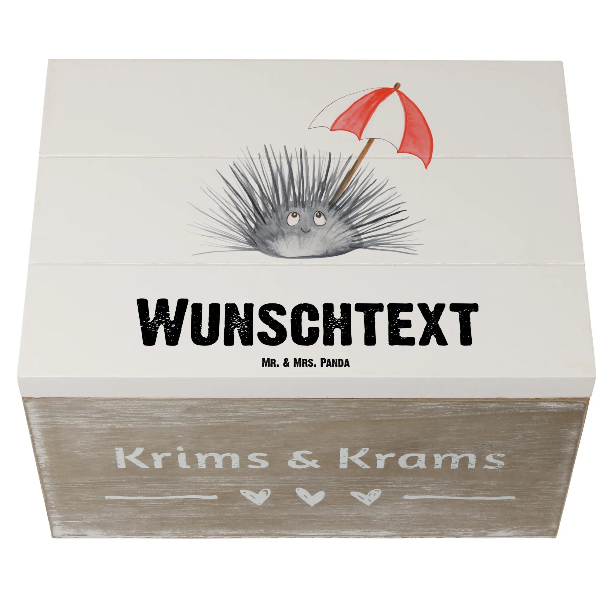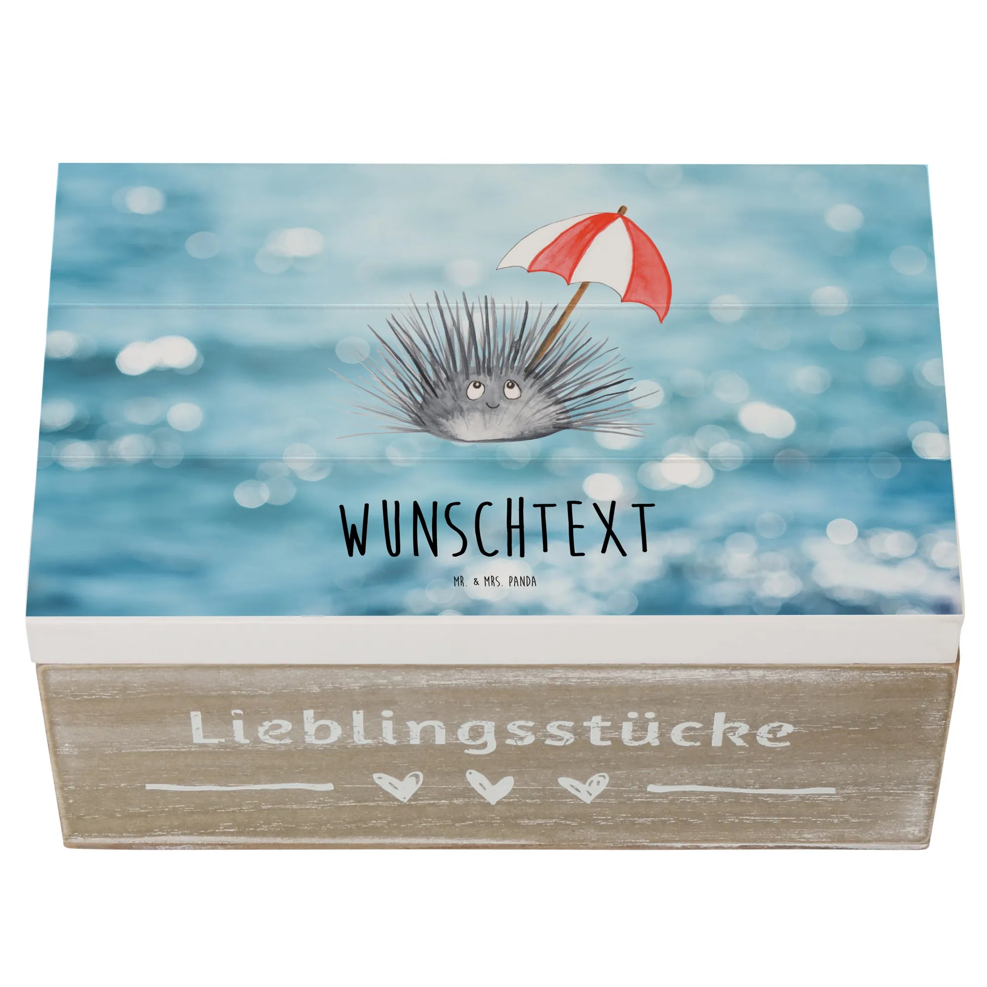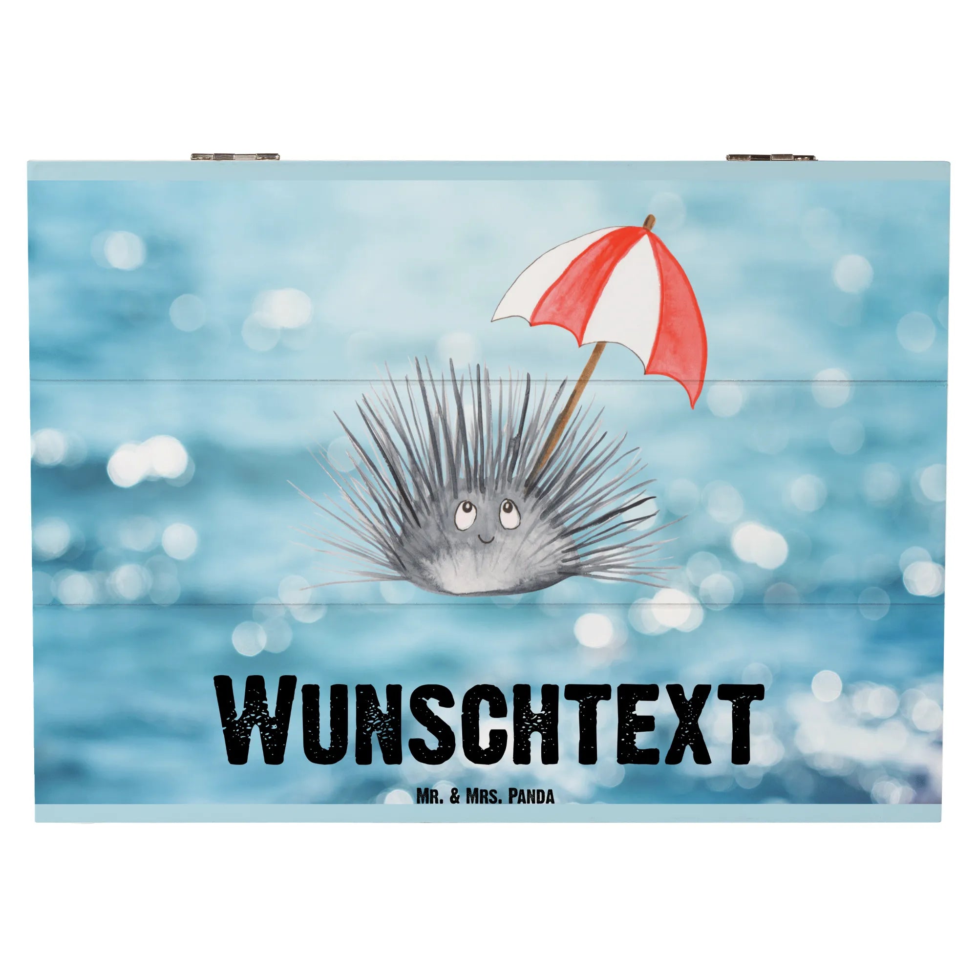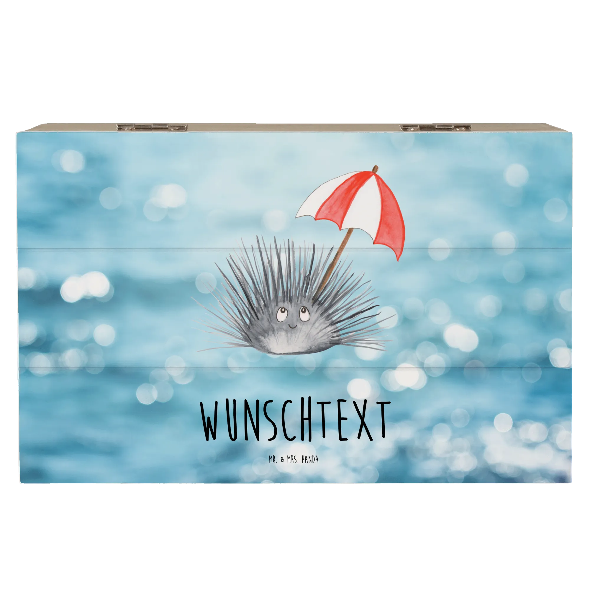 Personalised wooden chest Sea urchins - 25 x 18 cm - Oceanblue