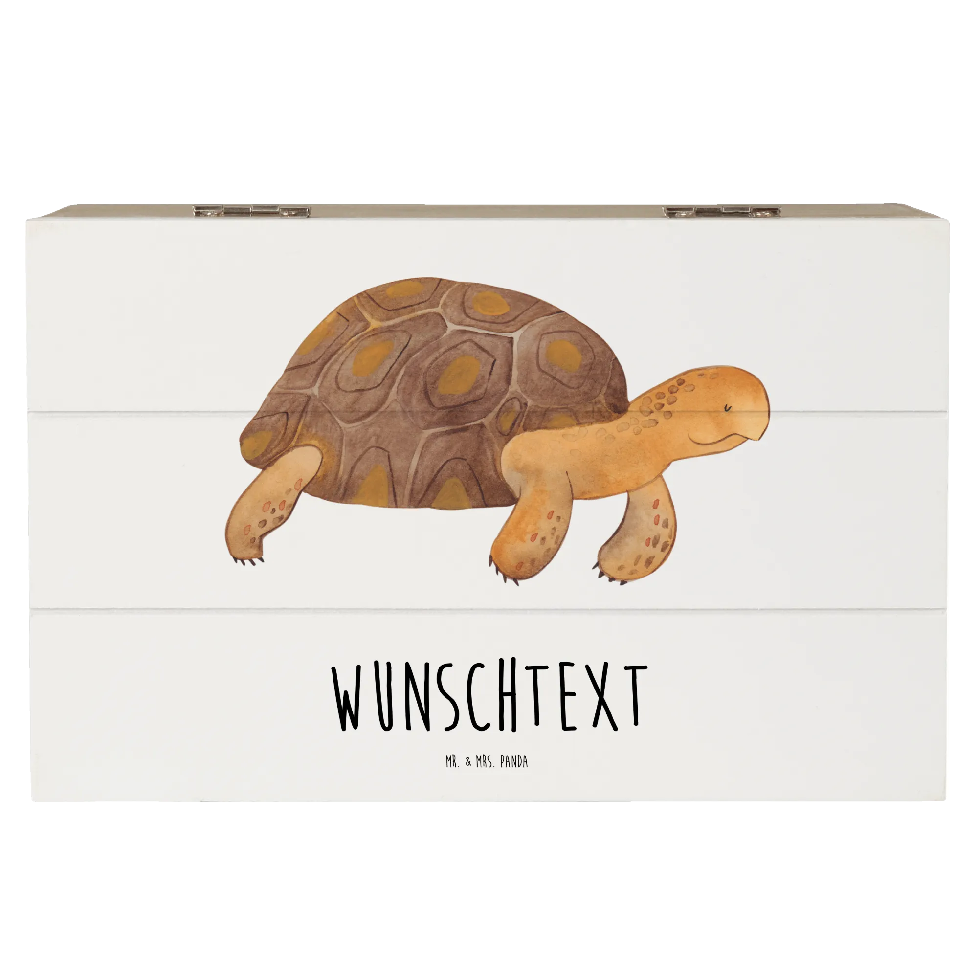 Personalised wooden chest tortoise March - 22 x 15 cm - White