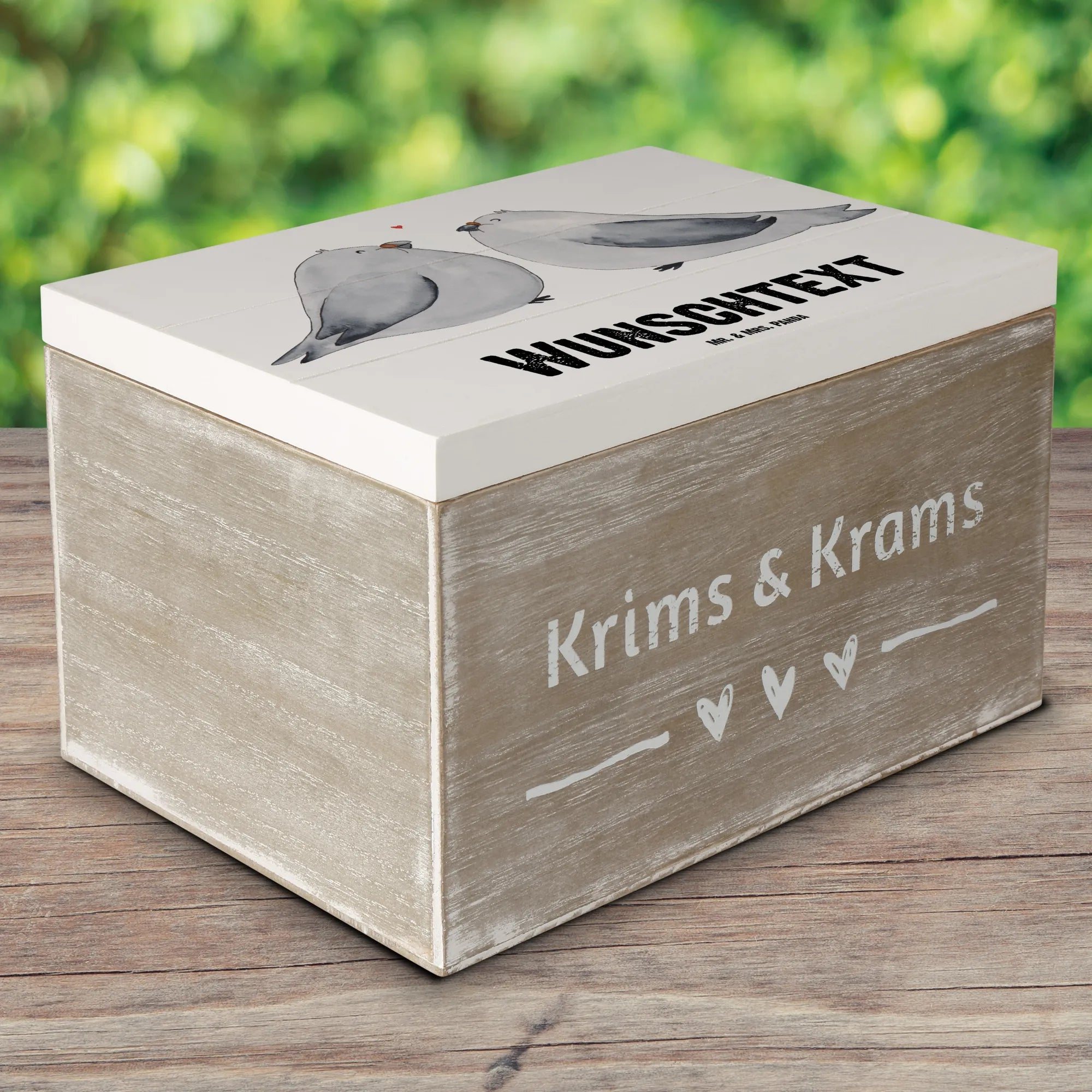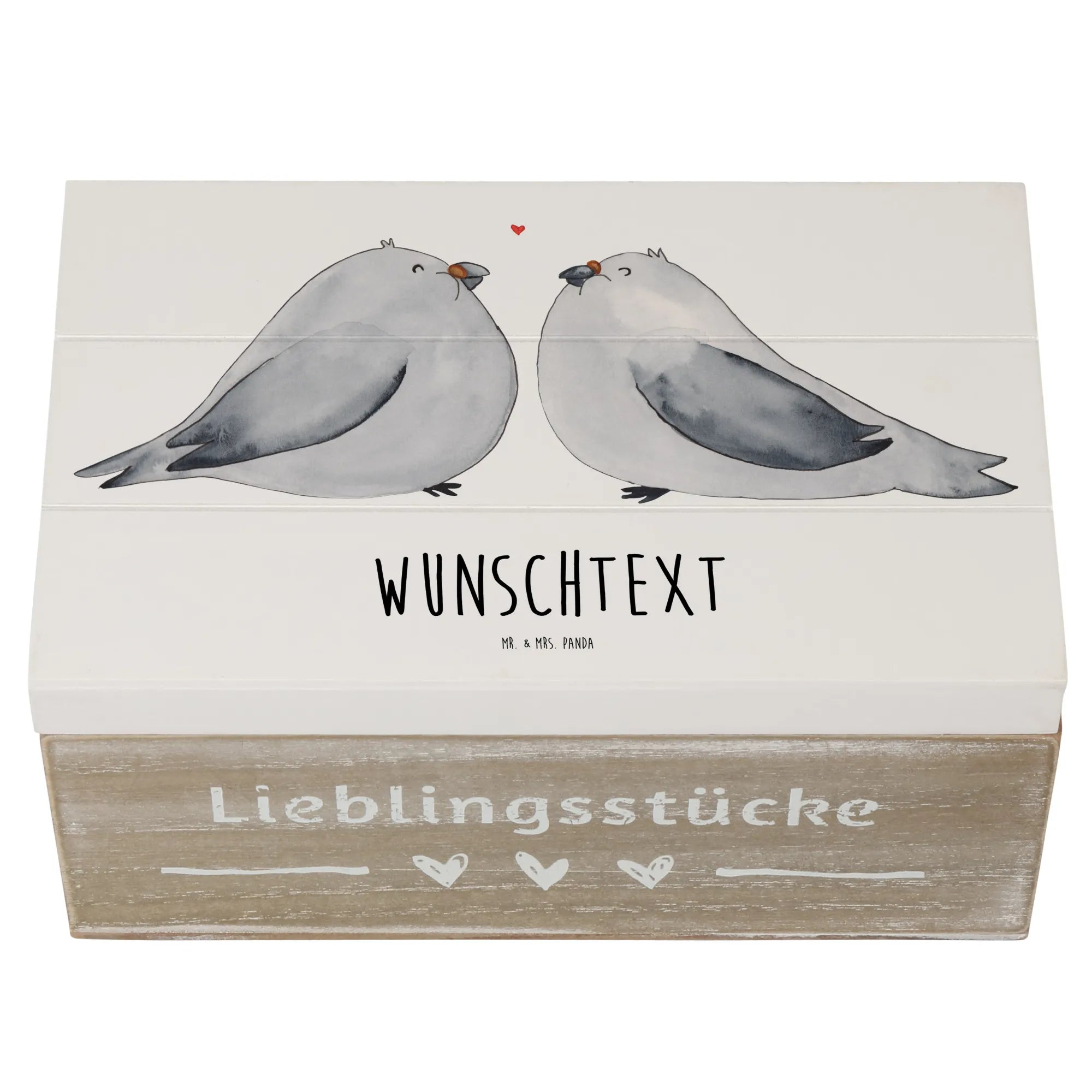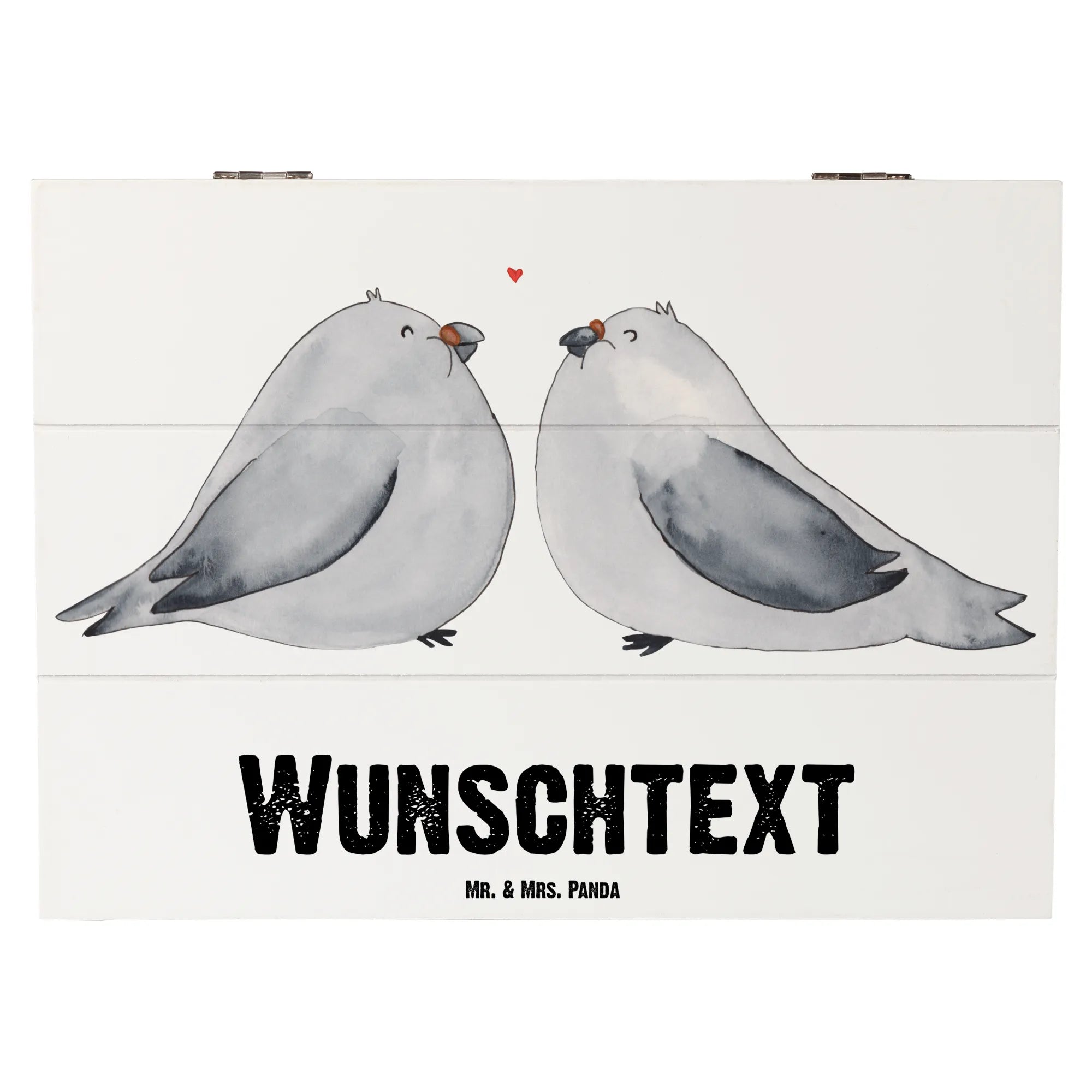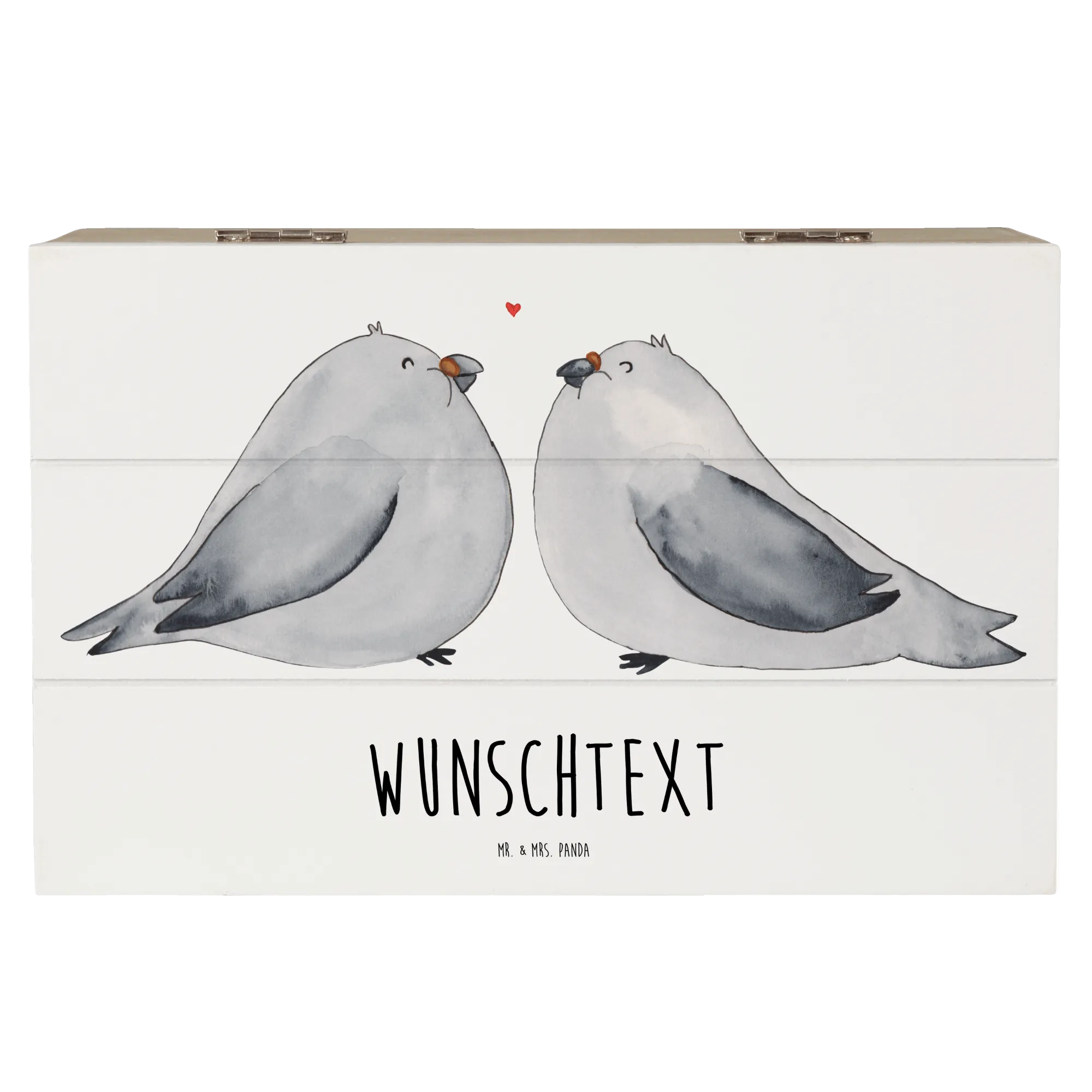 Personalised wooden chest Turtledoves in love - 22 x 15 cm - White