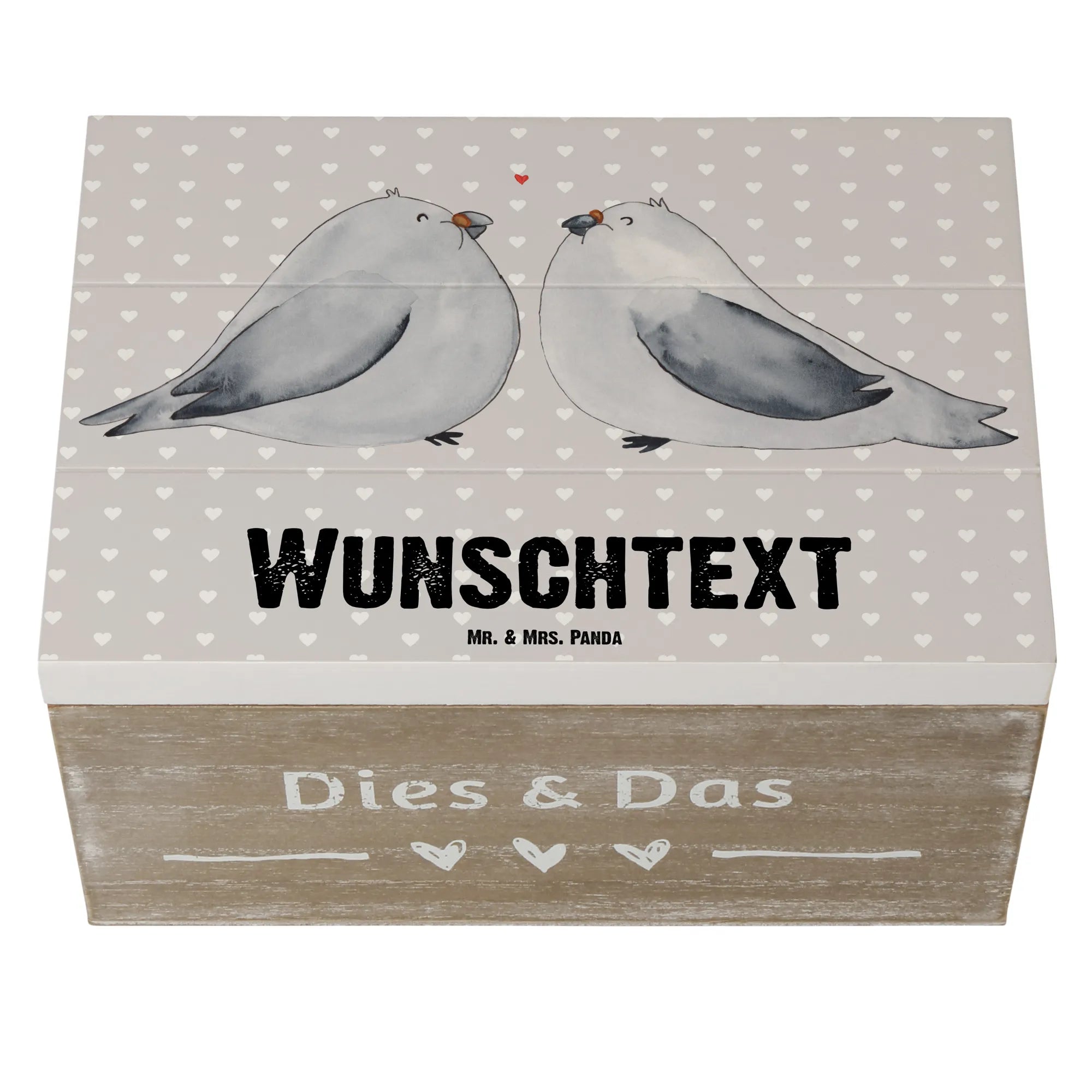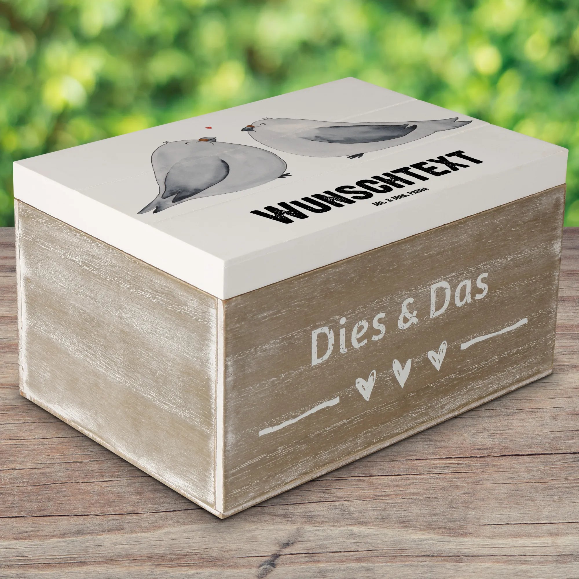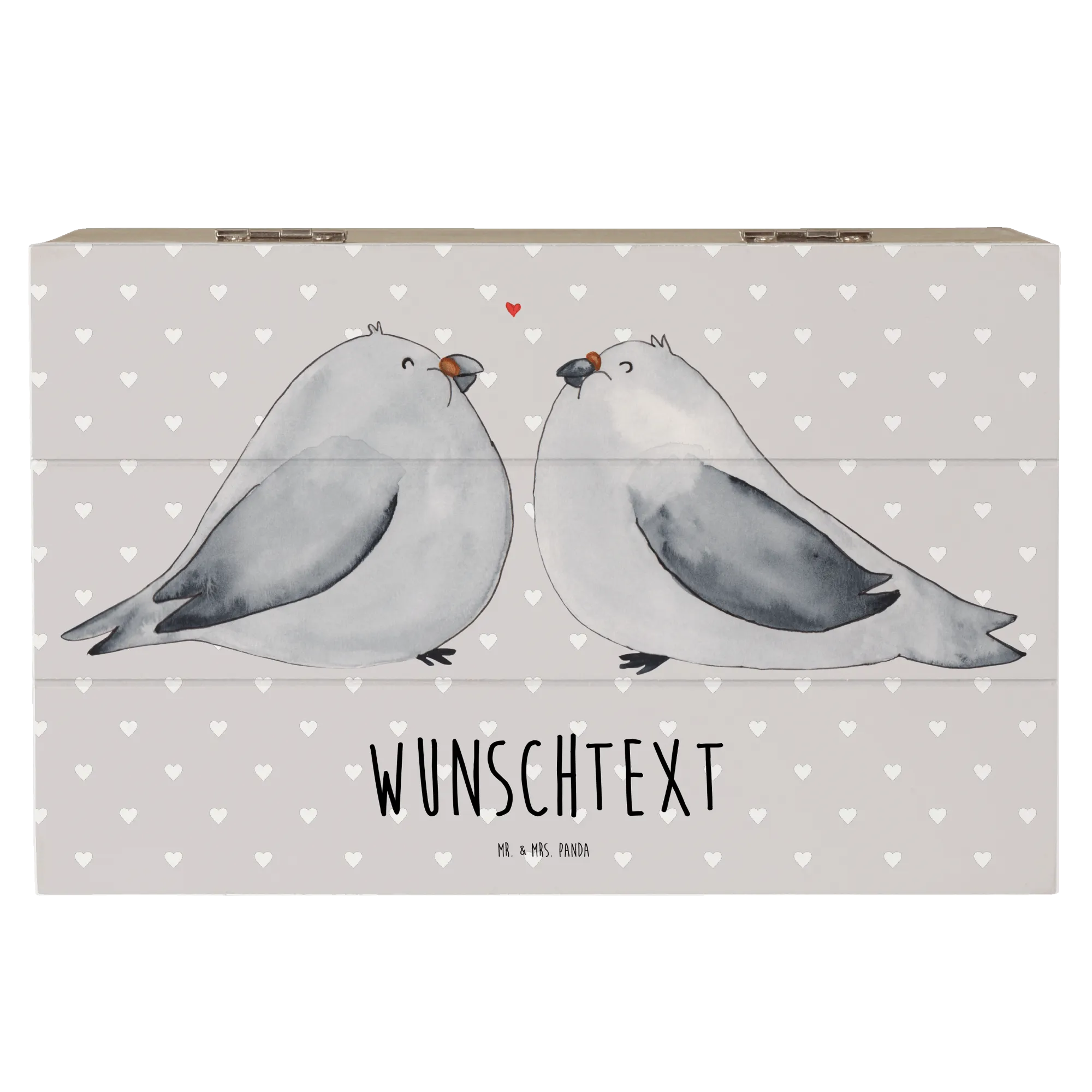 Personalised wooden chest Turtledoves in love - 22 x 15 cm - White