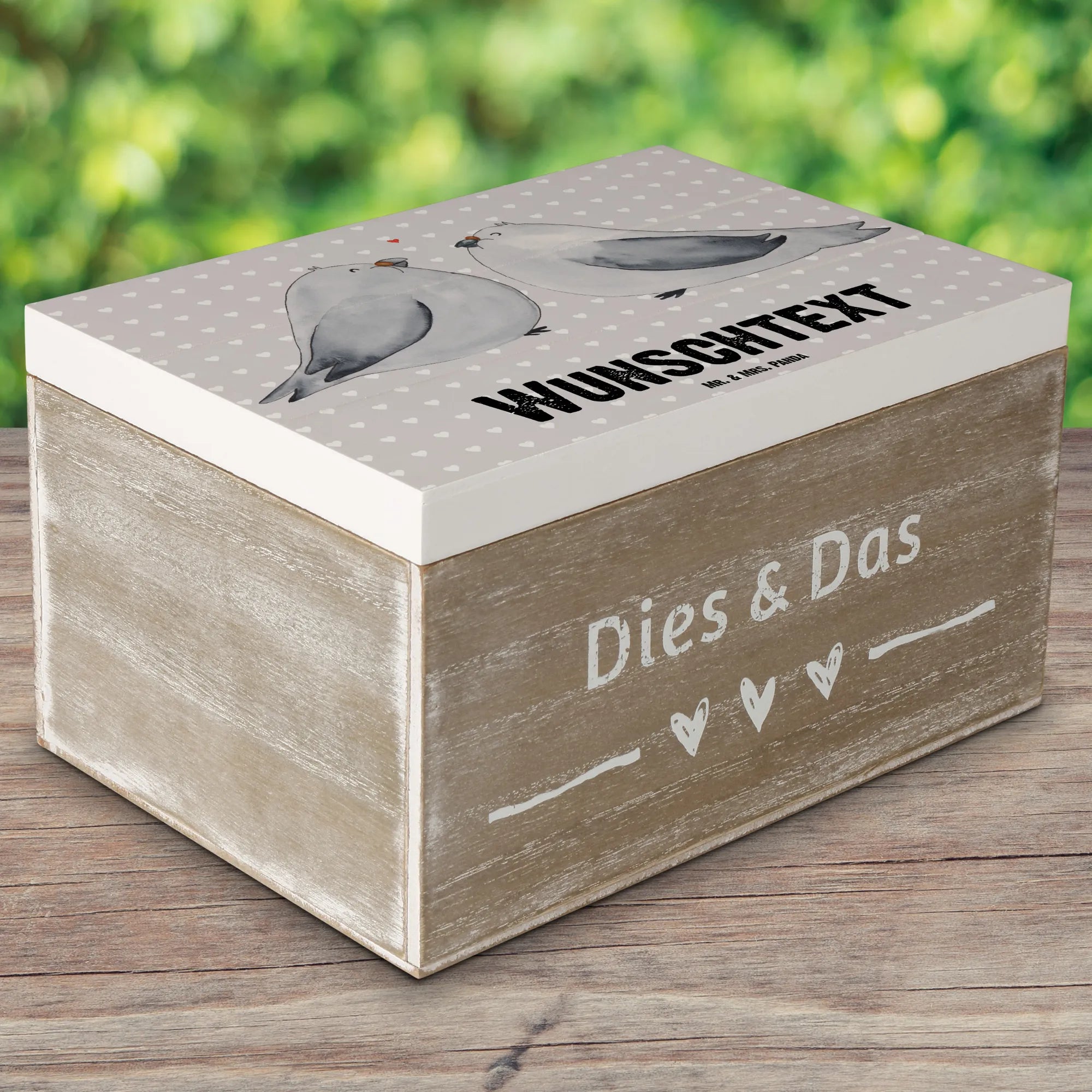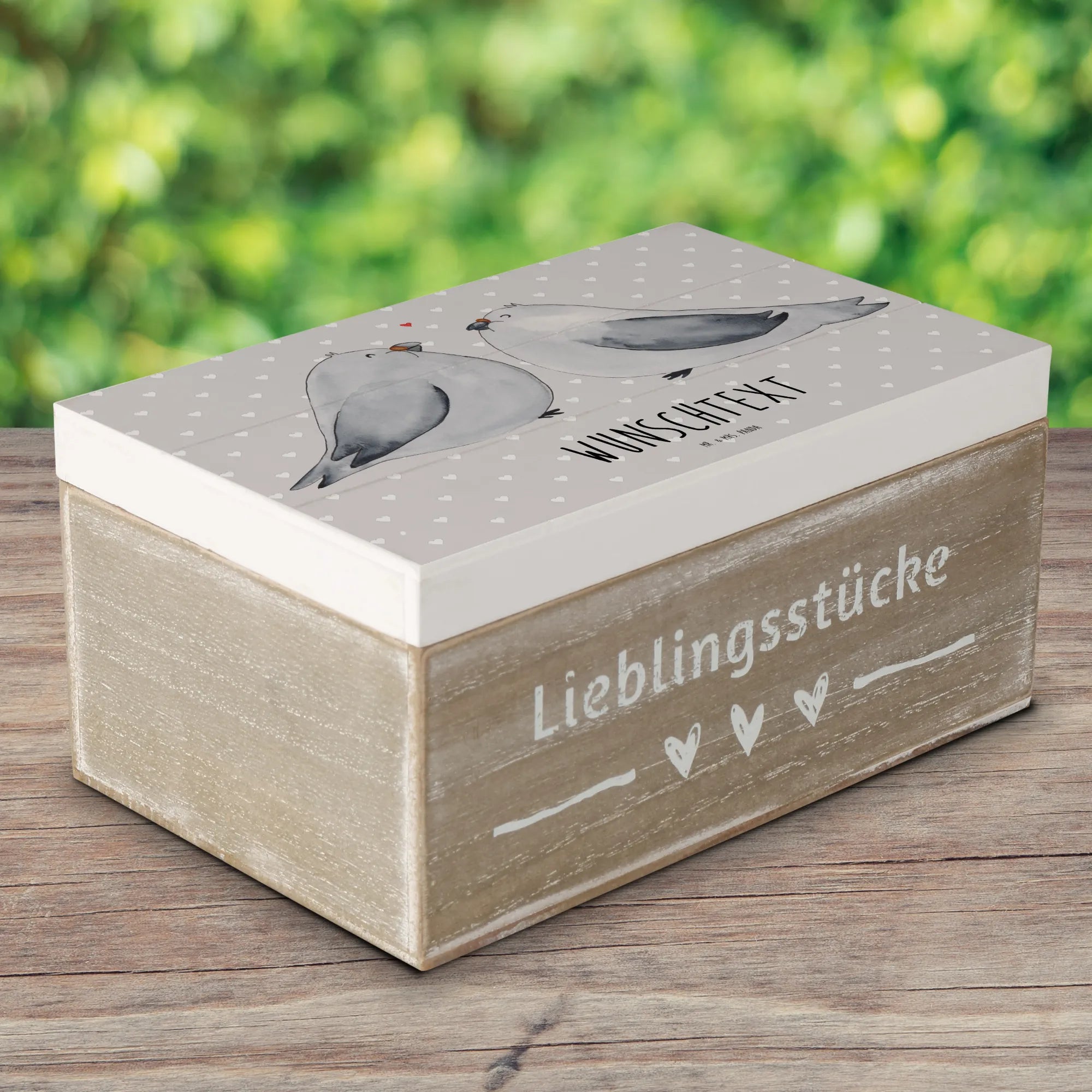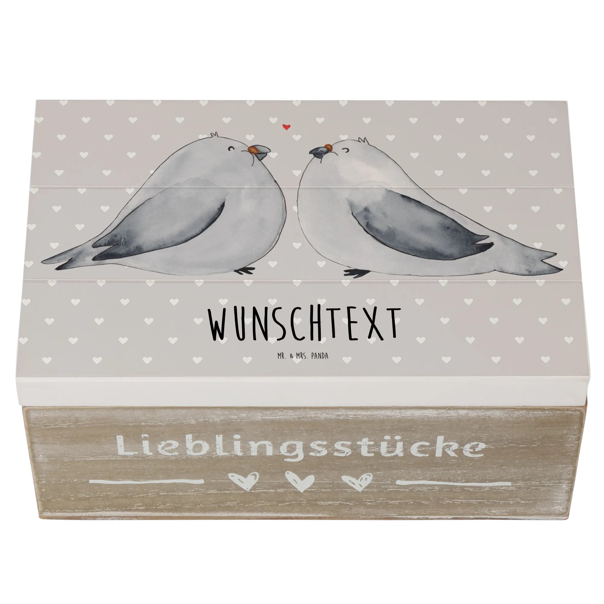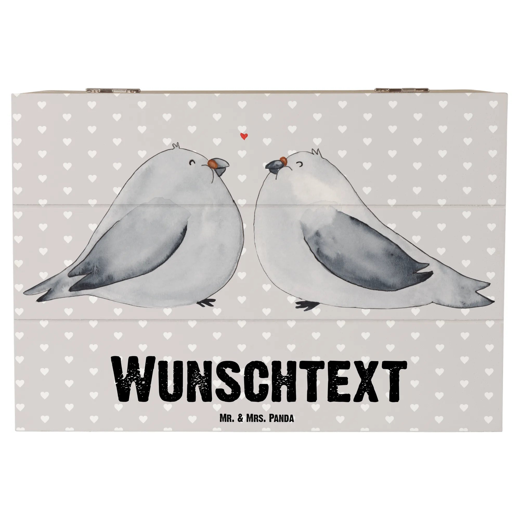 Personalised wooden chest Turtledoves in love - 22 x 15 cm - White