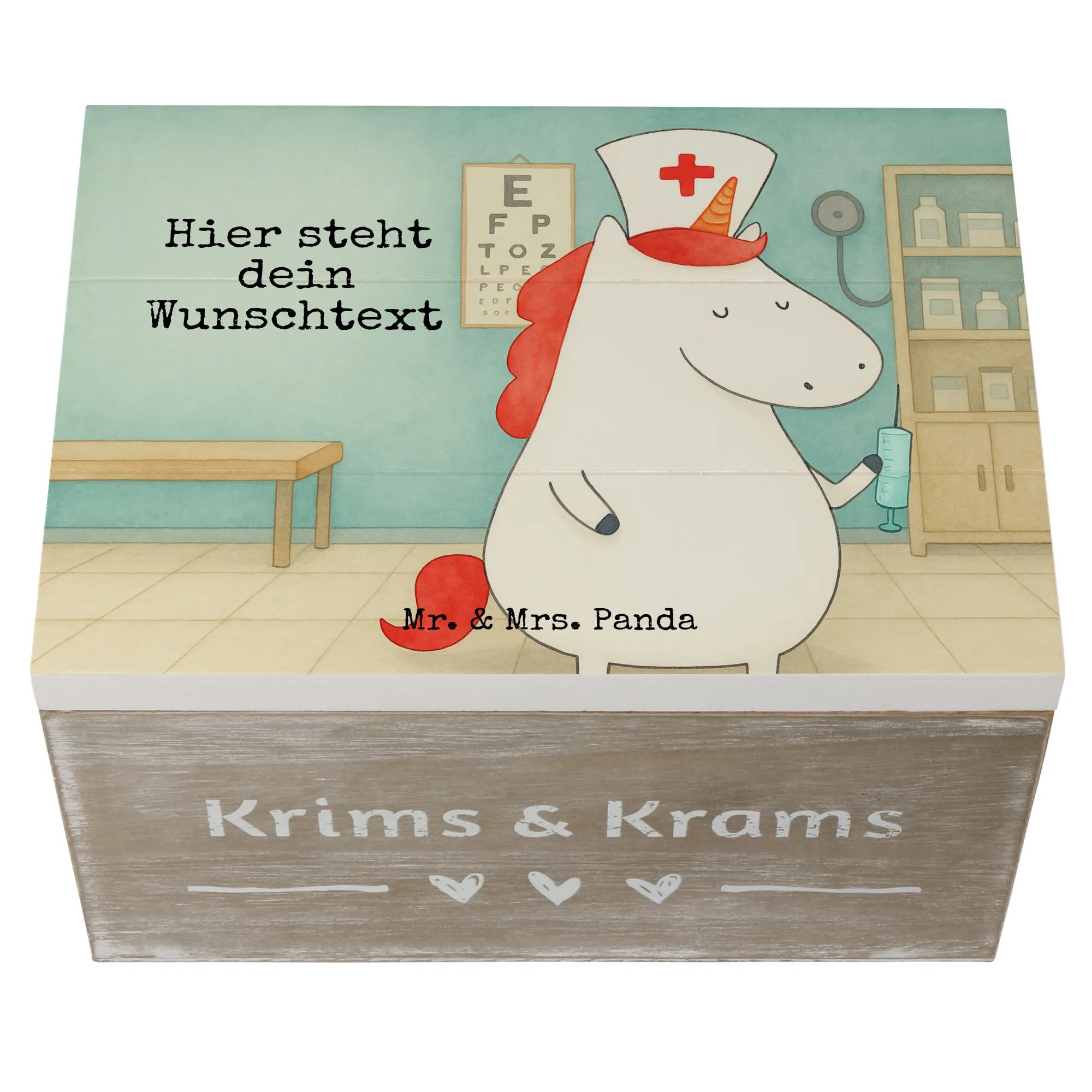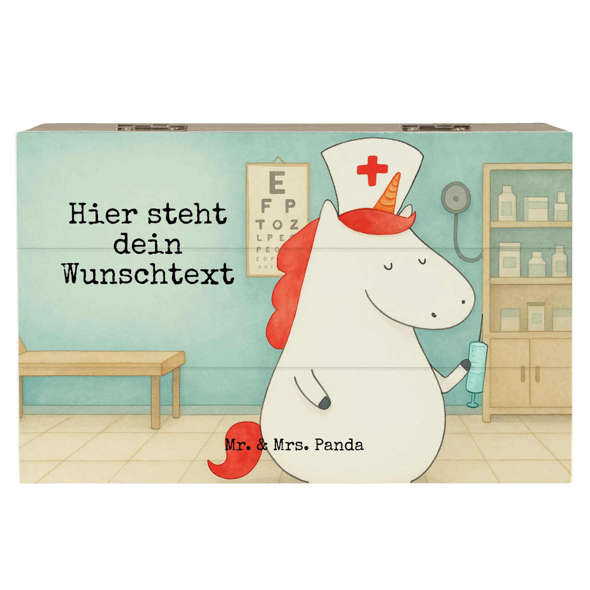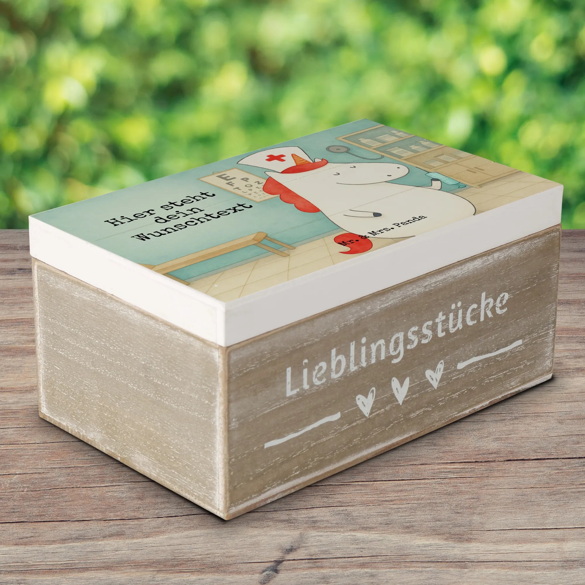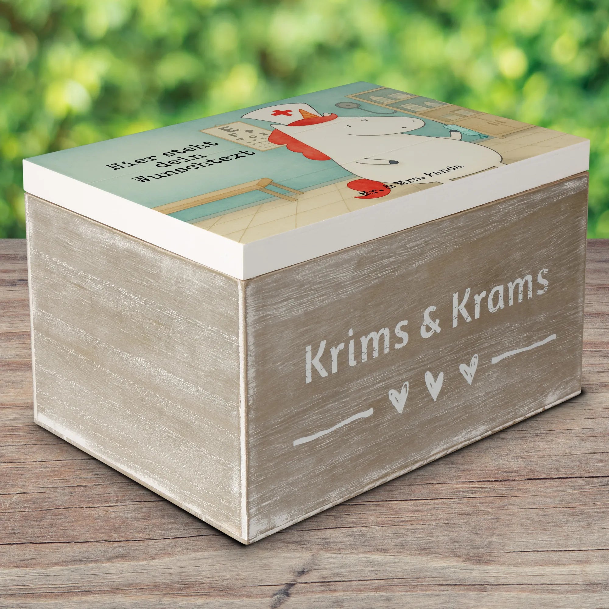 Personalised wooden chest unicorn Nurse Design - 19 x 12 cm