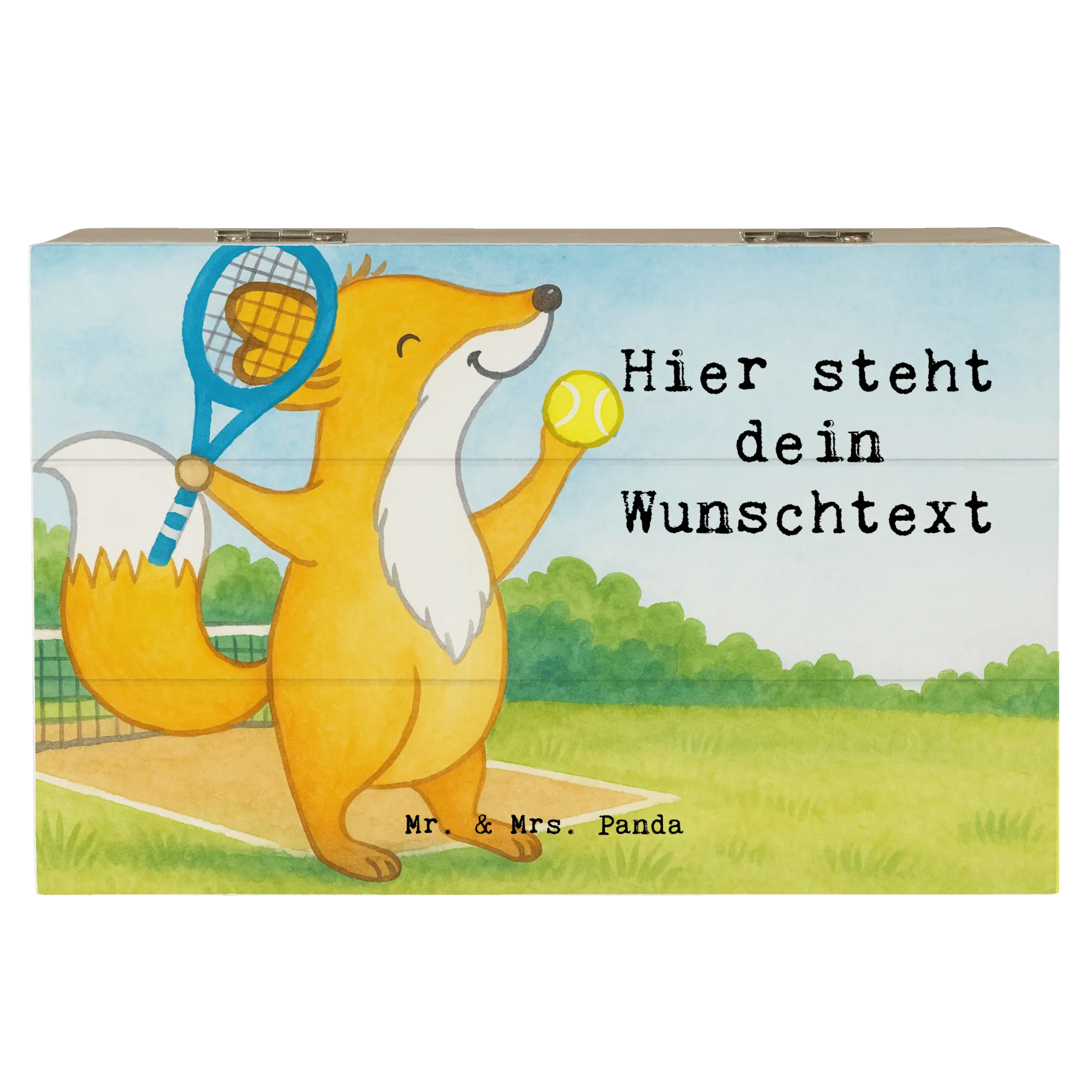 Personalisierte Holzkiste Fuchs Tennis spielen Design - 22 x 15 cm