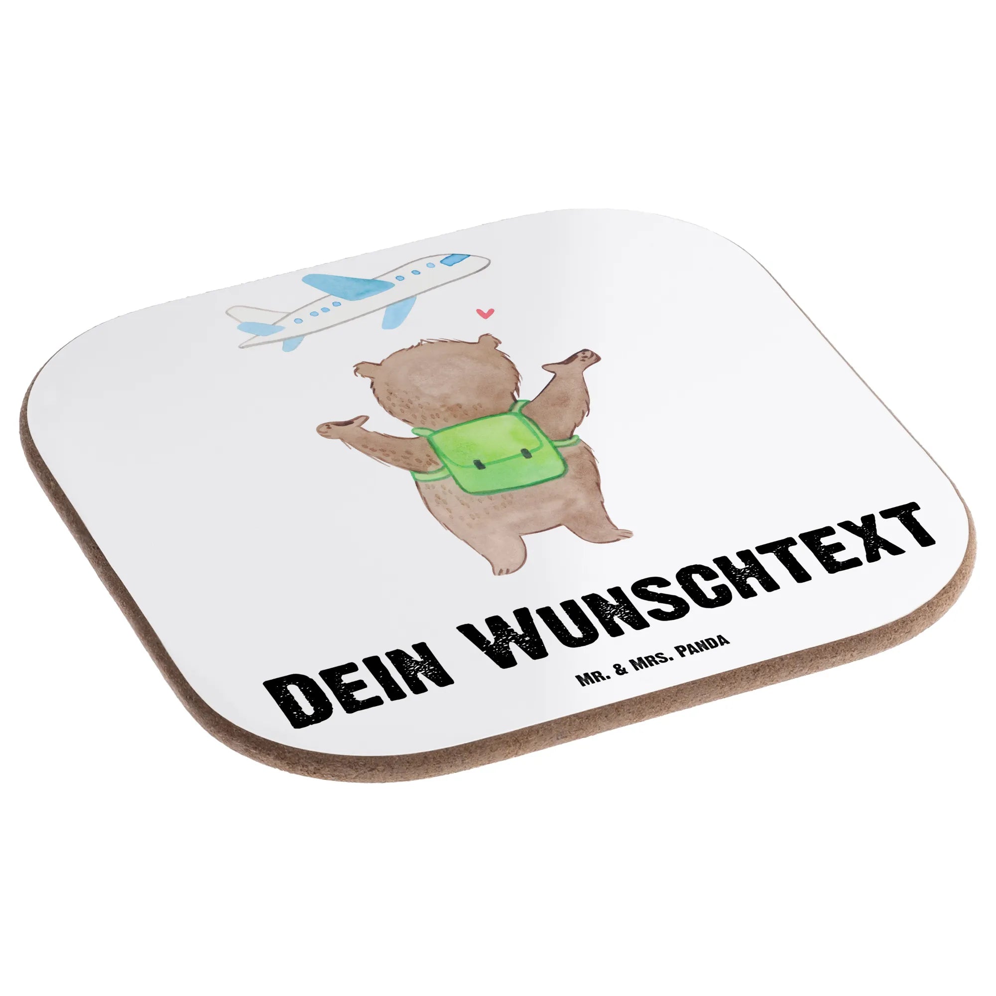 Imagine the delight of a dreamy bear, arms wide open, ready to embrace the vast world of adventure! This charming bear, with his green messenger bag, stands beneath a stylized airplane, his eyes sparkling with joy. Above him, a little red heart floats, perfectly capturing the sweet essence of exploration. The slogan, 'Ich möchte mit dir die Welt bereisen, weil ich mit dir an meiner Seite noch so viel mehr erleben will,' beautifully expresses the feeling of wanting to share every moment with your loved one. This motif serves as a perfect Valentine's Day gift for women, a loving anniversary token, or a heartfelt wedding anniversary party favor. Let this whimsical design inspire your romantic journeys together!