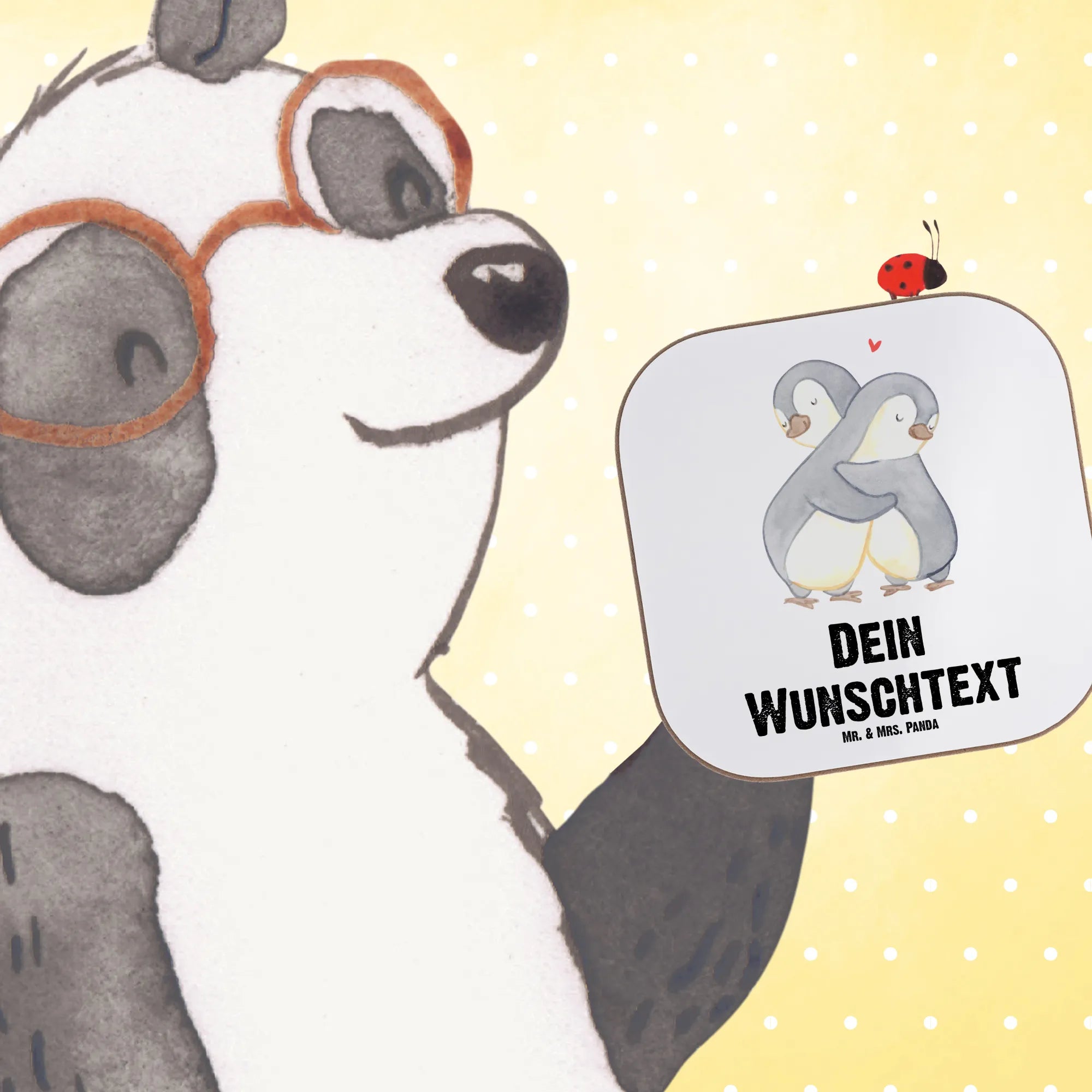 Personalised coaster penguins Cuddle – Mr. & Mrs. Panda