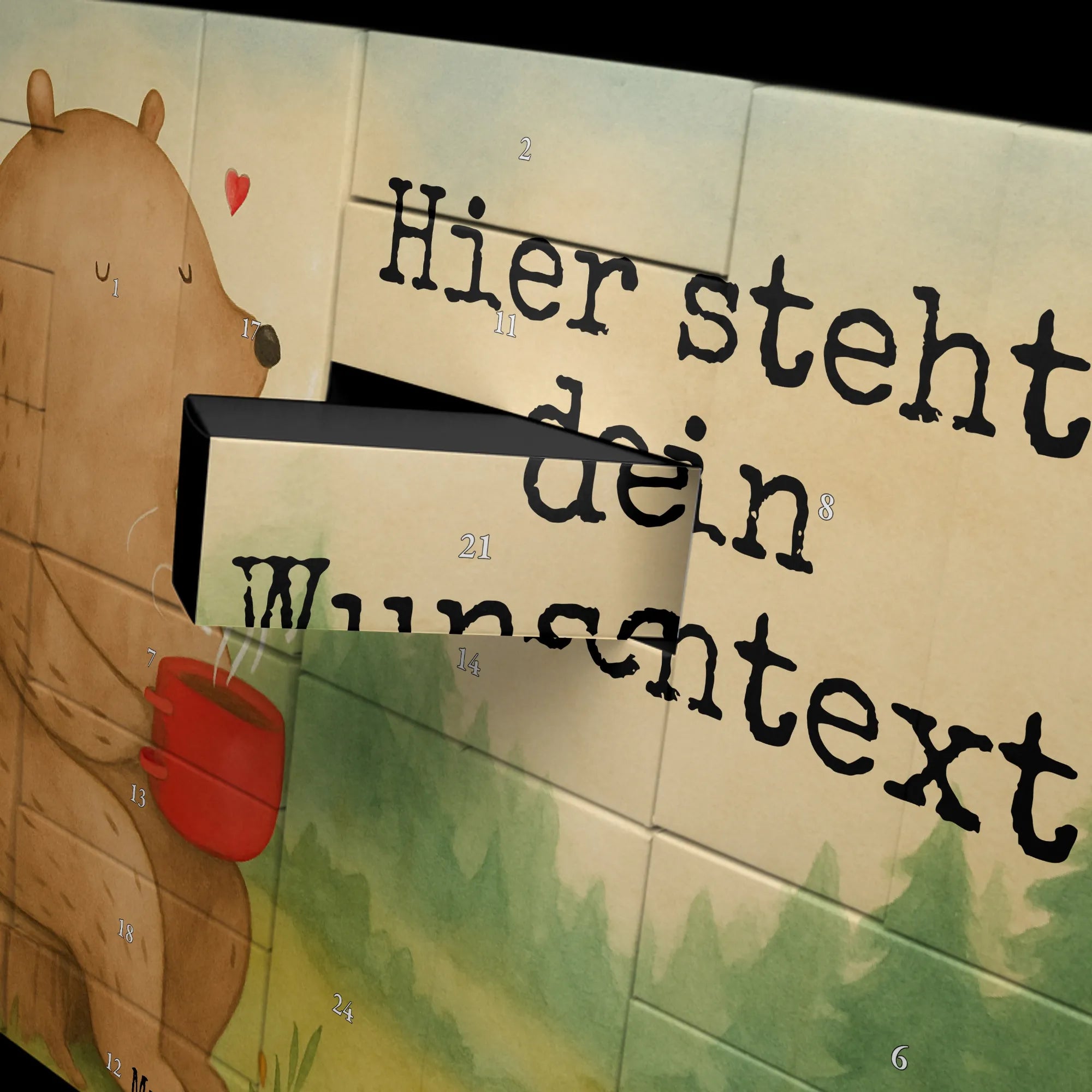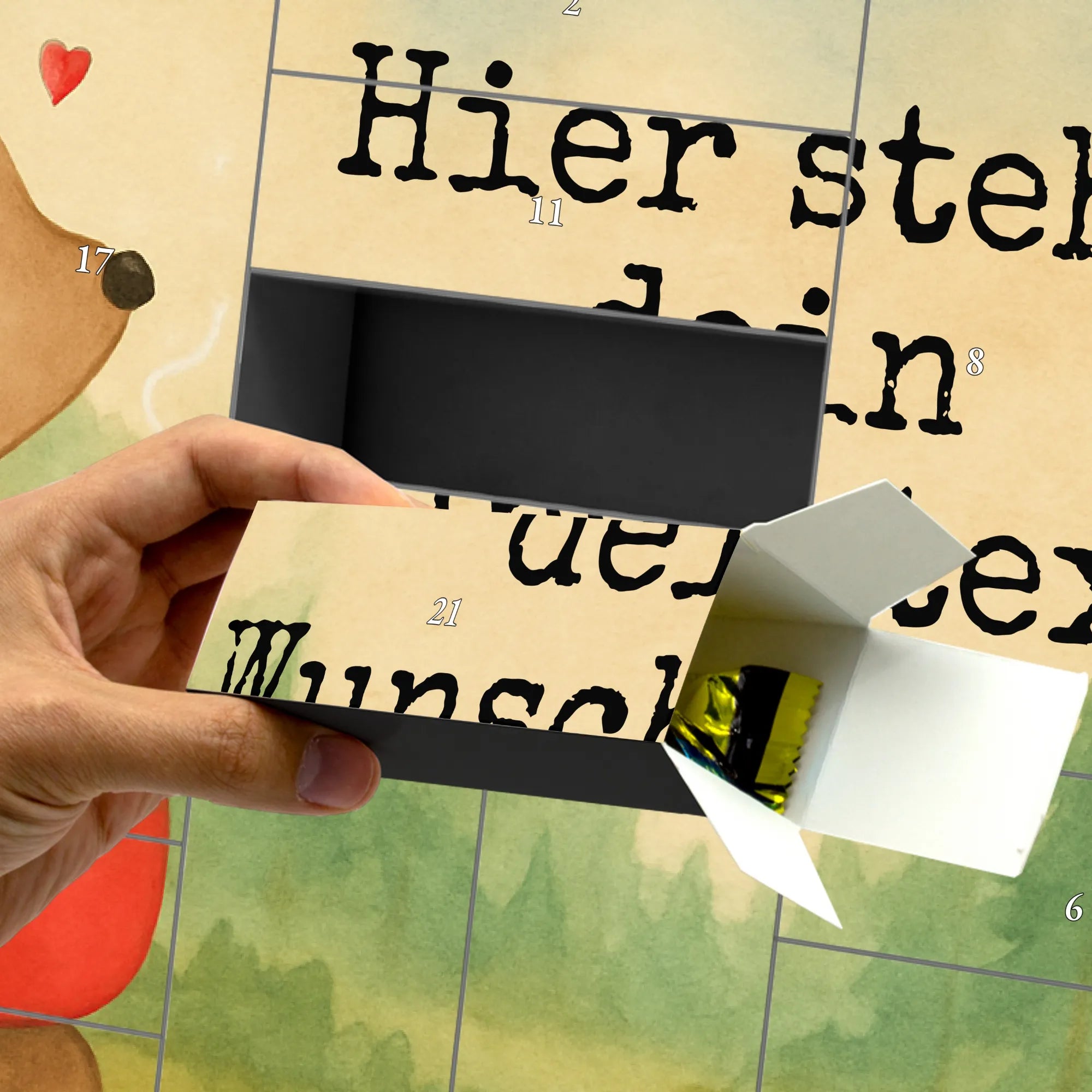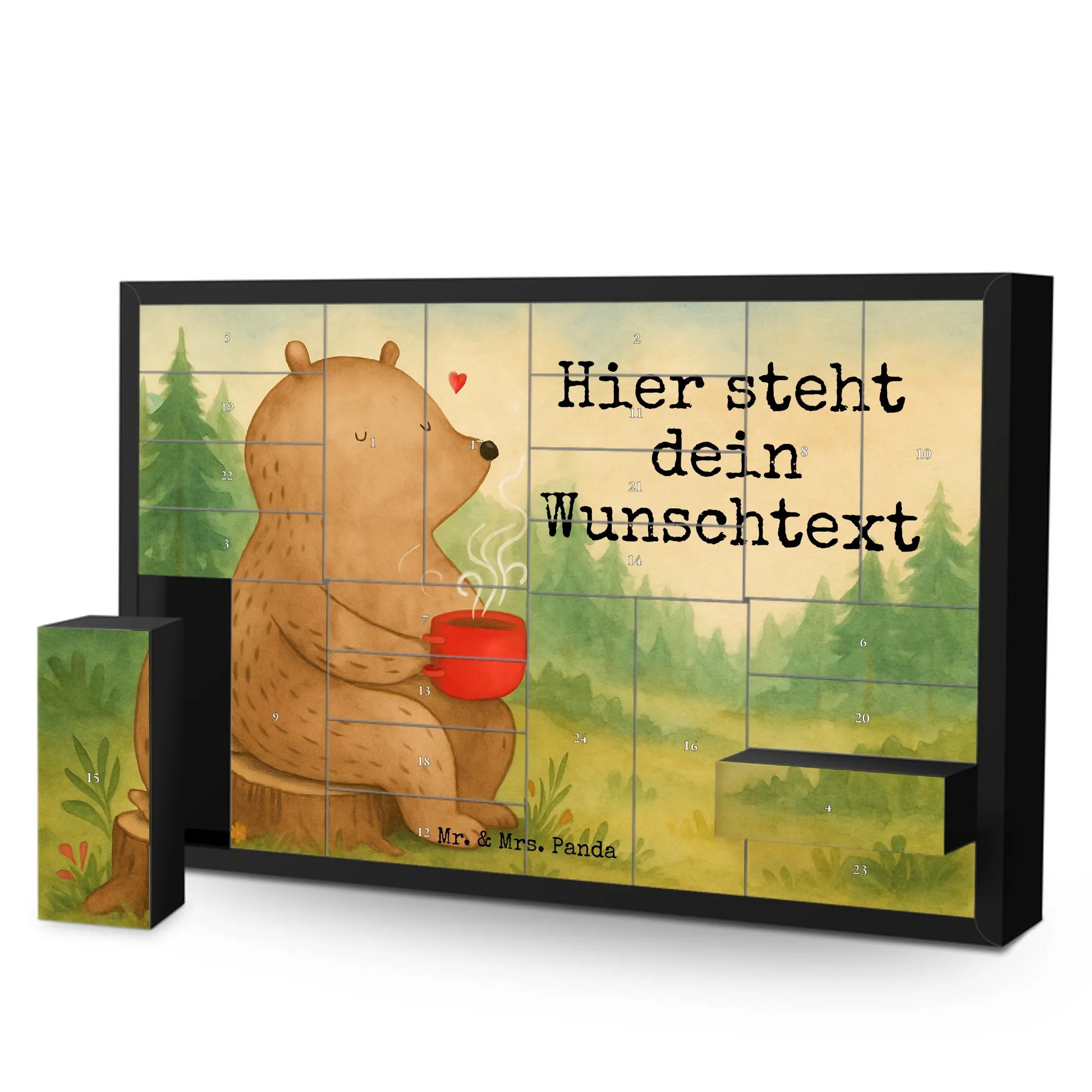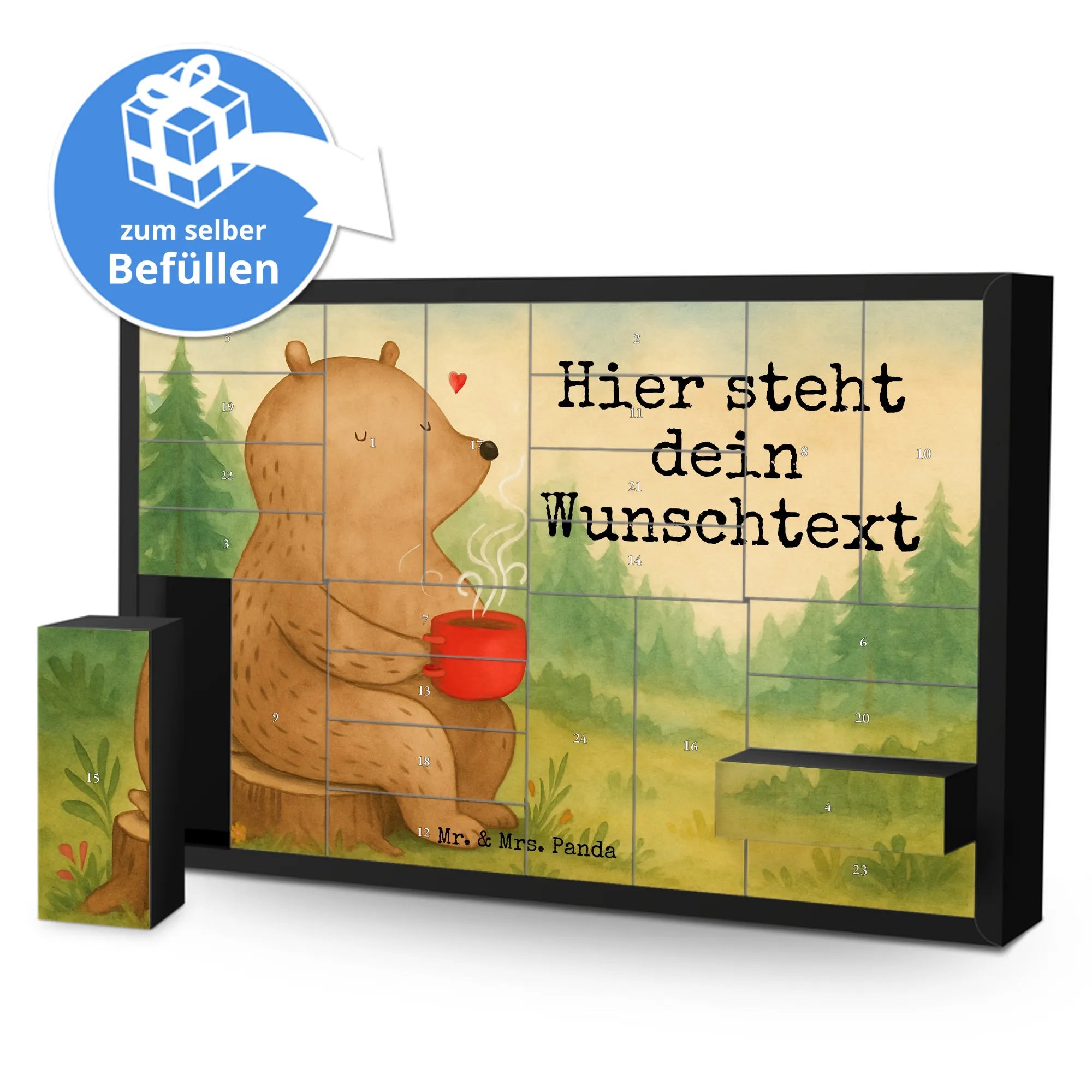 Discover the magic of the Advent season with Mr. & Mrs. Panda's personalized fillable Advent calendar. With the option to fill it with your own favorite surprises, this calendar becomes a heartwarming centerpiece of your holiday preparations. Each of the 24 boxes is ready to be uniquely filled by you, bringing daily joy to your loved ones or yourself. The heartfelt drawings and sayings, combined with the ability to personalize the calendar with a name or message of your choice, make it an incomparable and special gift that makes the Christmas season even more magical.