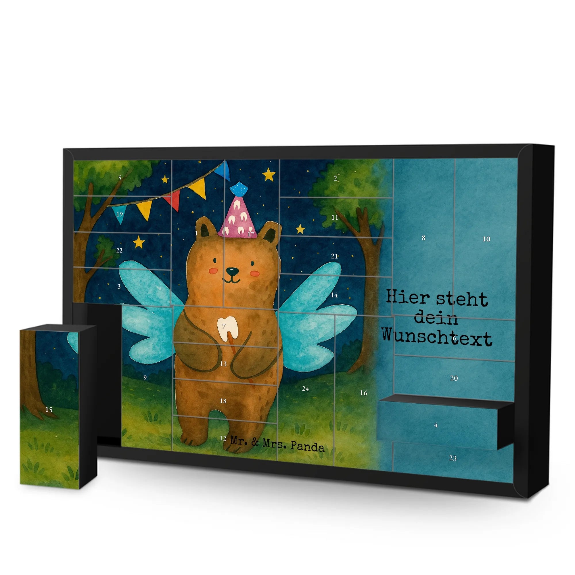 Discover the magic of the Advent season with Mr. & Mrs. Panda's personalized fillable Advent calendar. With the option to fill it with your own favorite surprises, this calendar becomes a heartwarming centerpiece of your holiday preparations. Each of the 24 boxes is ready to be uniquely filled by you, bringing daily joy to your loved ones or yourself. The heartfelt drawings and sayings, combined with the ability to personalize the calendar with a name or message of your choice, make it an incomparable and special gift that makes the Christmas season even more magical.