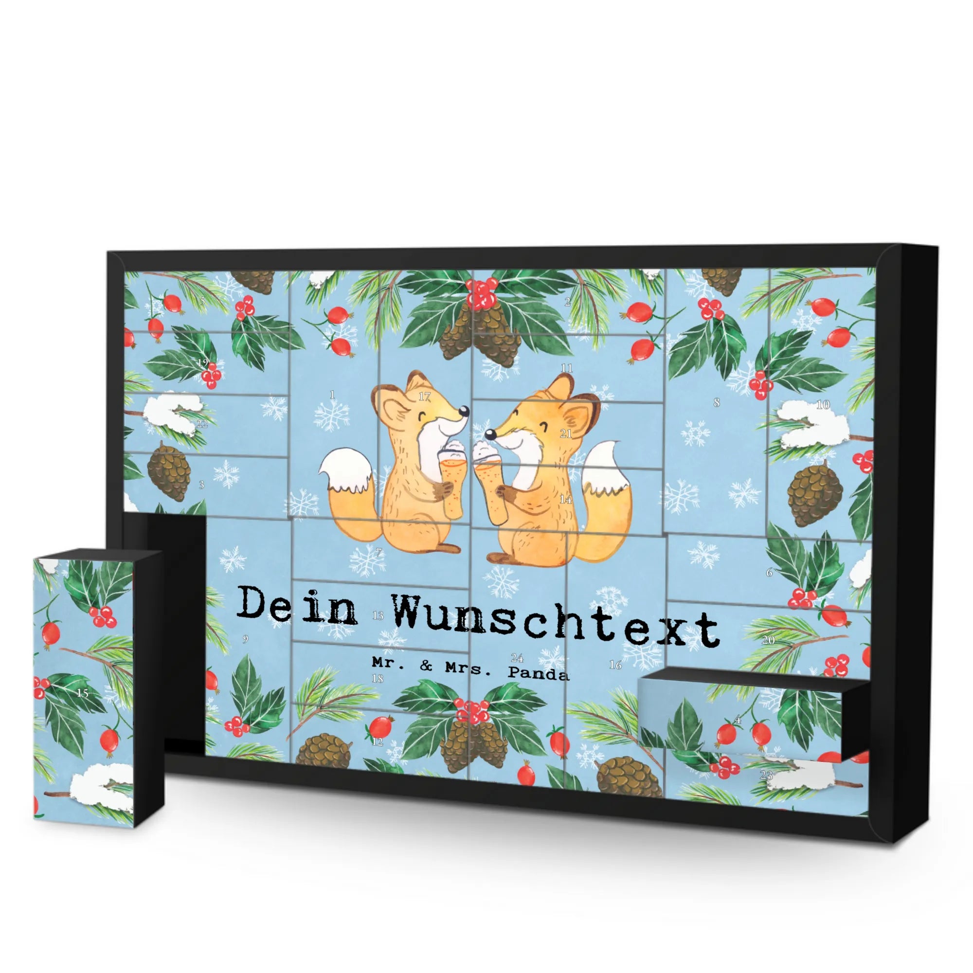 Discover the magic of the Advent season with Mr. & Mrs. Panda's personalized fillable Advent calendar. With the option to fill it with your own favorite surprises, this calendar becomes a heartwarming centerpiece of your holiday preparations. Each of the 24 boxes is ready to be uniquely filled by you, bringing daily joy to your loved ones or yourself. The heartfelt drawings and sayings, combined with the ability to personalize the calendar with a name or message of your choice, make it an incomparable and special gift that makes the Christmas season even more magical.