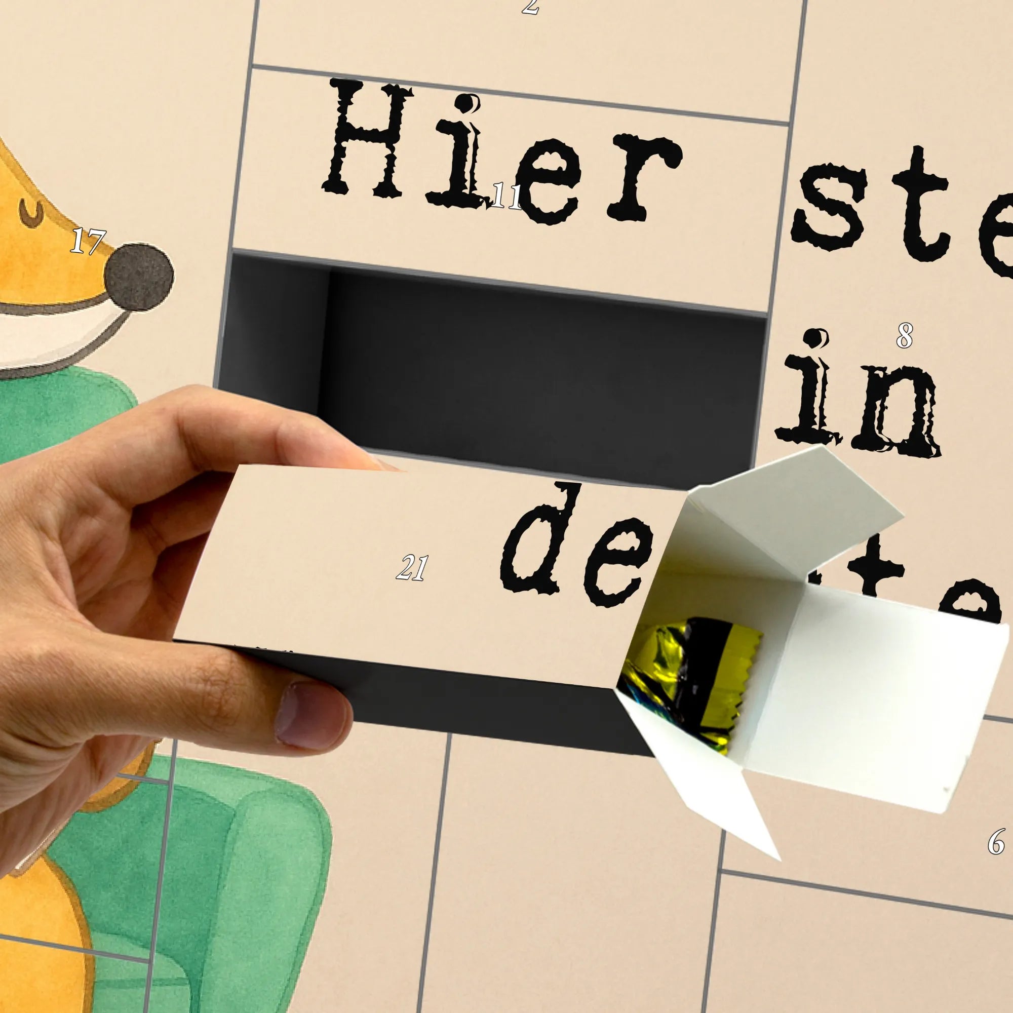 Personalisierter Adventskalender zum Befüllen – die süße Idee von Mr. & Mrs. Panda für deine individuelle Adventszeit! Der Kalender ist liebevoll gestaltet, mit vielen warmen Sprüchen und der charmanten Zeichnung von Mrs. Panda auf der Vorderseite. Du kannst deinen Namen oder einen Wunschtext hinzufügen, damit der Kalender ganz persönlich wird. Er besteht aus stabilem Adventskalender Karton, hat eine seidenmatte Oberfläche und besticht durch brillante Druckqualität. Mit 24 Schachteln zum Selbstbefüllen kannst du jeden Tag im Dezember mit einer kleinen Überraschung füllen. Zusätzlich ist eine praktische Aufstellvorrichtung integriert, damit der Kalender überall schön zur Geltung kommt. Besonderer Hinweis: wird ohne Füllung geliefert. Maße: Breite: 619 mm, Höhe: 405 mm, Tiefe: 50 mm. Ideal als Geschenk oder als liebevolle Dekoration für dein Zuhause – voller Herzlichkeit und Panda-Charme.