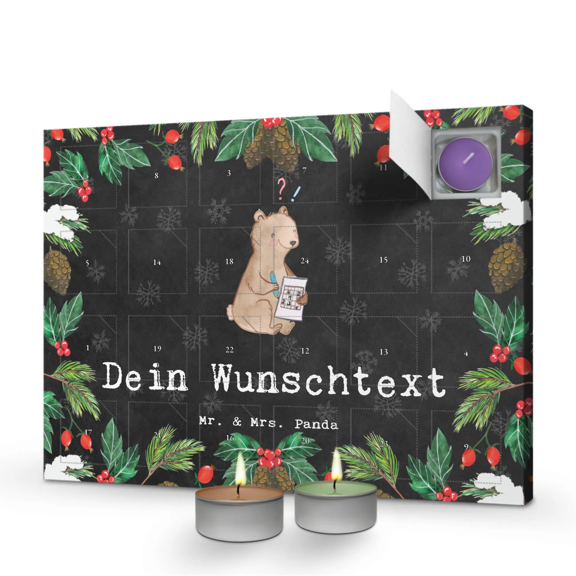 Der personalisierte Duftkerzen Adventskalender mit dem süßen Bär-Motiv "Rätsel lösen ist meine Medizin" von Mr. & Mrs. Panda ist das perfekte Geschenk für alle Rätselliebhaber! 💖 Mit liebevoll handgezeichneten Motiven von Mrs. Panda bietet dieser Adventskalender jeden Tag einen neuen, weihnachtlichen Duft, der deine Sinne verwöhnt. Die sechs verschiedenen Düfte wie Vanille, Lavendel, Grüner Tee, Apfel-Zimt, Granatapfel und Oud Wood sorgen für ein unvergessliches Dufterlebnis in der Adventszeit.