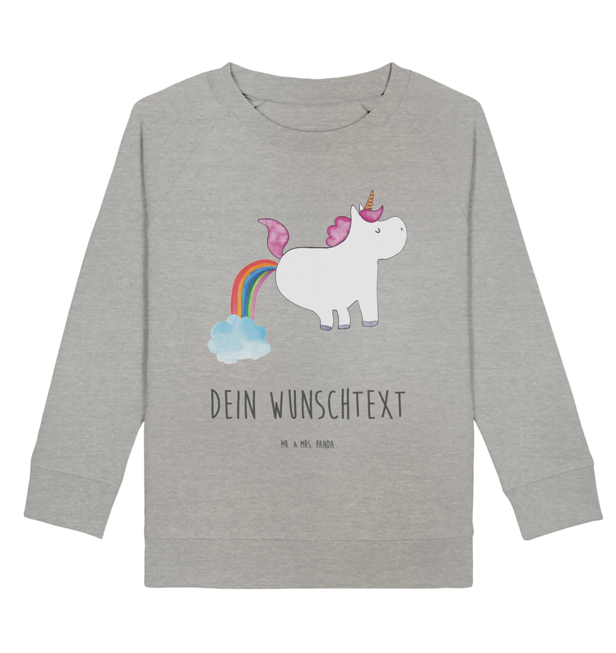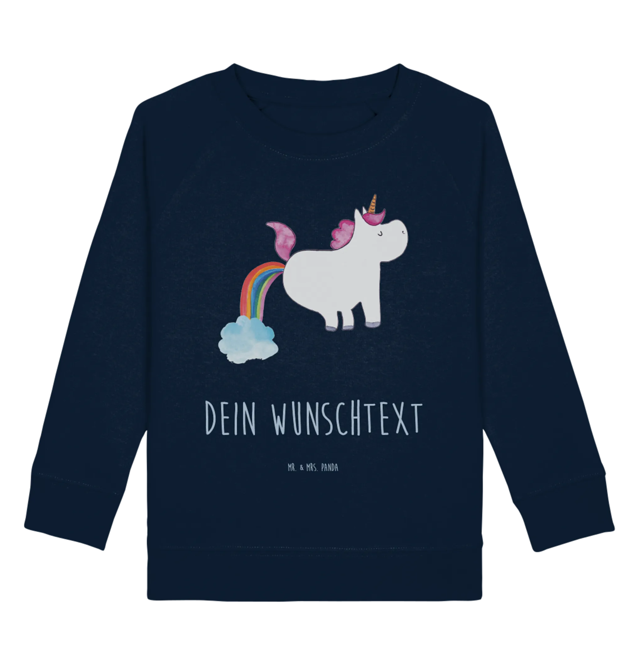 Willkommen in der zauberhaften Welt von Mr. & Mrs. Panda! Wenn Du auf der Suche nach einem ganz besonderen Geschenk bist, dann ist unser personalisierter Kinder Pullover mit dem süßen Motiv 'Einhorn Pupsend' genau das Richtige!