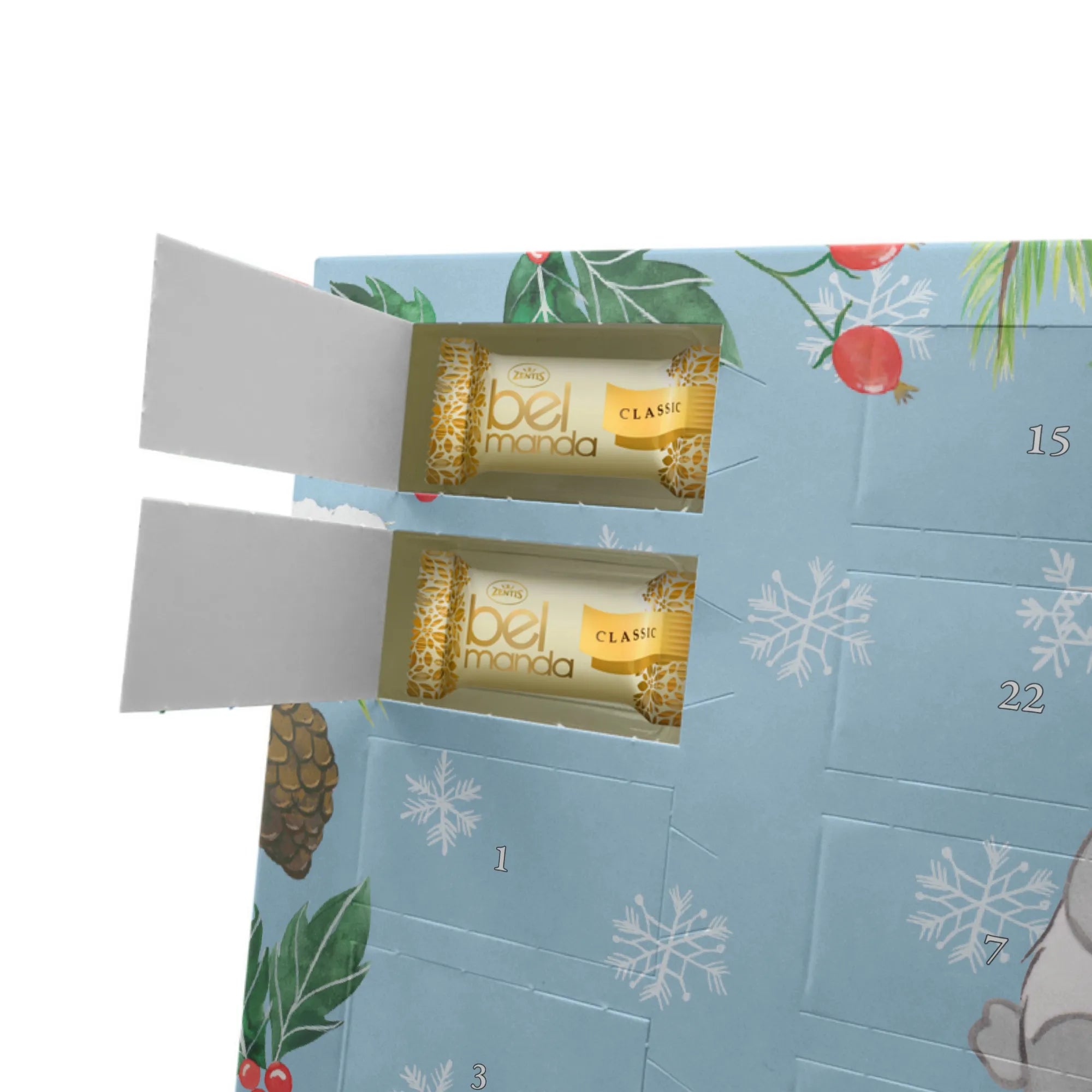 Lass die Vorfreude auf Weihnachten in jedem Türchen aufblühen und genieße die kostbaren Momente, die dieser Kalender bietet. Jeder Biss wird zum puren Genuss, während die Vorfreude auf die besinnlichste Zeit des Jahres steigt.