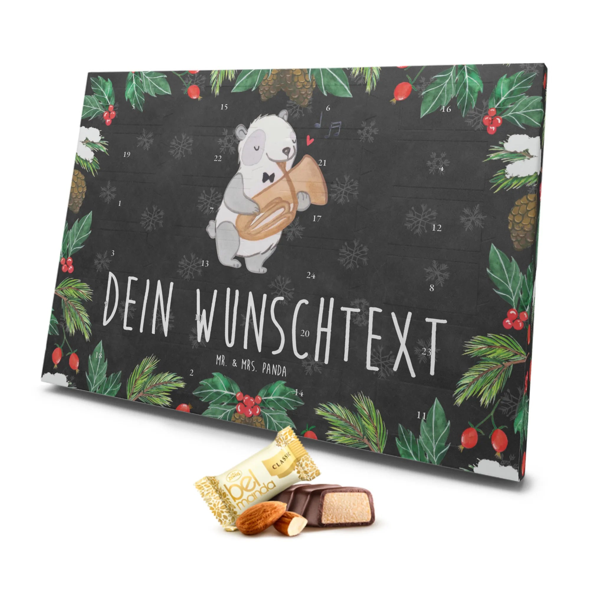 Personalisierter Marzipan Adventskalender Panda Tenorhorn – Mr. & Mrs. Panda