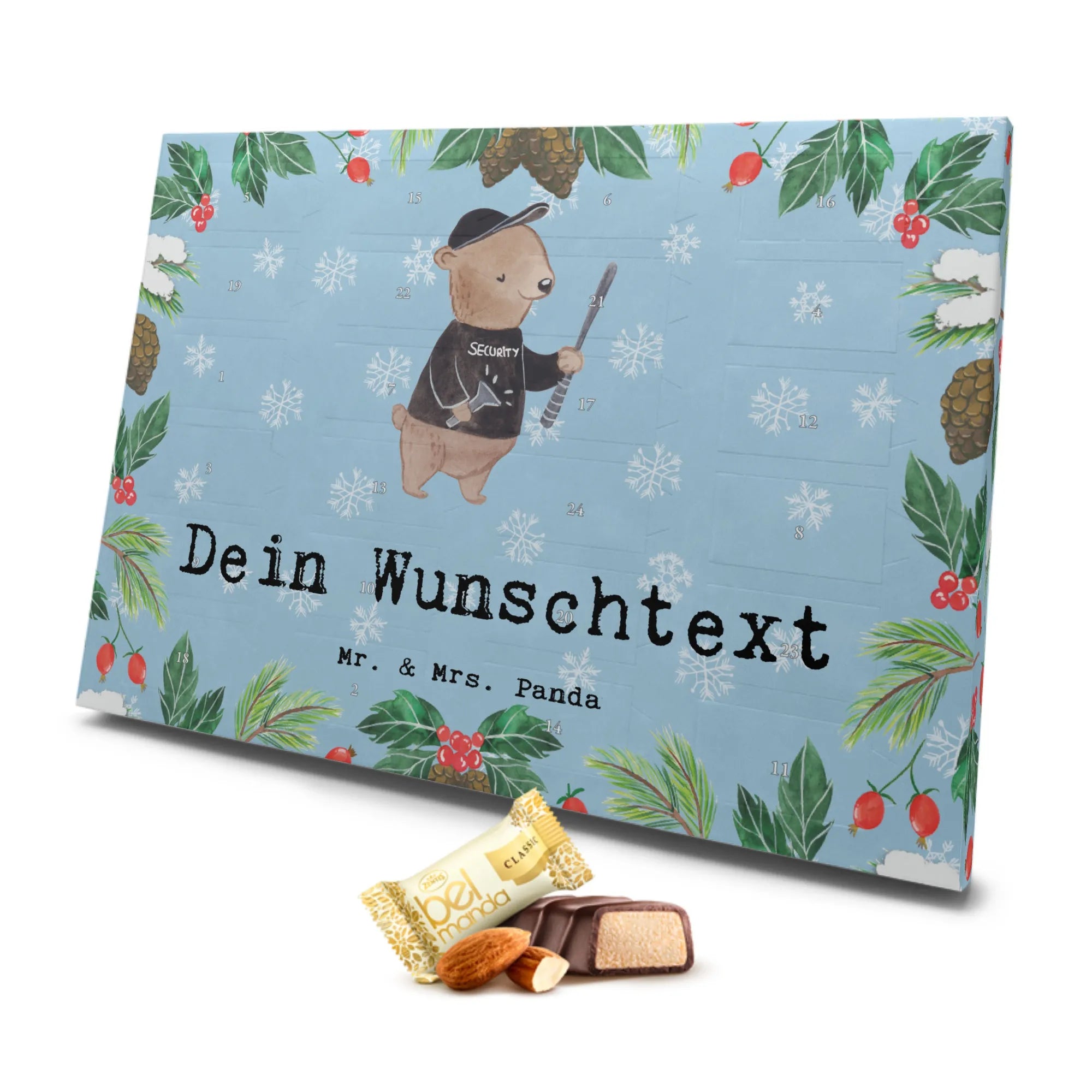 Personalisierter Marzipan Adventskalender Sicherheitsdienstmitarbeiter – Mr. & Mrs. Panda