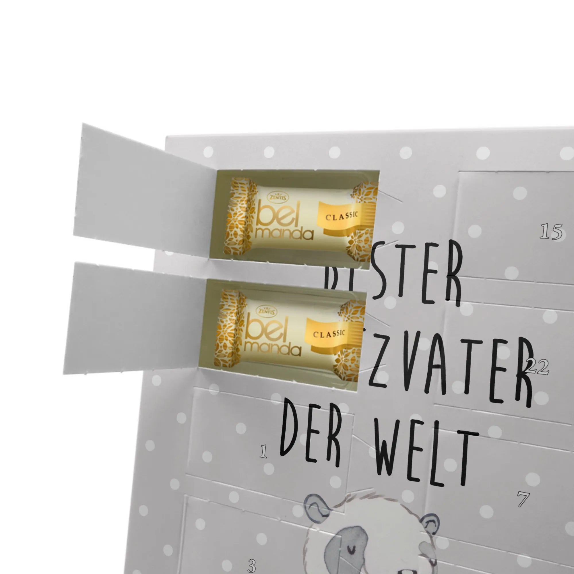 Entdecke den personalisierten Marzipan Foto Adventskalender "Bester Ersatzvater der Welt" von Mr. & Mrs. Panda - das perfekte Geschenk für alle Ersatzväter und liebevollen Papas!