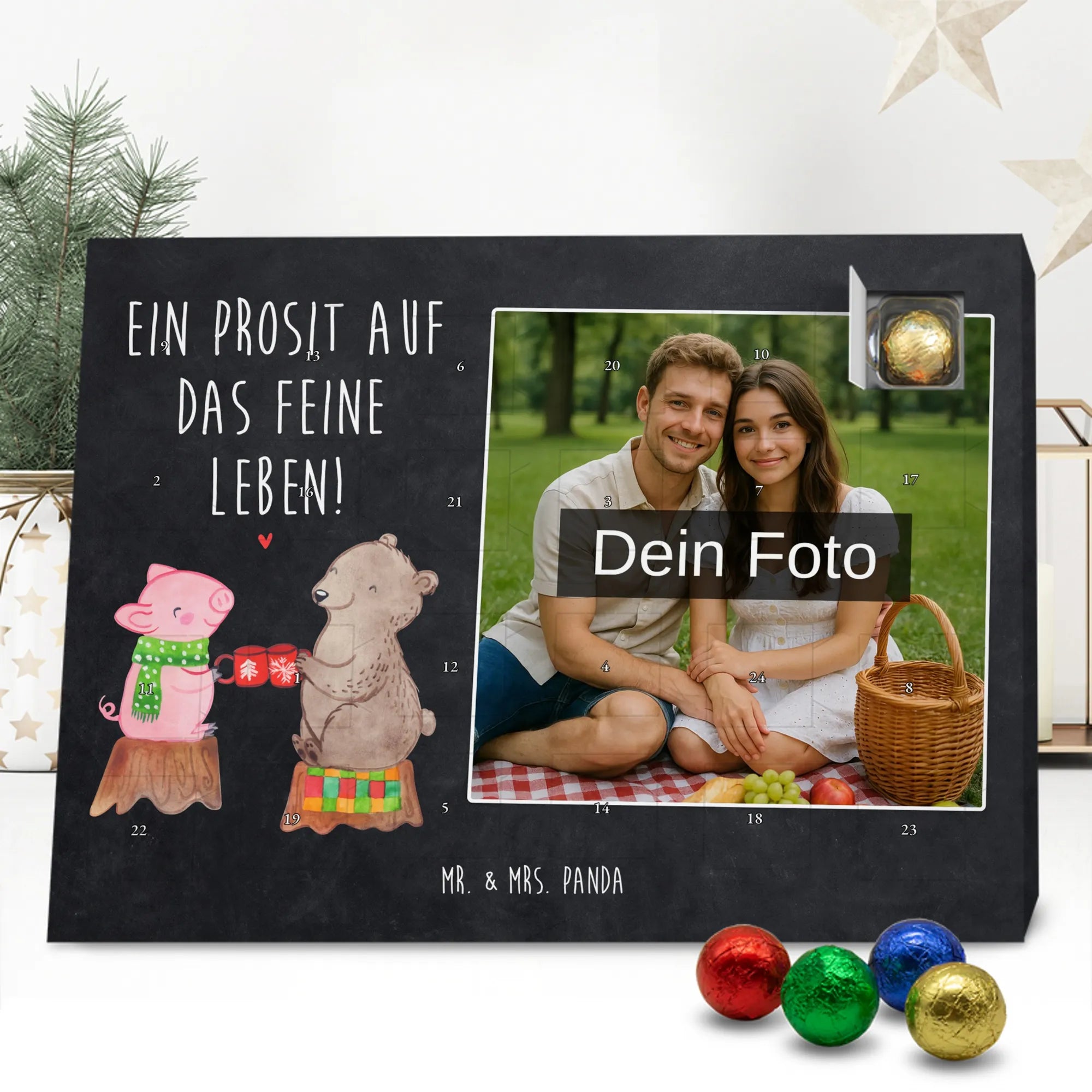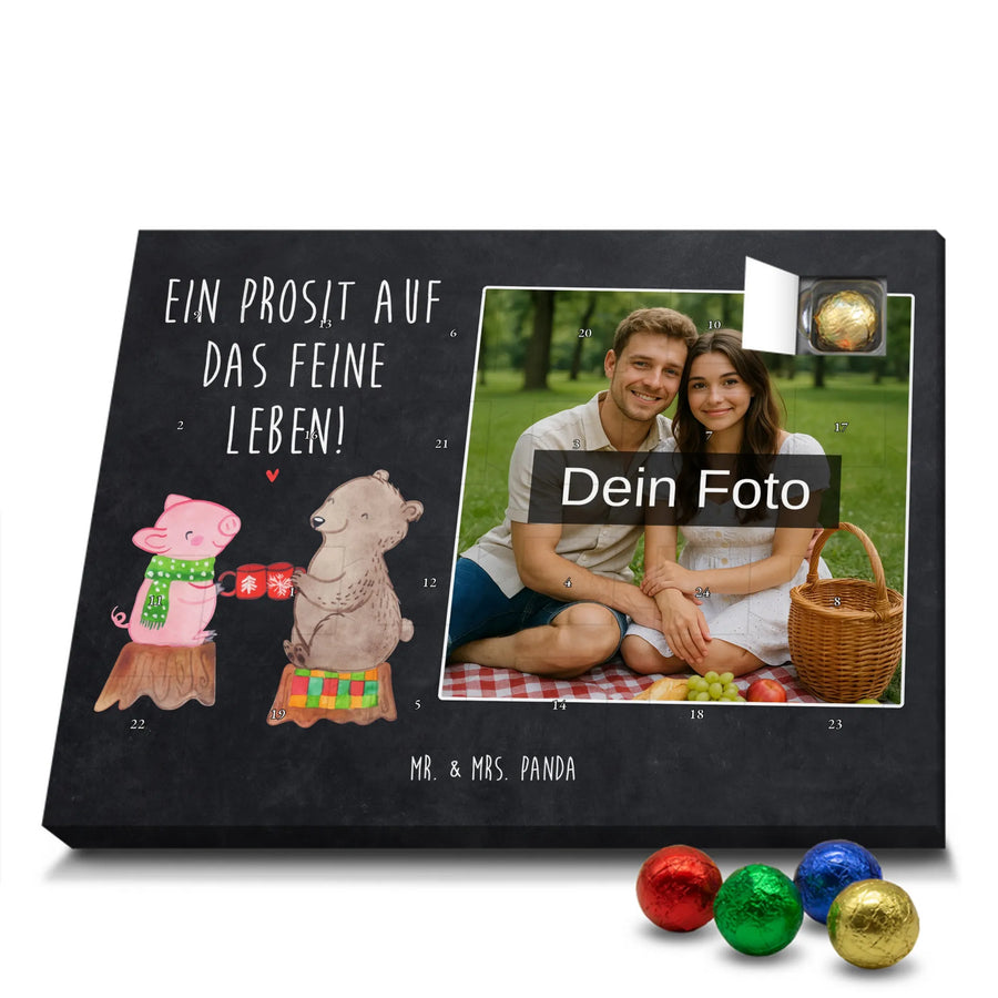 🐼 PERSONALISIERTER KALENDER: Dein Foto-Adventskalender mit 24 Schokoladentäfelchen und Mr. & Mrs. Panda Motiven.