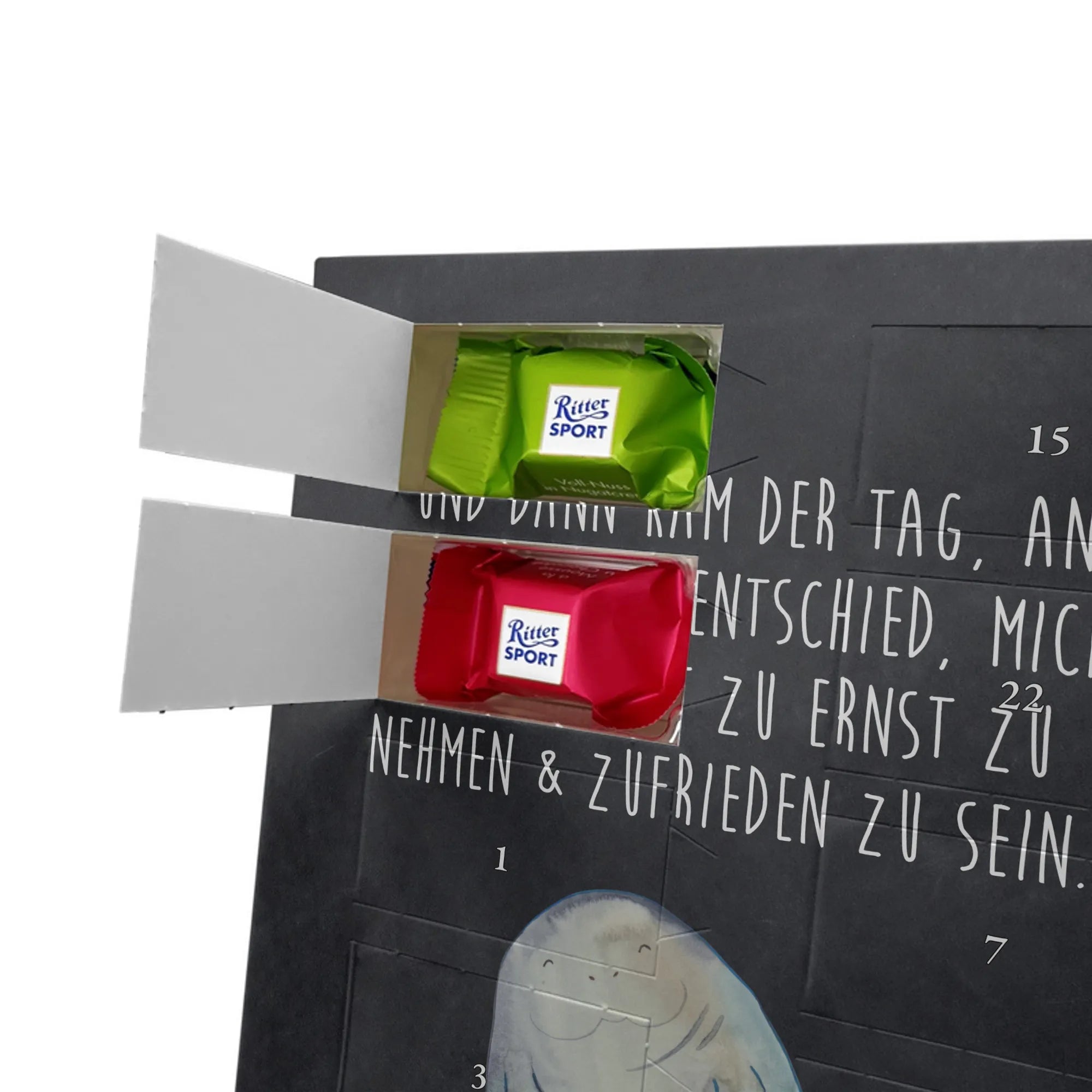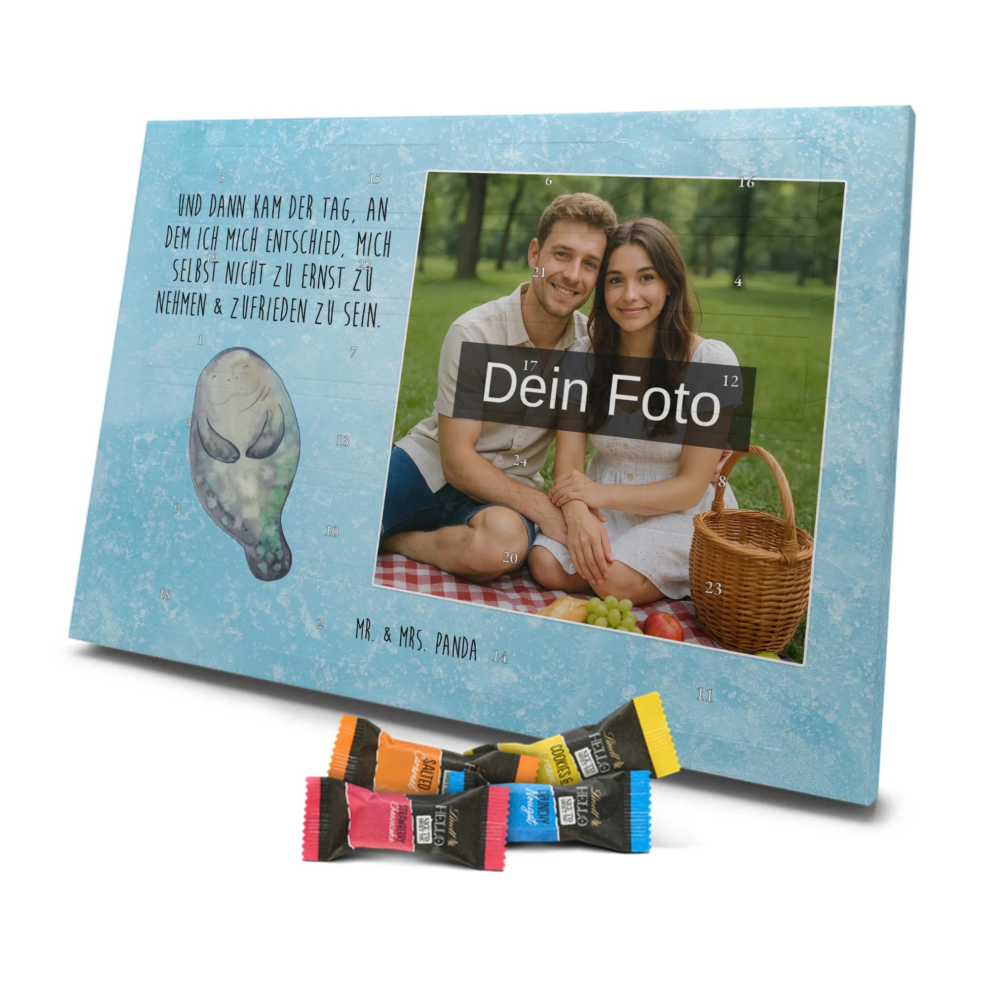 Personalisierter Schoko-Adventskalender mit Foto – das kleine Weihnachtswunder von Mr. & Mrs. Panda! Verschenke jeden Tag Vorfreude: Der Kalender ist liebevoll gestaltet mit unseren herzlichen Illustrationen und Sprüchen, während dein Foto die persönliche Mitte bildet. Bitte lade ein hochauflösendes Foto hoch und prüfe den Bildausschnitt, damit nichts Wichtiges verloren geht. Nutze nur Bilder, für die du die Rechte hast. Die hochwertige, seidenmatte Veredelung und die bedruckten Seitenflächen garantieren ein edles Erscheinungsbild. Maße: 355 mm x 245 mm x 11 mm; lässt sich sowohl aufhängen als auch aufstellen. Achtung: Fotos werden nicht nachbearbeitet oder zugeschnitten; personalisierte Artikel sind vom Rückgaberecht ausgeschlossen. Gefüllt mit 24 einzeln verpackten Schokoladentäfelchen aus den vier Geschmacksrichtungen Vollmilch, Nougat, Zartbitter und Haselnuss – von Sarotti® und Confiserie Heidel®. Insgesamt enthält der Kalender 107 g Markenschokolade. Ein persönliches Geschenk mit süßem Inhalt, ideal für Partner, Familie und Freunde, verpackt mit der typischen Mr. & Mrs. Panda Liebe zum Detail.