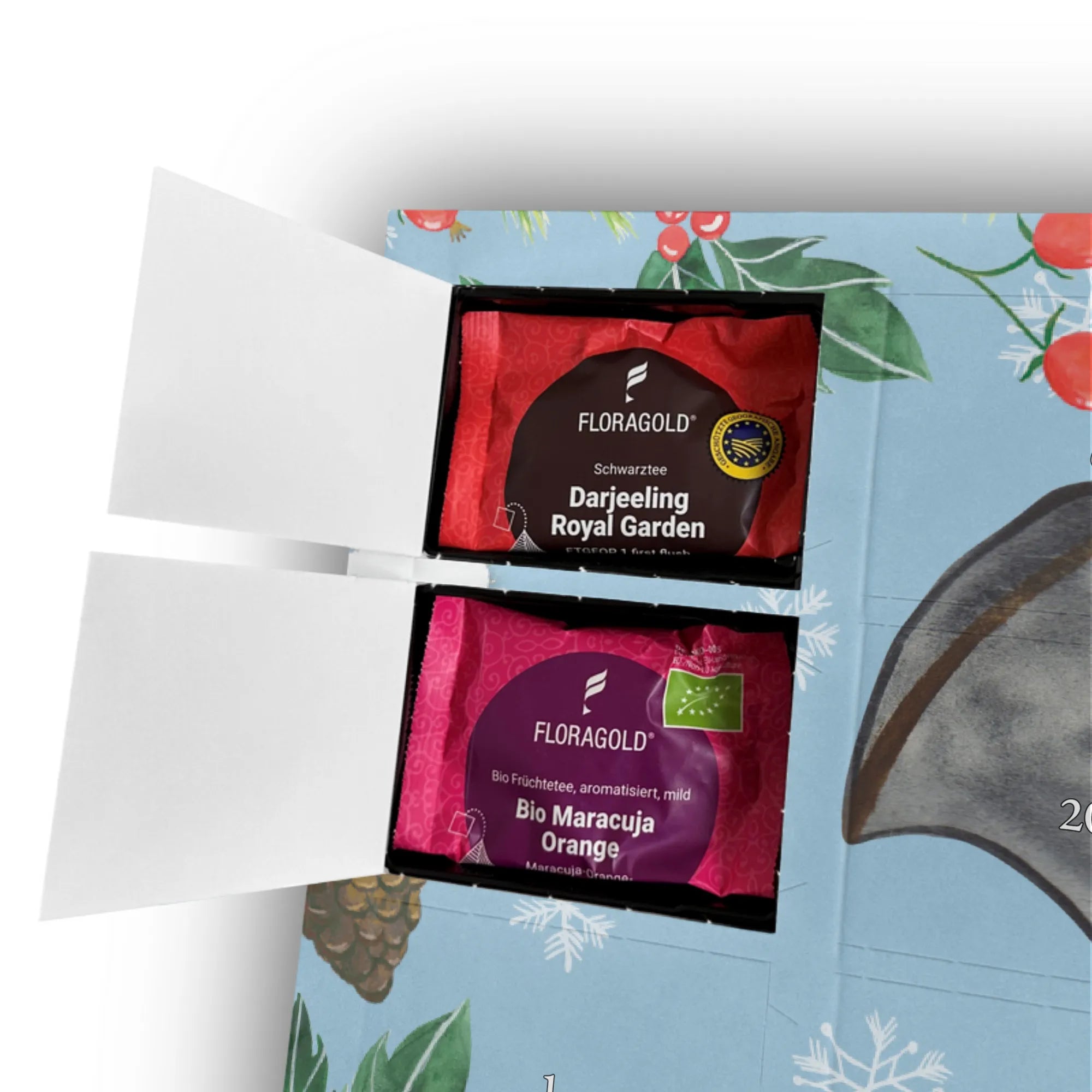 Discover the world of flavors with our Personalized Tea Advent Calendar from Mr. & Mrs. Panda. Printed with unique designs and heartfelt sayings, this calendar offers the opportunity to customize it with your own desired text or name. Brilliantly printed with a silk-matte finish, this Advent calendar becomes the highlight of your pre-Christmas decorations. Featuring 24 individually wrapped premium teas in pyramid sachets – including fruit tea, black tea, and herbal tea – this calendar invites you on a new taste journey each day.